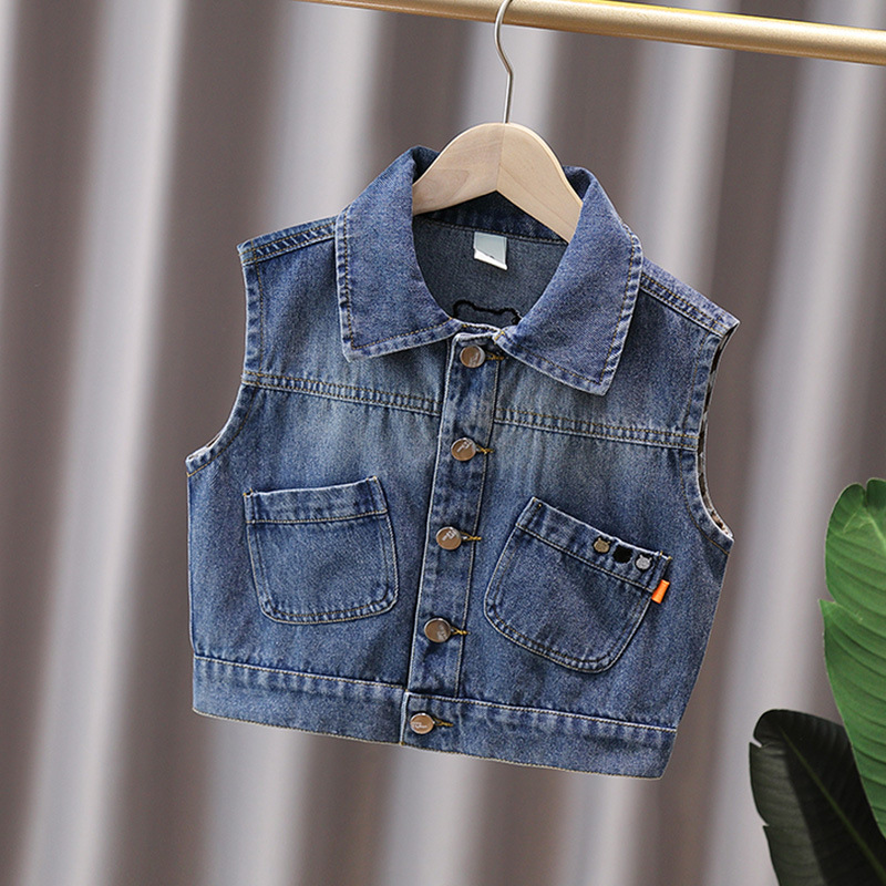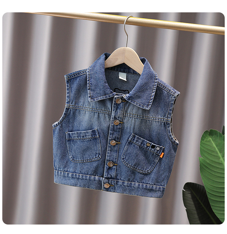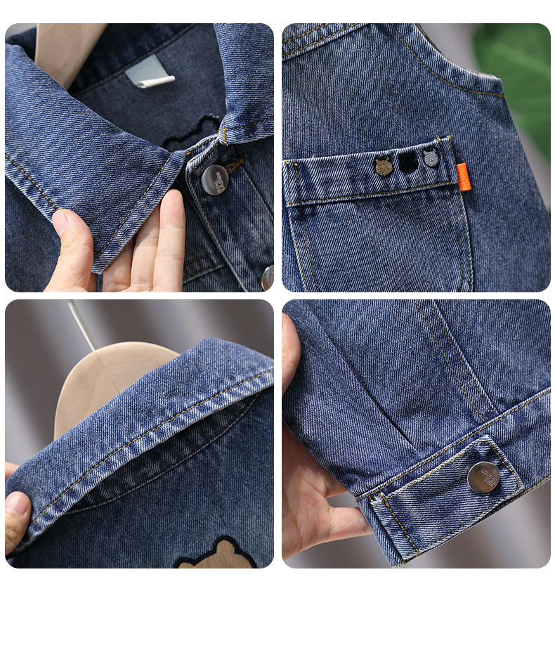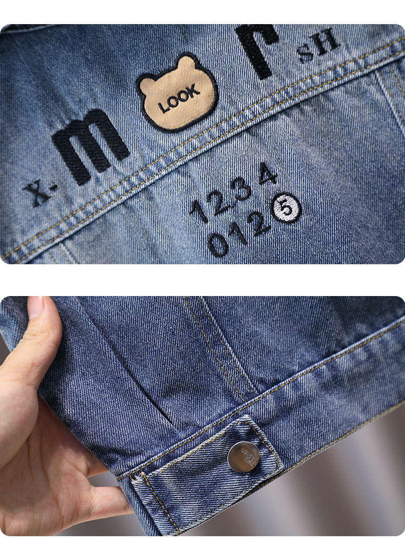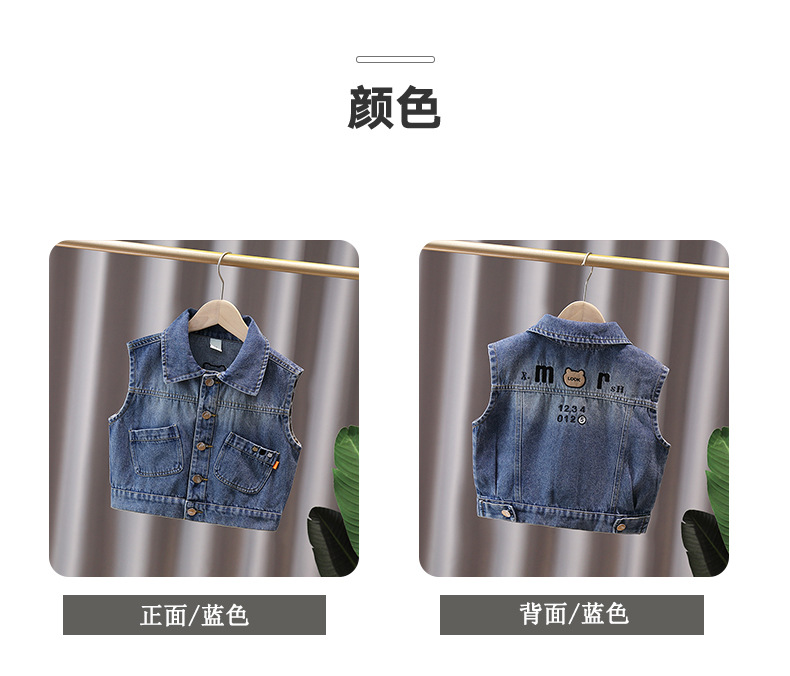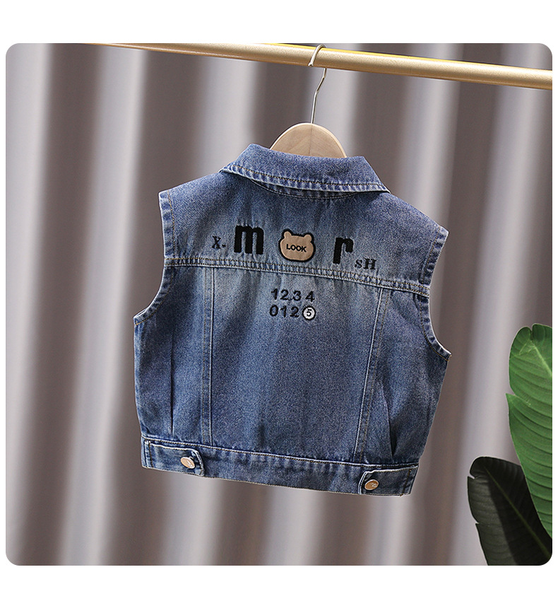 소년 데님 조끼 가을 자수 유행 거리 소년 조끼 2025 봄, 가을 새로운 아동 조끼 겉옷스토어 가기