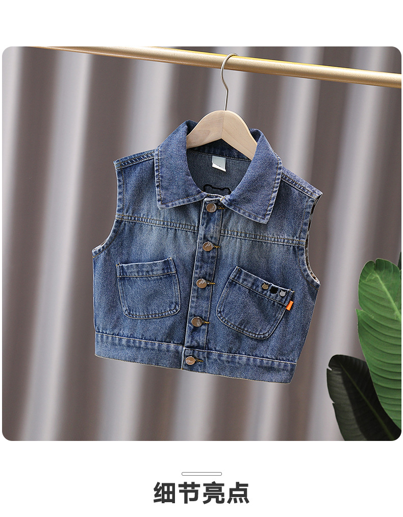 소년 데님 조끼 가을 자수 유행 거리 소년 조끼 2025 봄, 가을 새로운 아동 조끼 겉옷