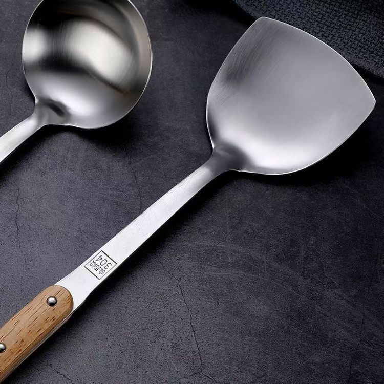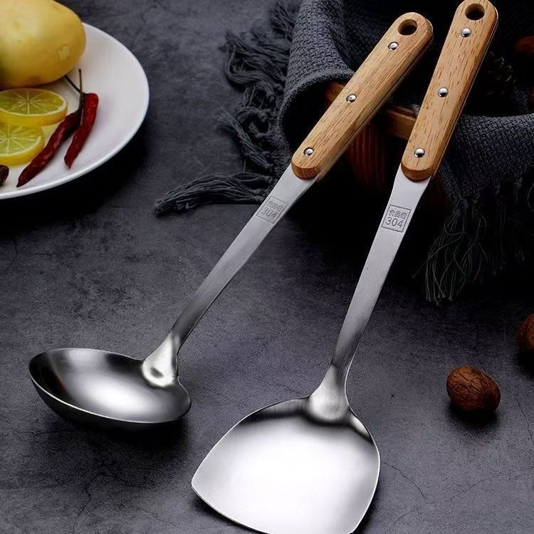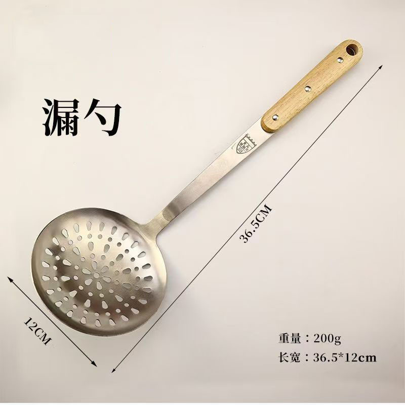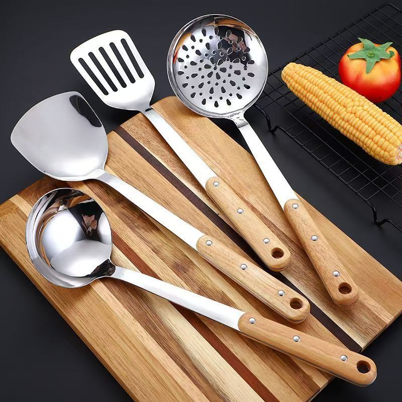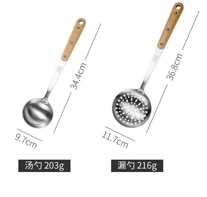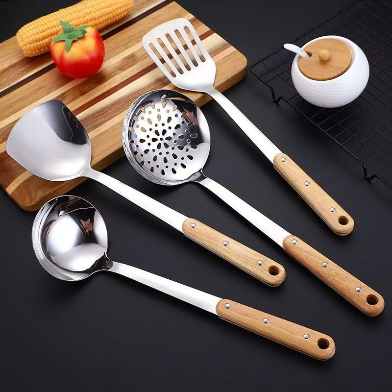 304 스테인레스 스틸 솔리드 우드 볶음 삽 주방 수프 껍질 누출 주방용품 세트 가정용 안티-scald Spoon
