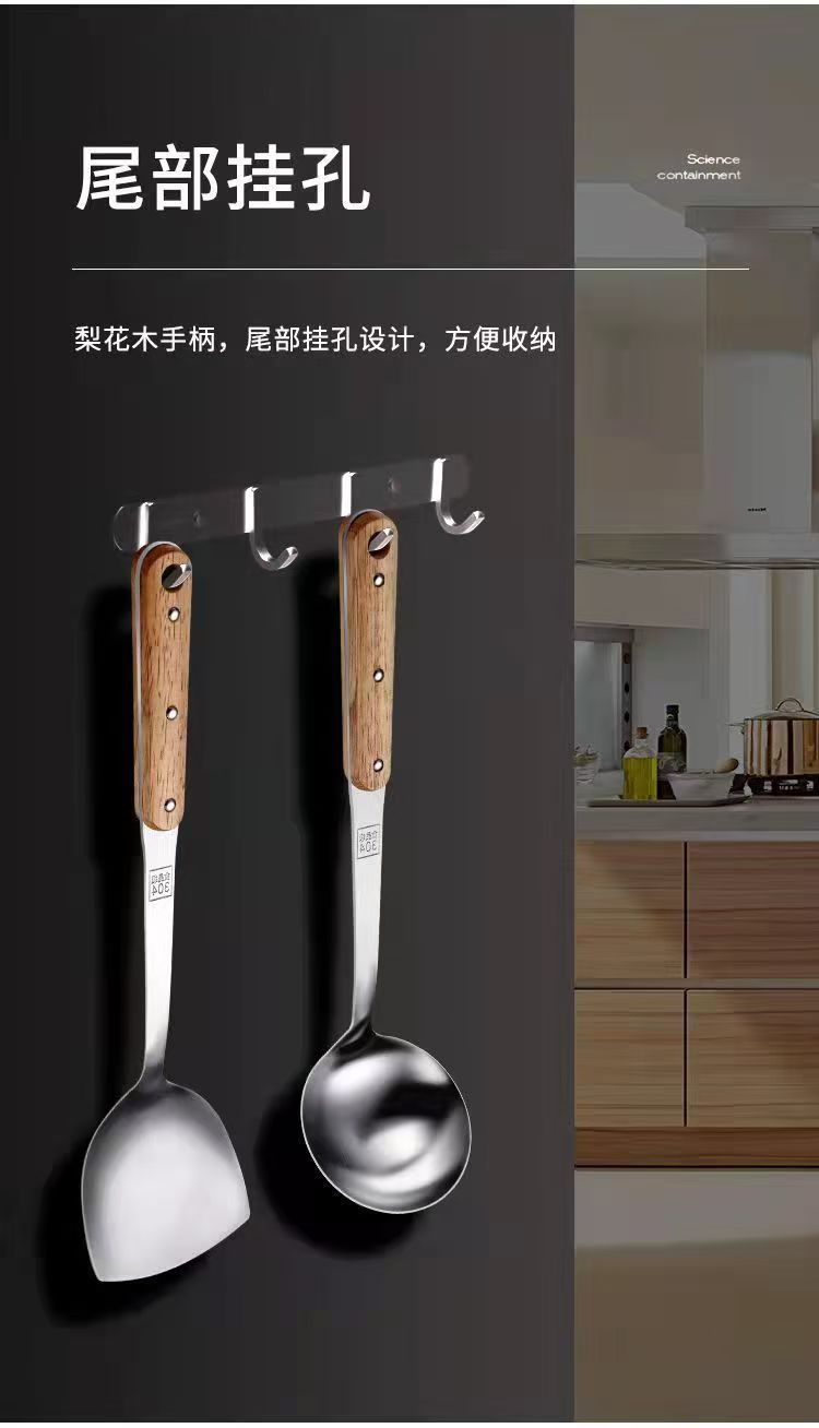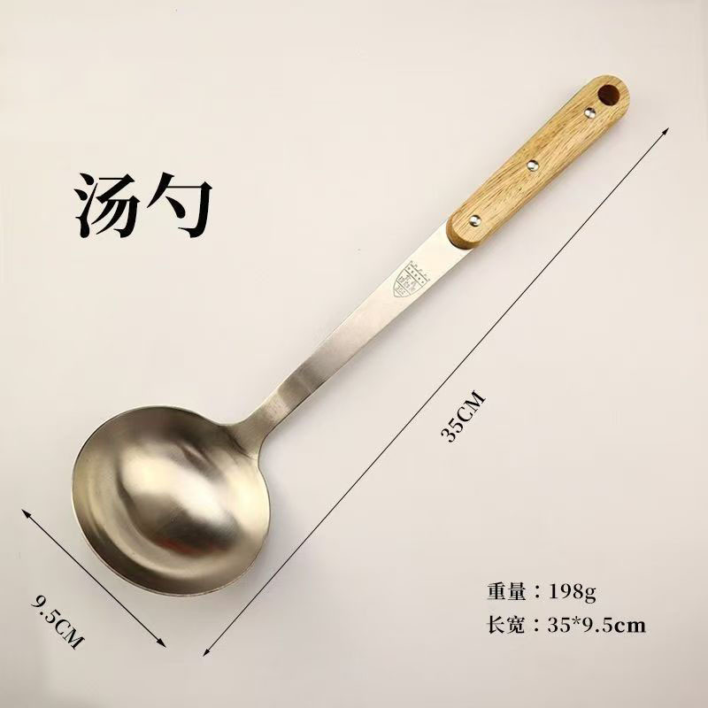 304 스테인레스 스틸 솔리드 우드 볶음 삽 주방 수프 껍질 누출 주방용품 세트 가정용 안티-scald Spoon스토어 가기