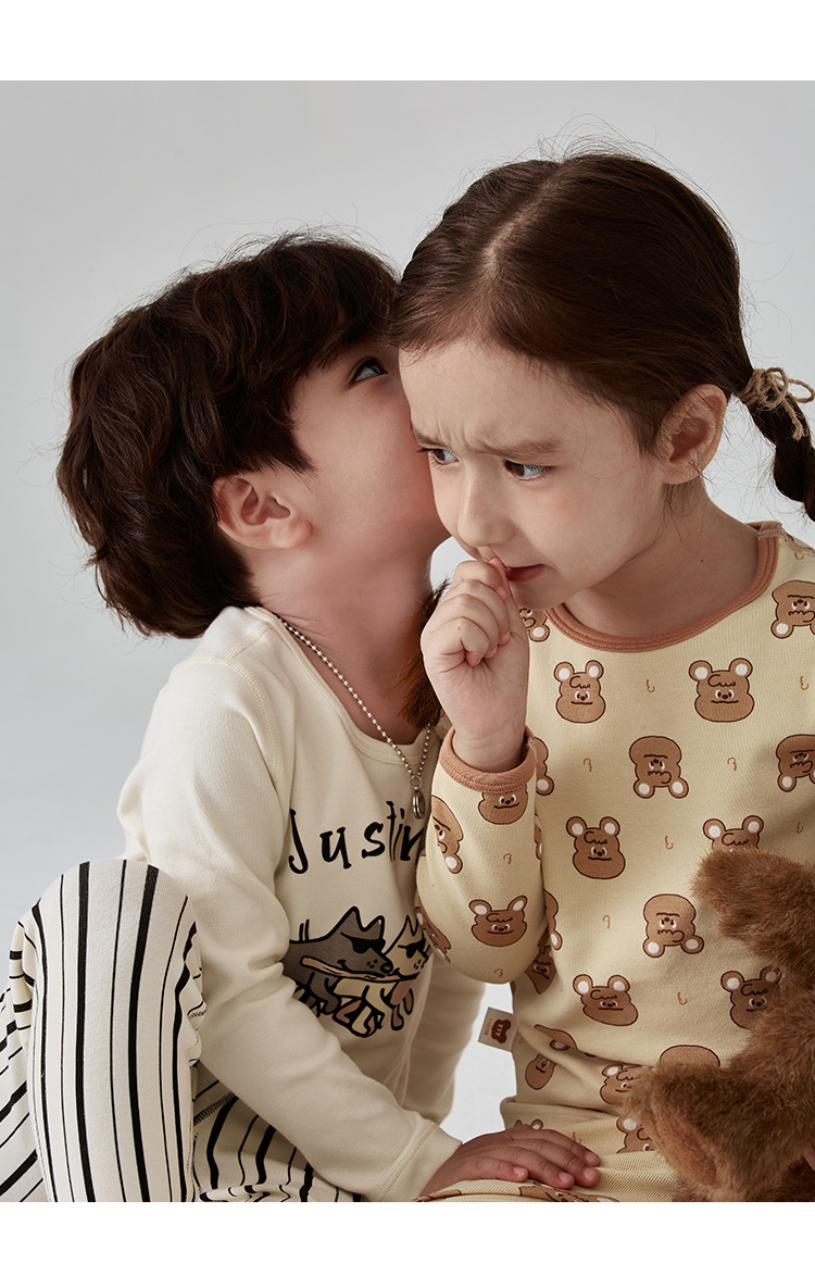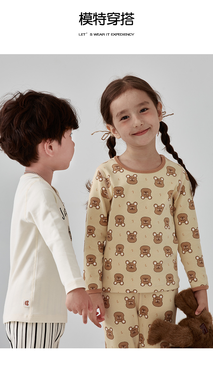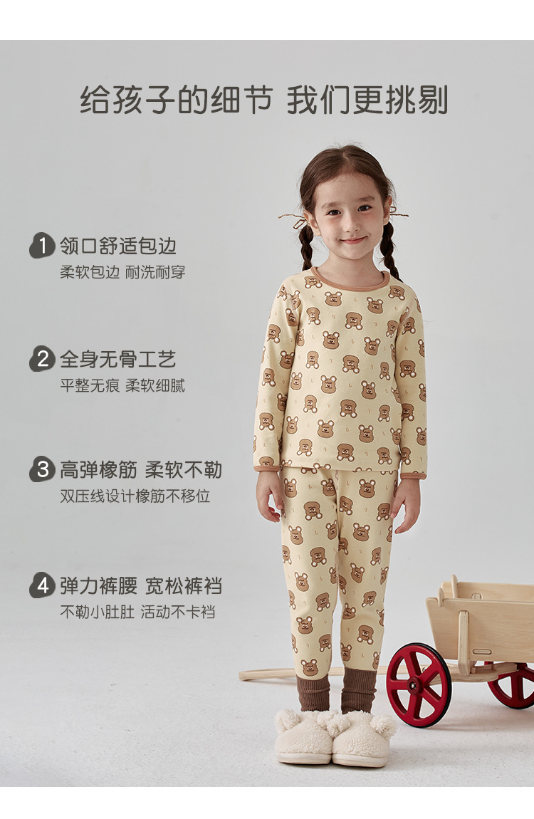 ZYZ 울 풀 프레임 어린이 파자마 두꺼운 따뜻한 어린이 가을 옷 클래스 바나나 곰 어린이 홈 옷