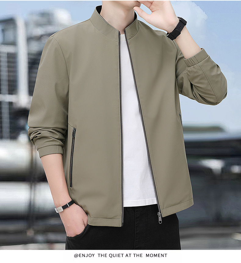 중년 아빠 재킷 남성 코트 봄과 가을 새로운 수직 칼라 중국 튜닉 캐주얼 비즈니스 솔리드 컬러 남성 탑