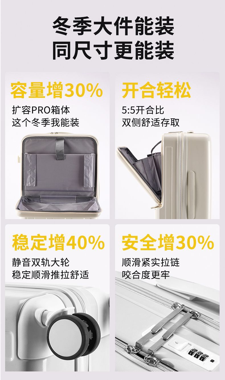 여성을위한 비즈니스 가방 전면 하프 오프닝 다기능 수하물 케이스 경량 및 남성용 내구성 하이 엔드 콤비네이션 잠금
