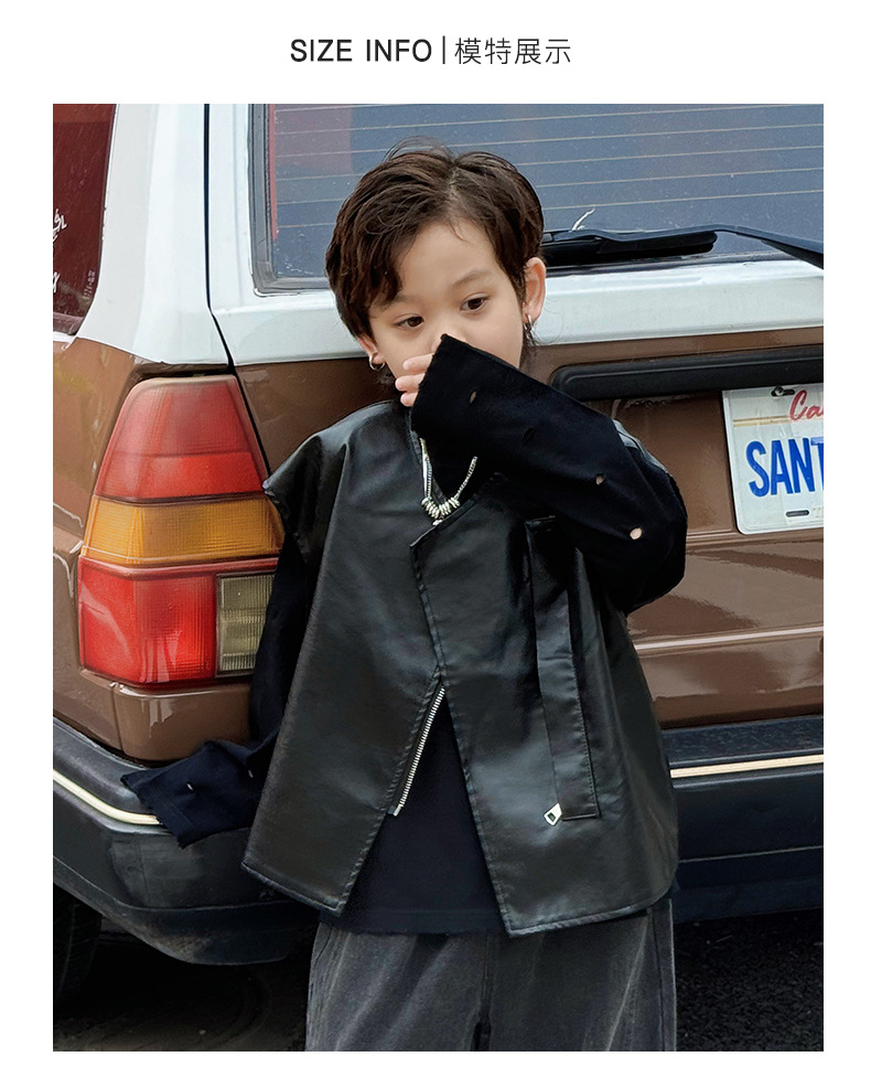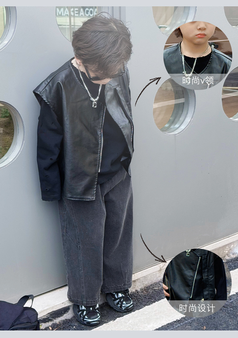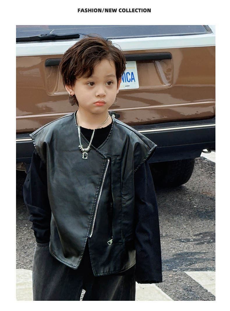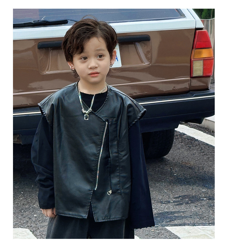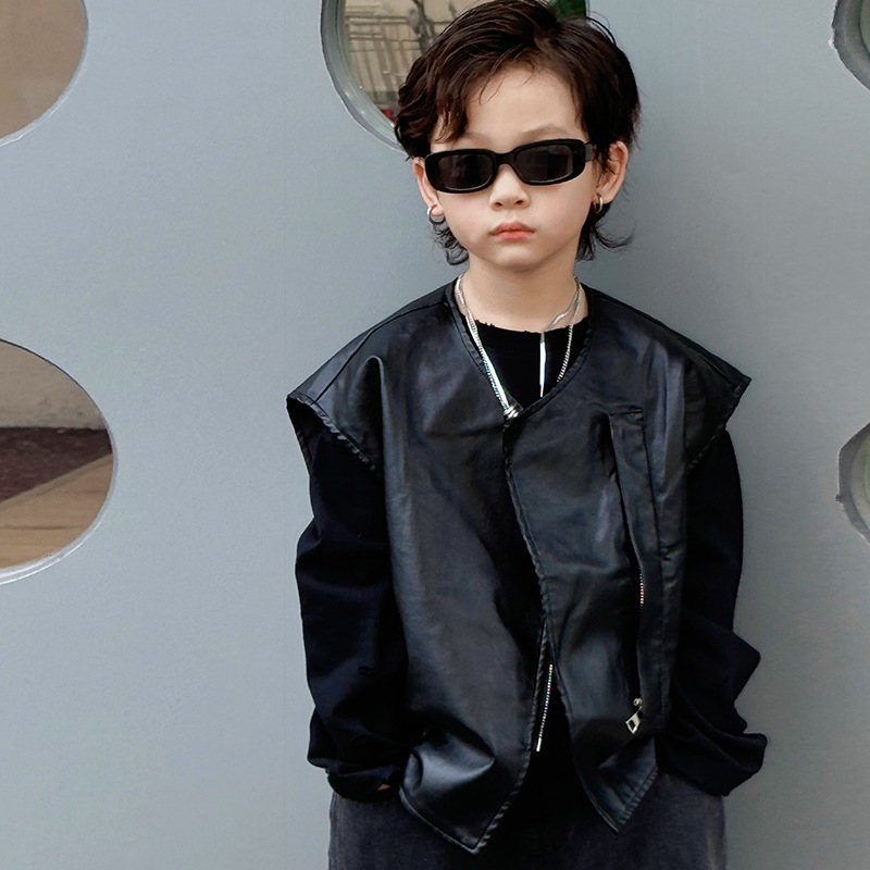 어린이 잘 생긴 가죽 자켓 2025 봄 새로운 스타일 소년 한국 스타일 서양식 조끼 어린이 봄, 가을 민소매 탑 유행스토어 가기
