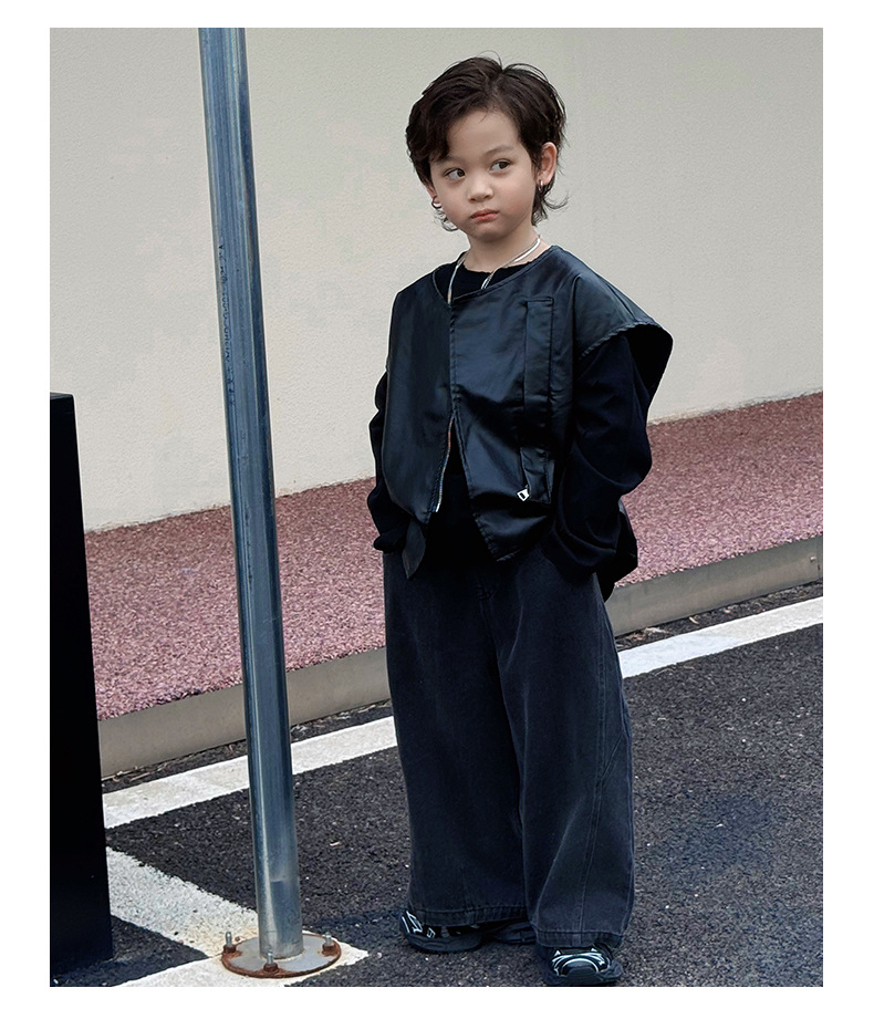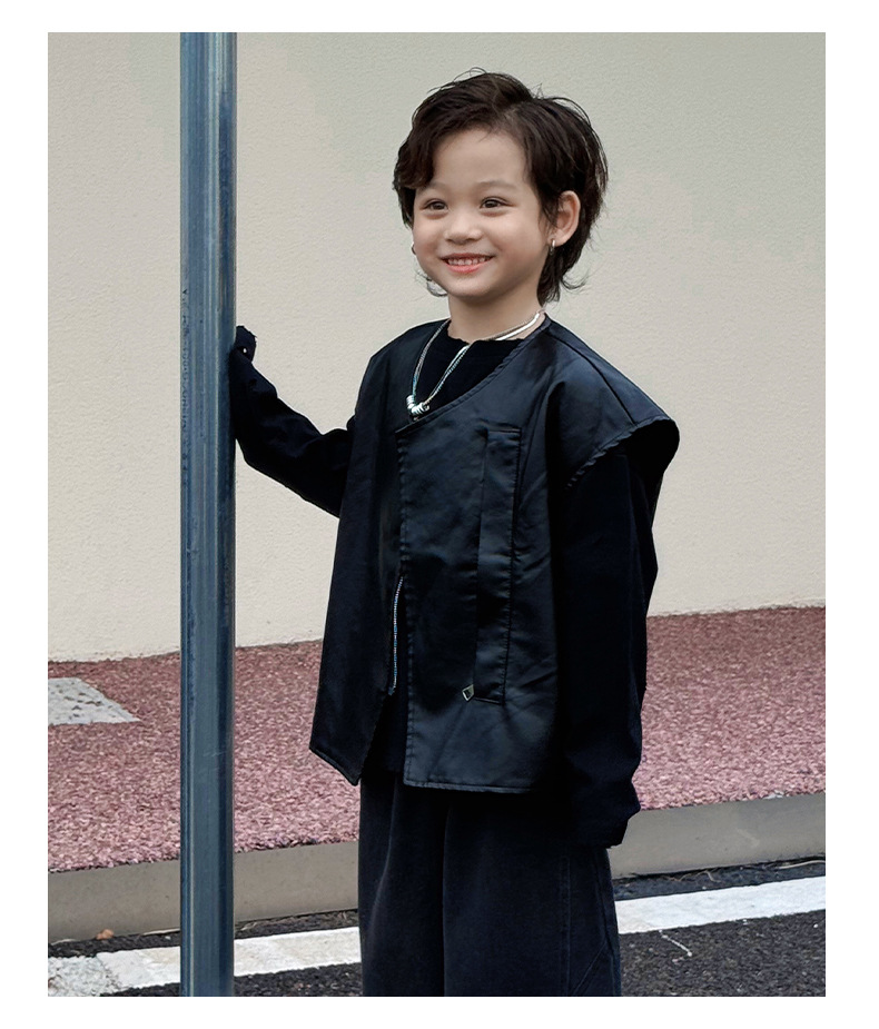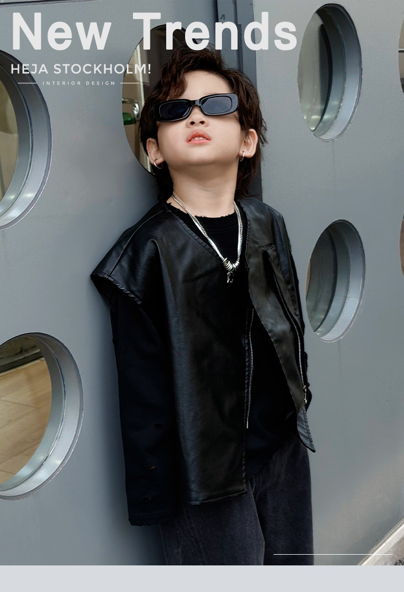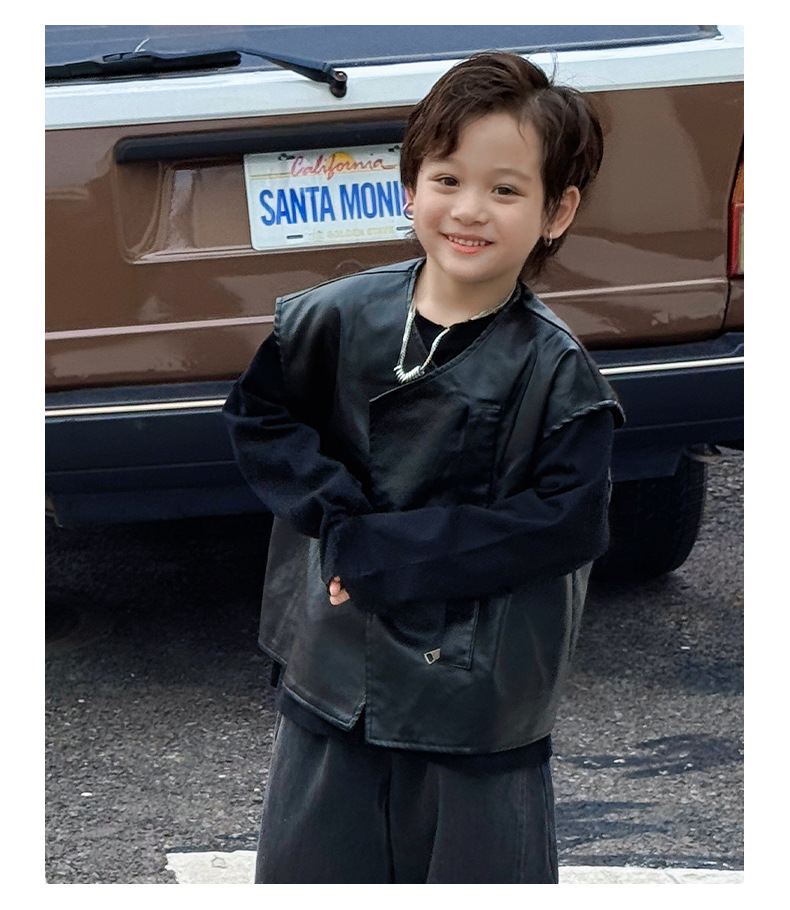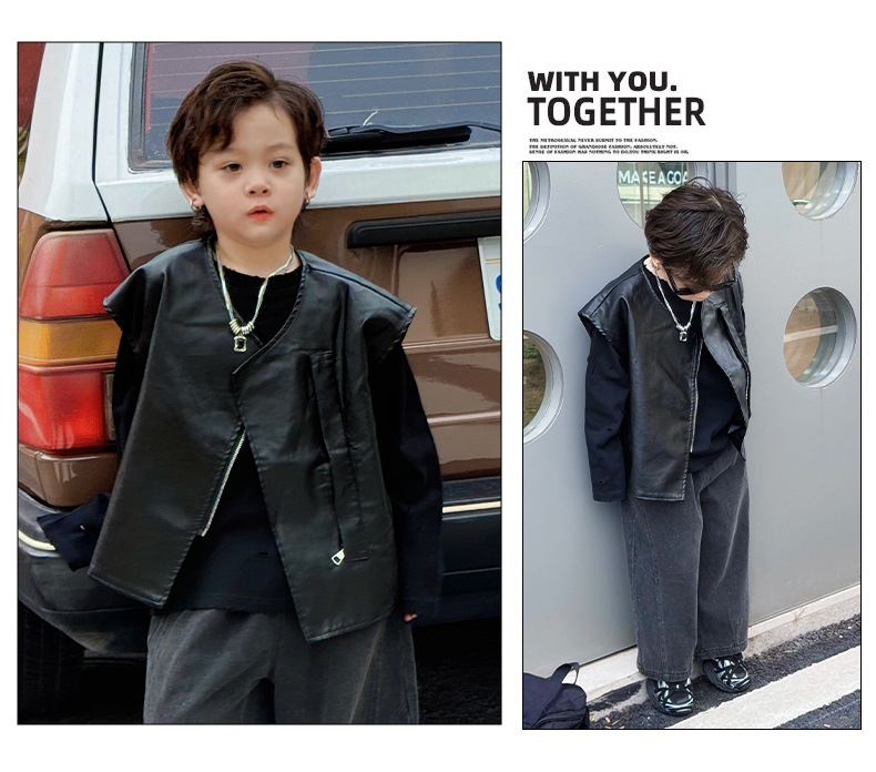 어린이 잘 생긴 가죽 자켓 2025 봄 새로운 스타일 소년 한국 스타일 서양식 조끼 어린이 봄, 가을 민소매 탑 유행스토어 가기