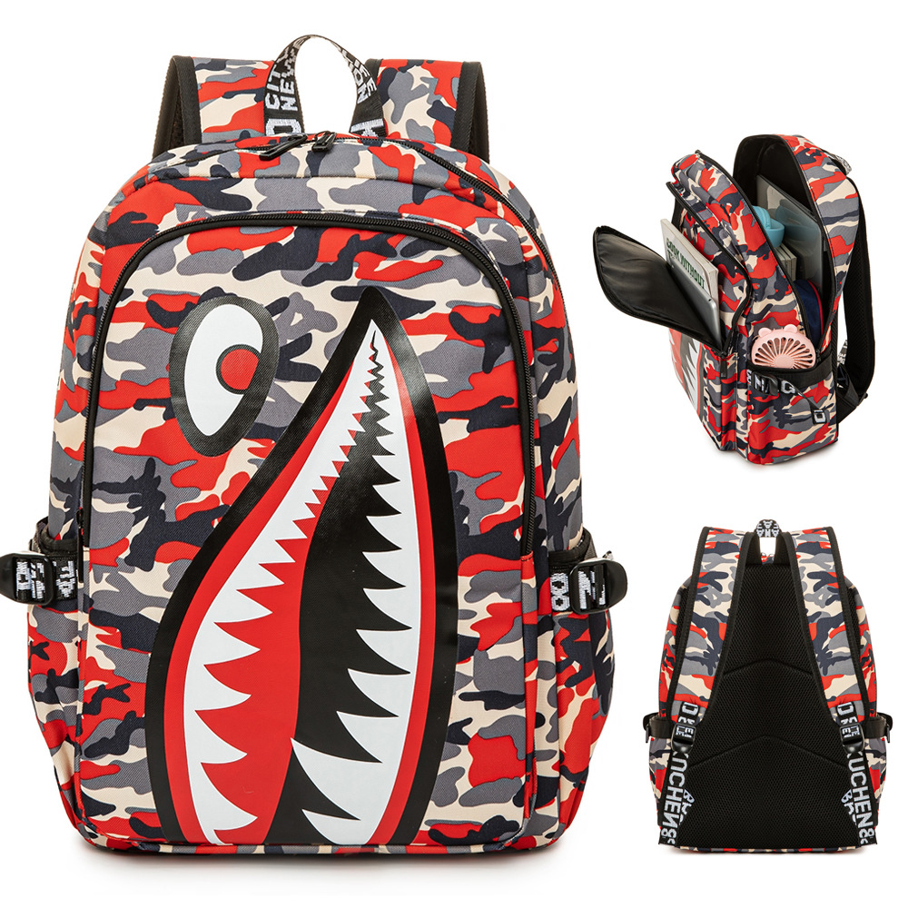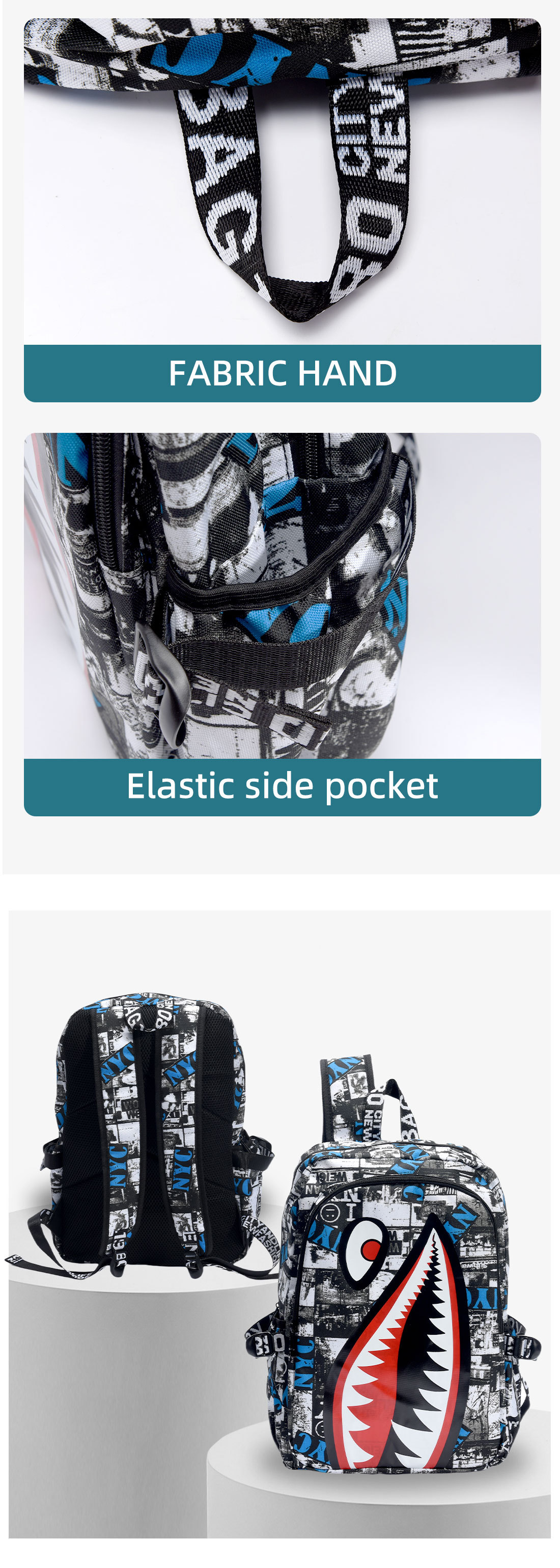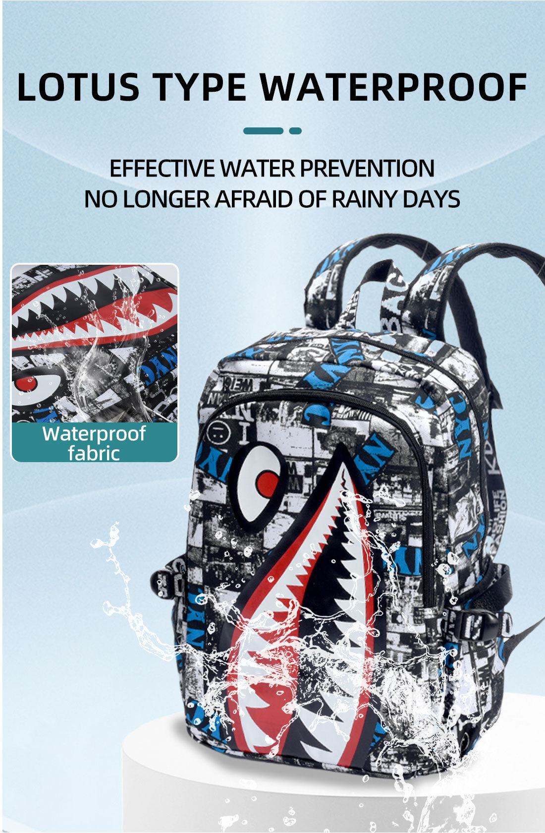 국경 간 새로운 어린이 학교 가방 남성 학생 상어 개인화 된 옥스포드 천 대용량 경량 캐주얼 간단한 트렌디 백팩