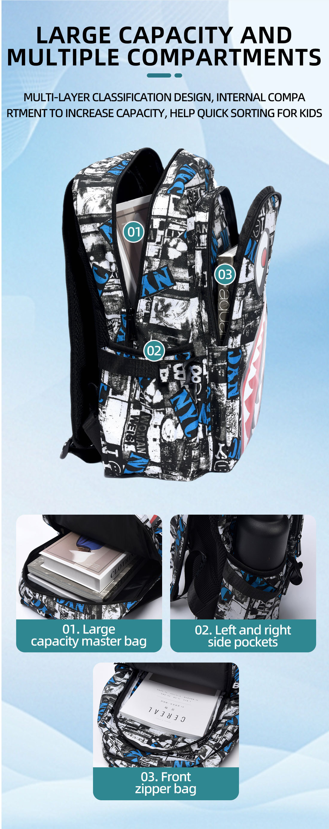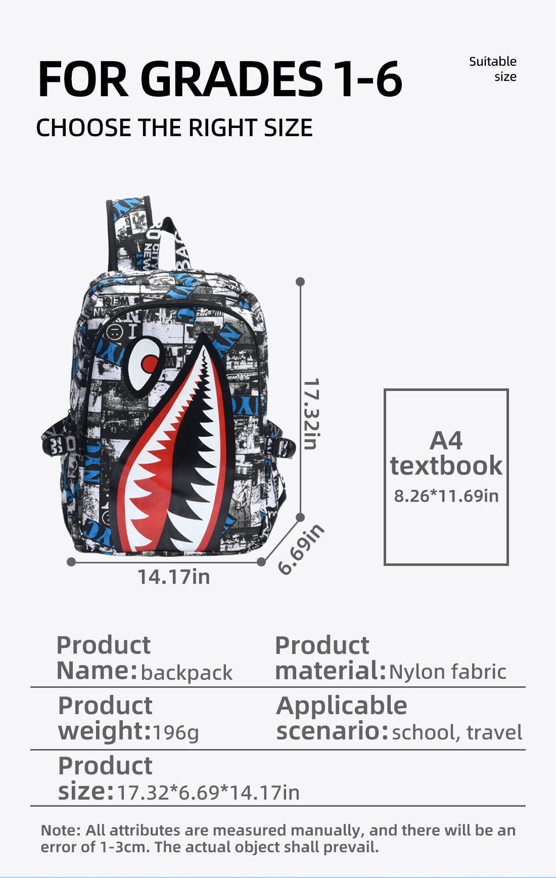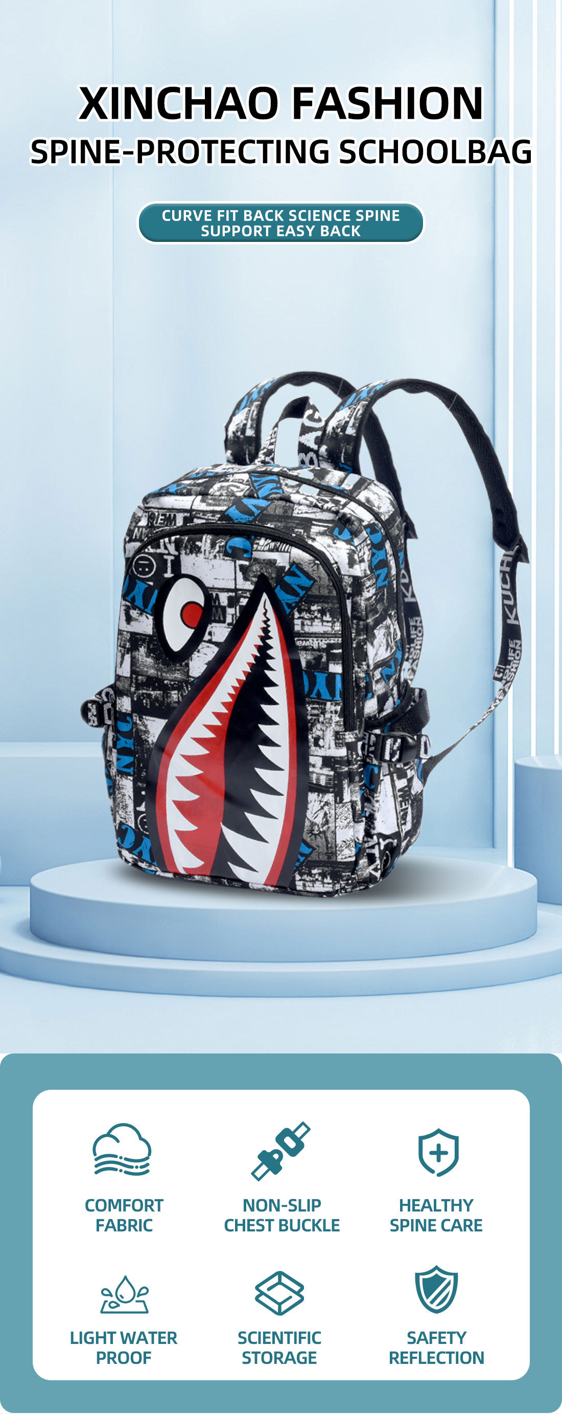 국경 간 새로운 어린이 학교 가방 남성 학생 상어 개인화 된 옥스포드 천 대용량 경량 캐주얼 간단한 트렌디 백팩