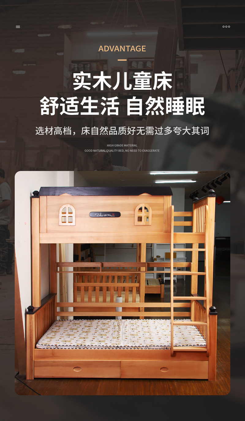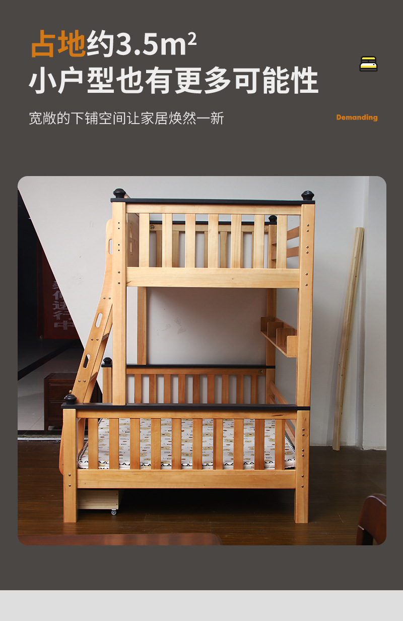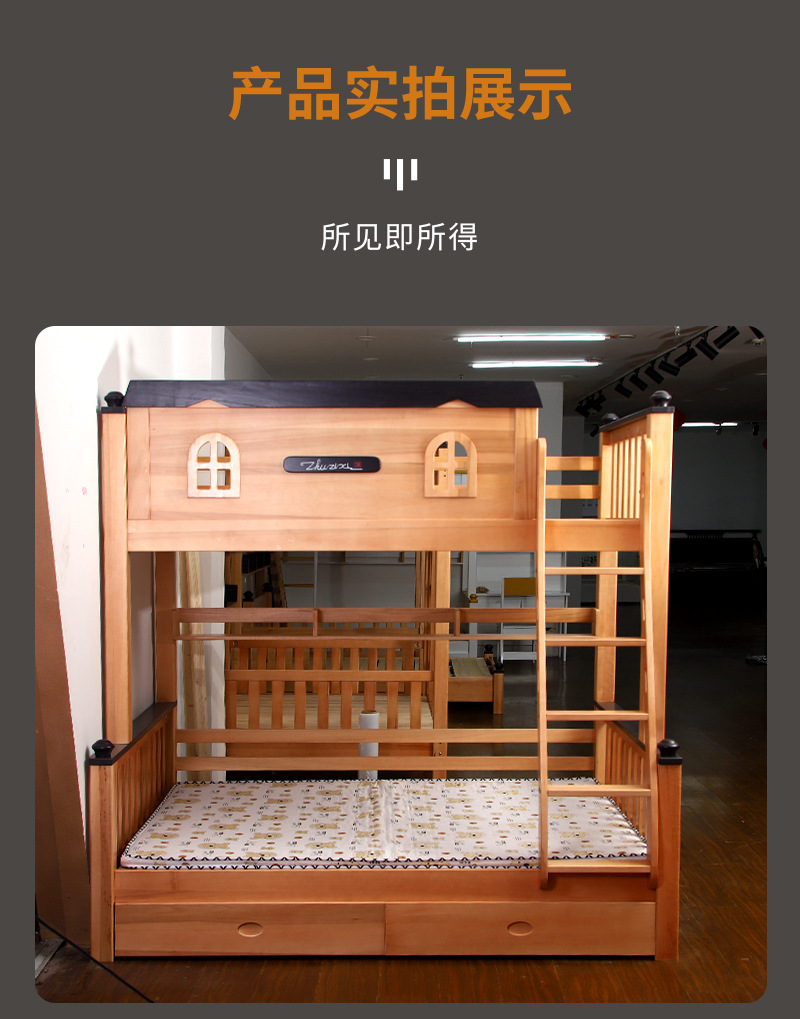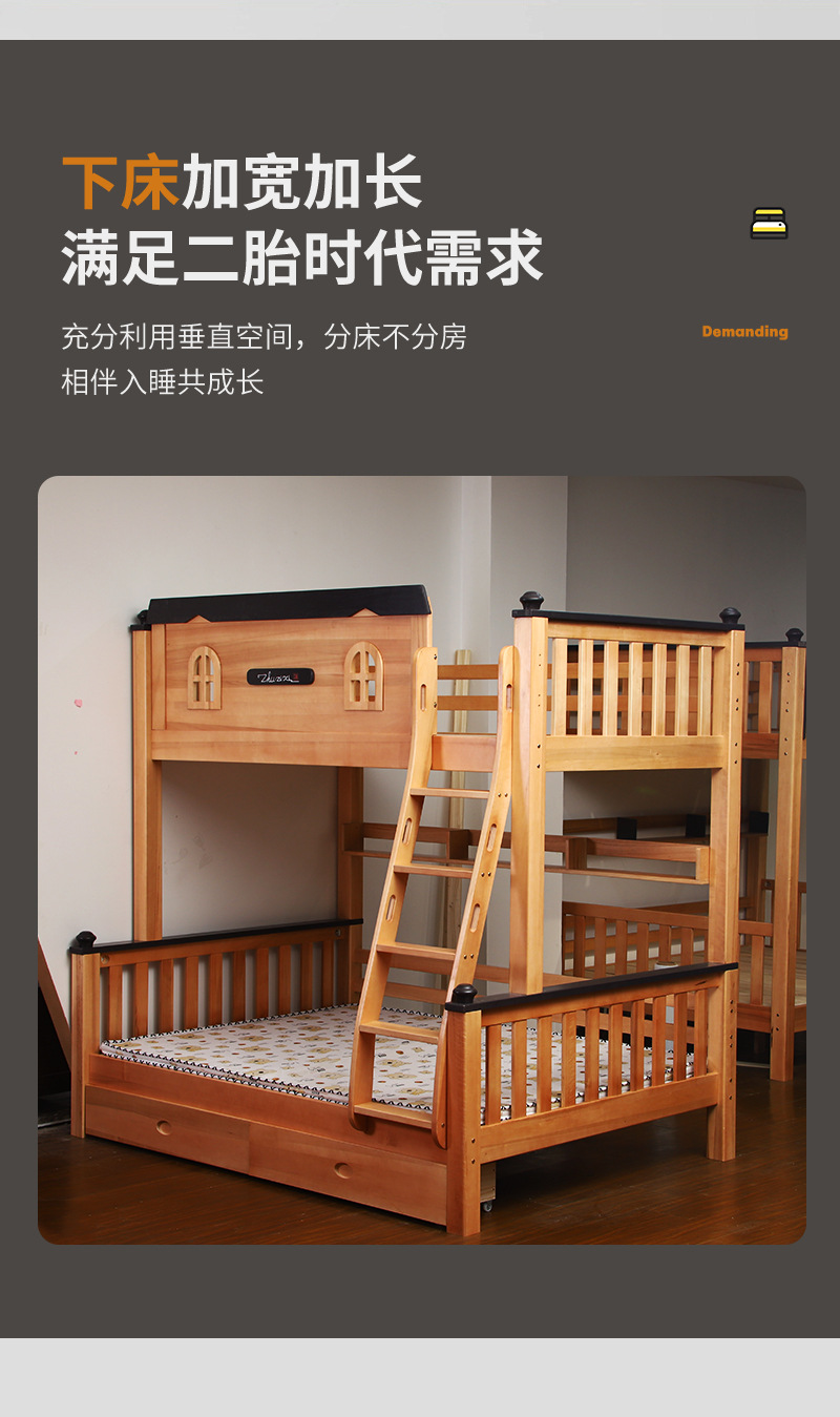 작은 아파트 전체 단단한 나무 상하 이층 침대 Liriodendron 어린이 침대 높고 낮은 침대 가정용 분리형 어머니 침대스토어 가기