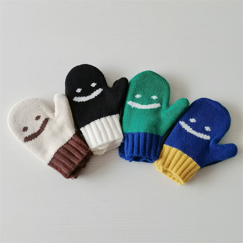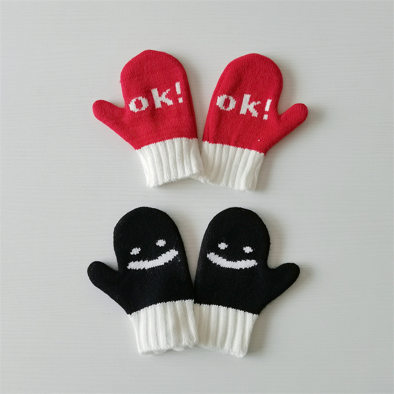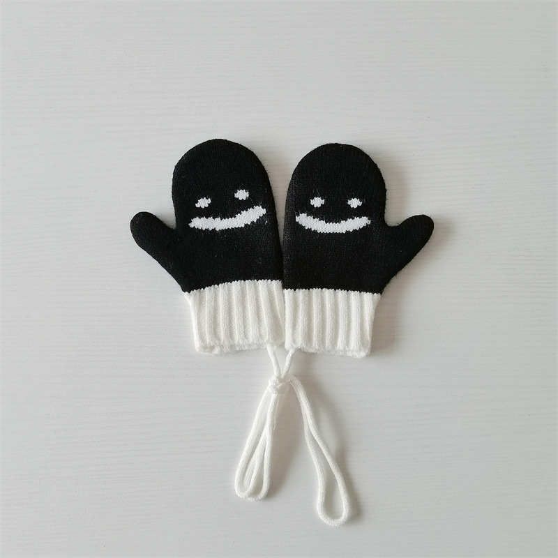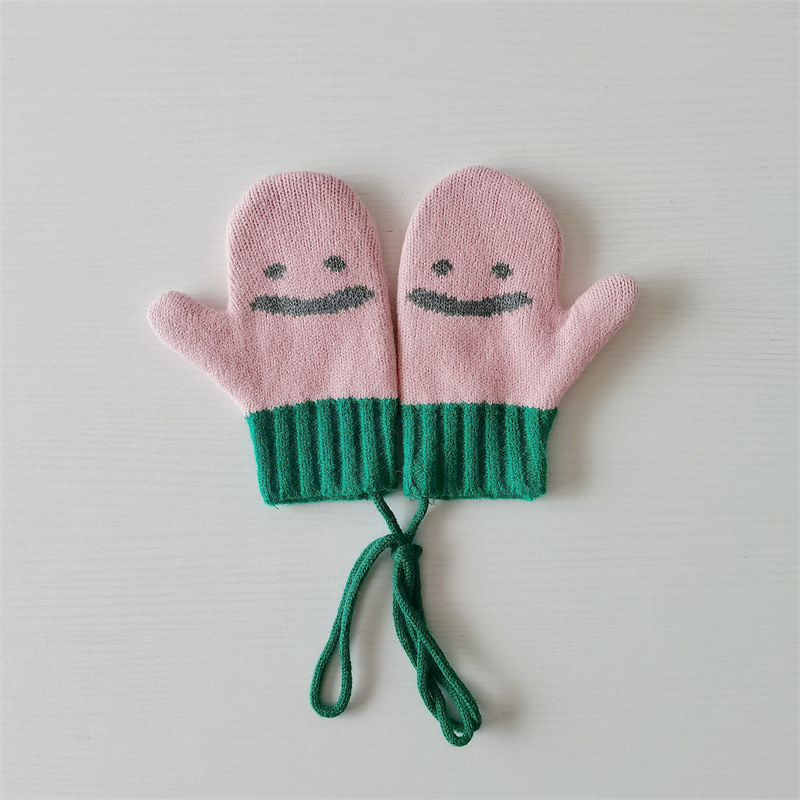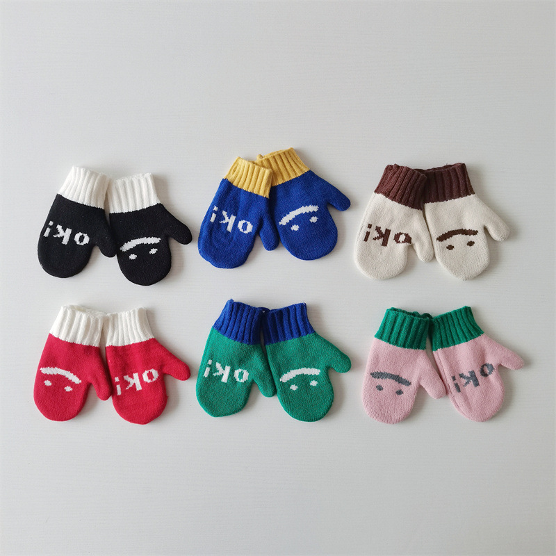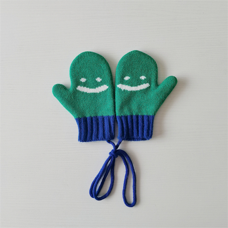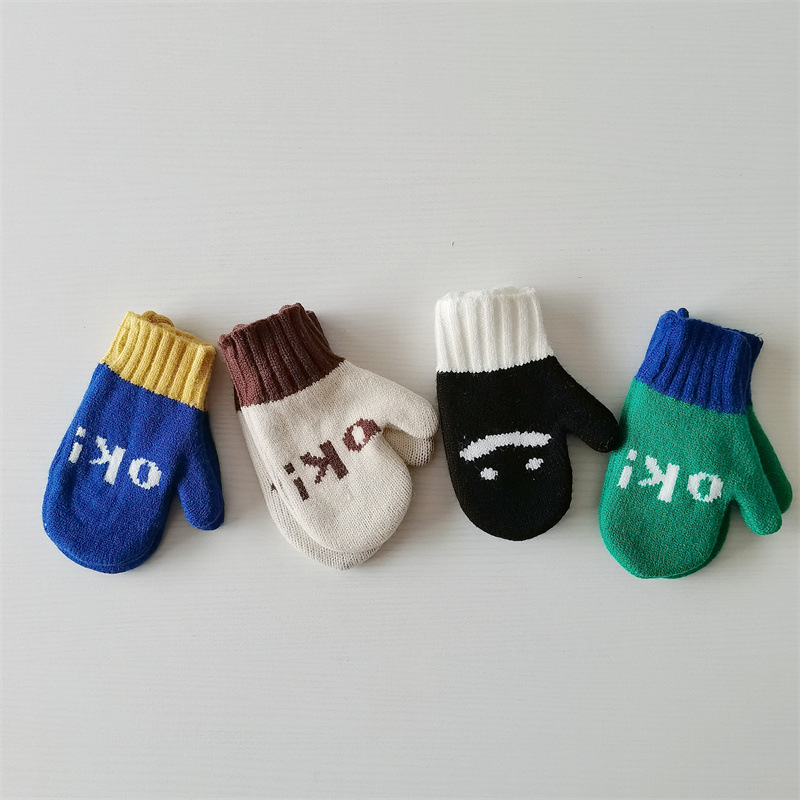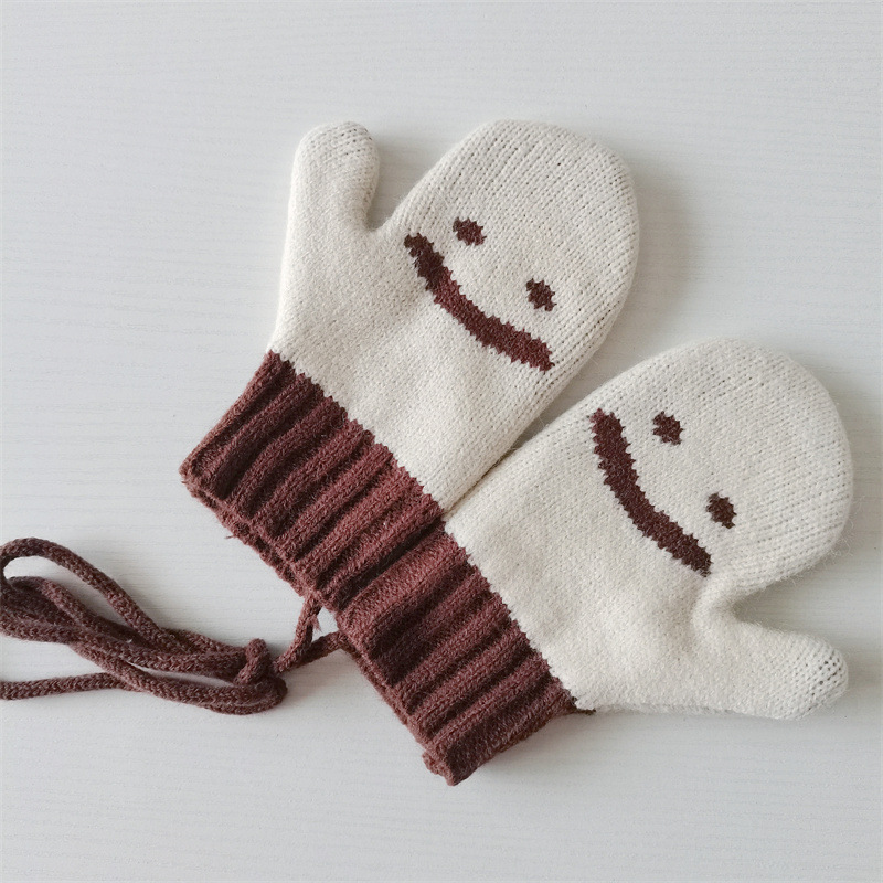 Ins 스타일 아동용 니트 장갑 가을과 겨울 서양식 소년 소녀 웃는 방청 가방 손가락 따뜻한 목 교수형 장갑