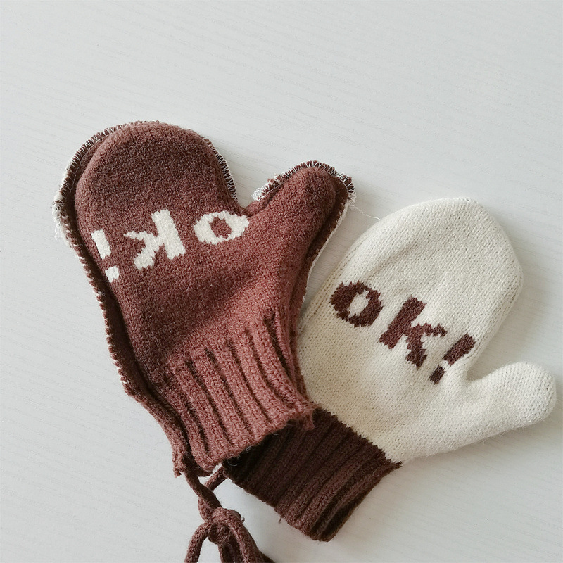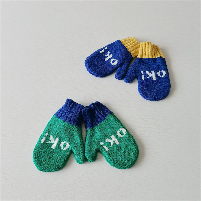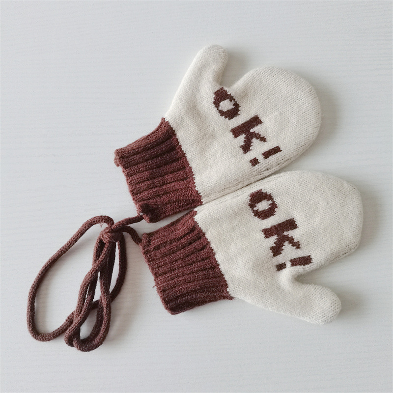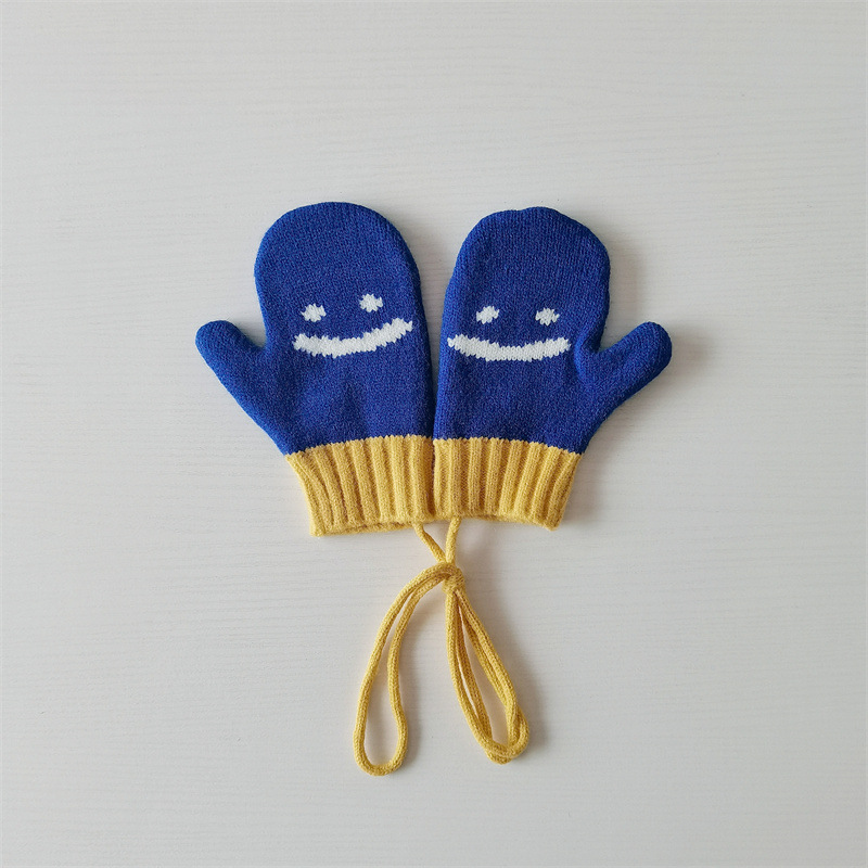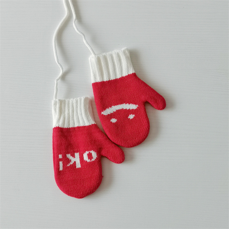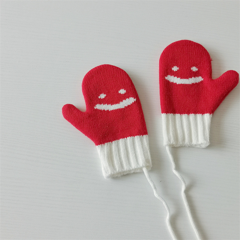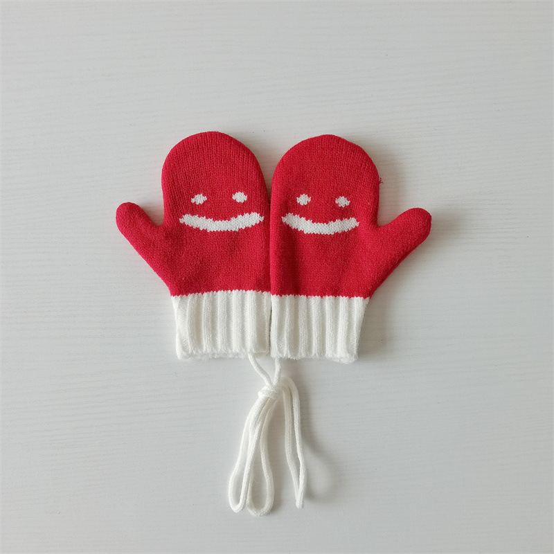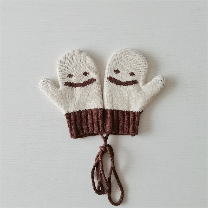 Ins 스타일 아동용 니트 장갑 가을과 겨울 서양식 소년 소녀 웃는 방청 가방 손가락 따뜻한 목 교수형 장갑