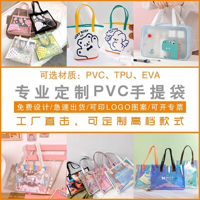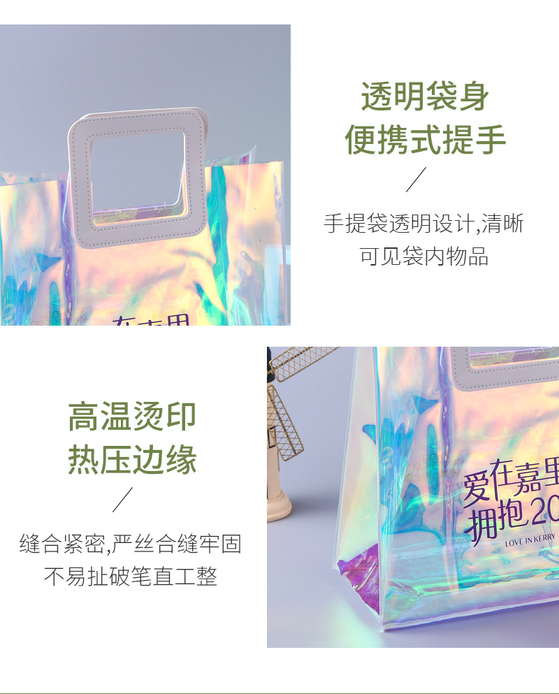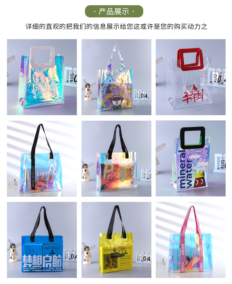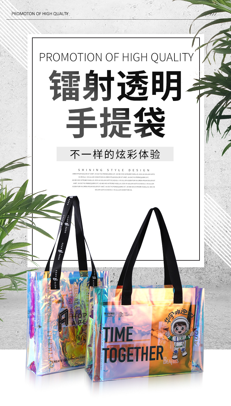 PVC 레이저 컬러풀 숄더백 로고 프린트 핸드백 쇼핑 박람회 젤리백 핸드백 DIY 휴대용스토어 가기