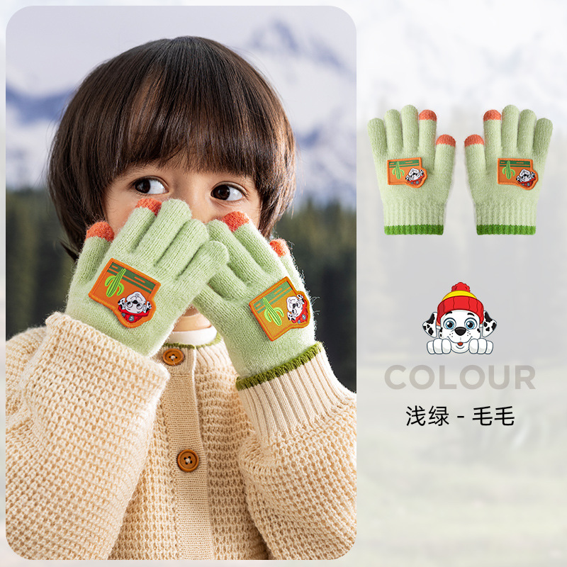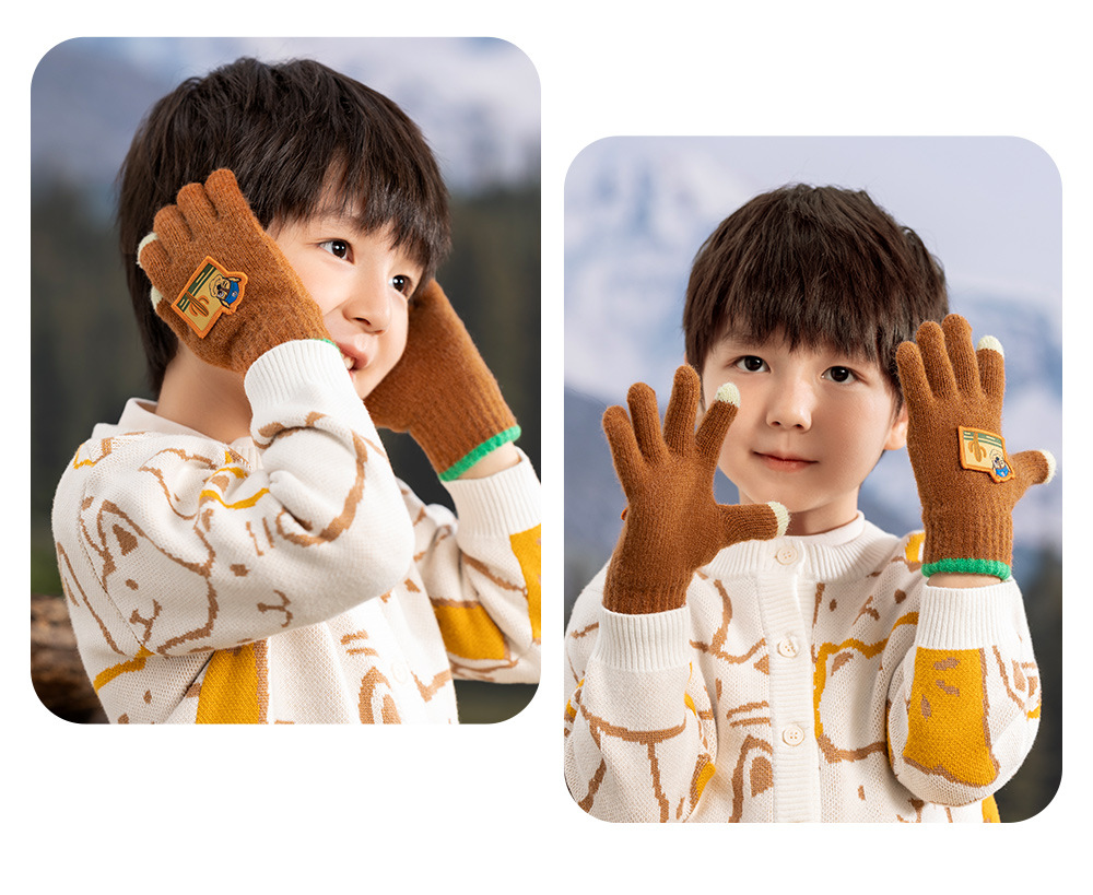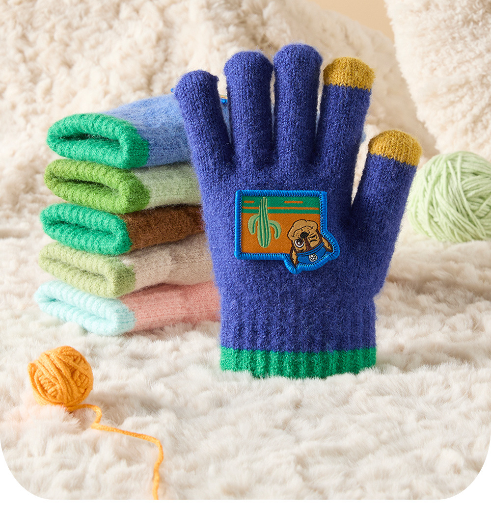 왕왕 팀 어린이 다섯 손가락 장갑 가을과 겨울 소년 장갑 소녀 따뜻한 장갑 2024 새로운 양모 장갑
