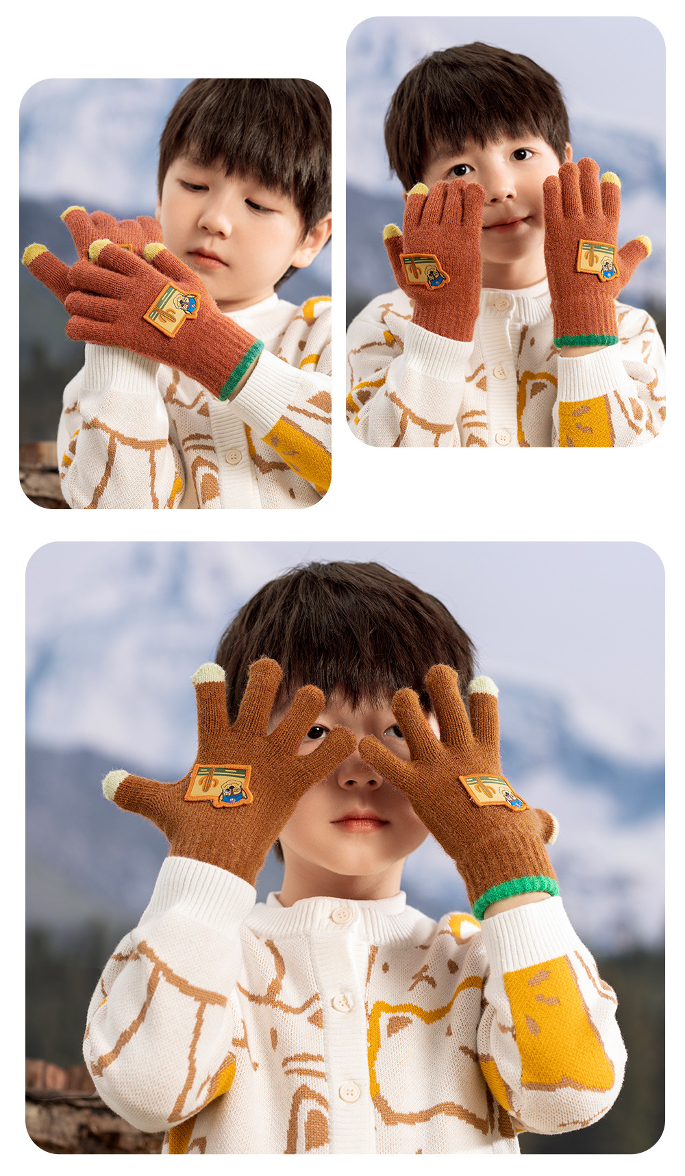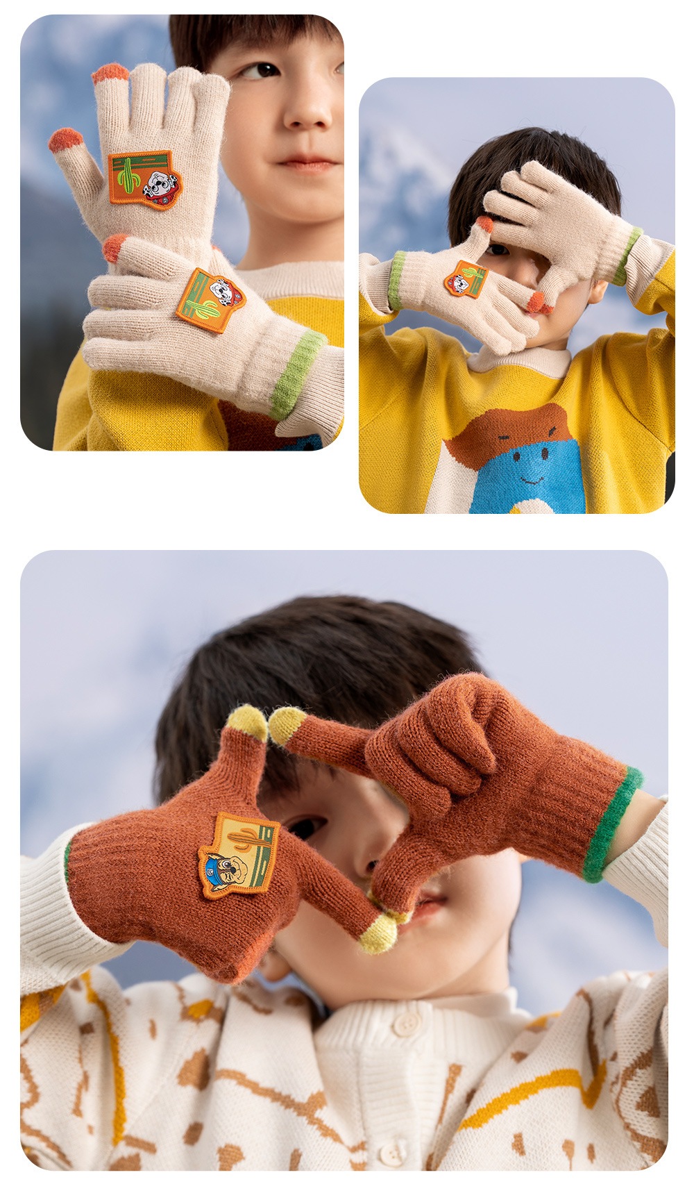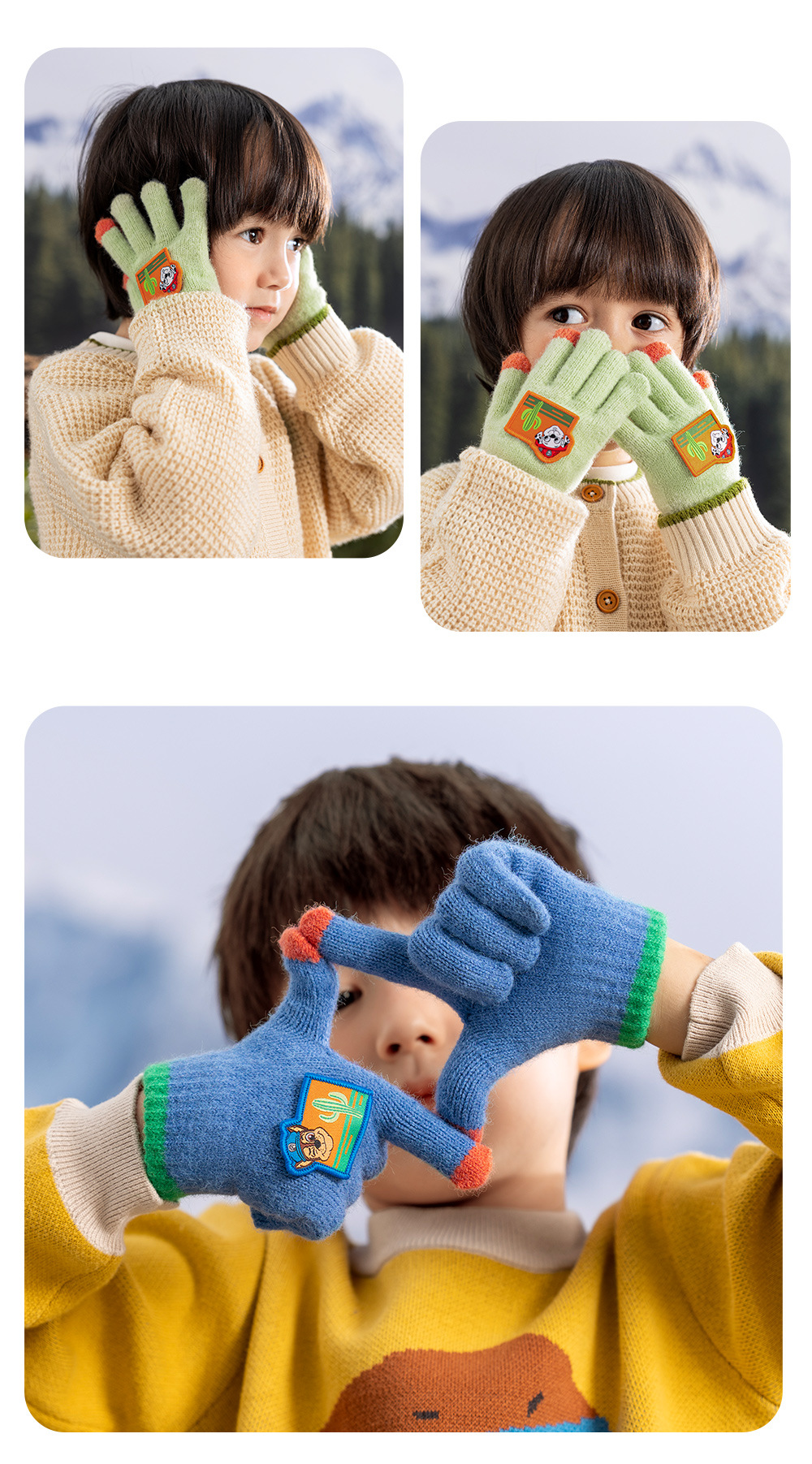 왕왕 팀 어린이 다섯 손가락 장갑 가을과 겨울 소년 장갑 소녀 따뜻한 장갑 2024 새로운 양모 장갑스토어 가기