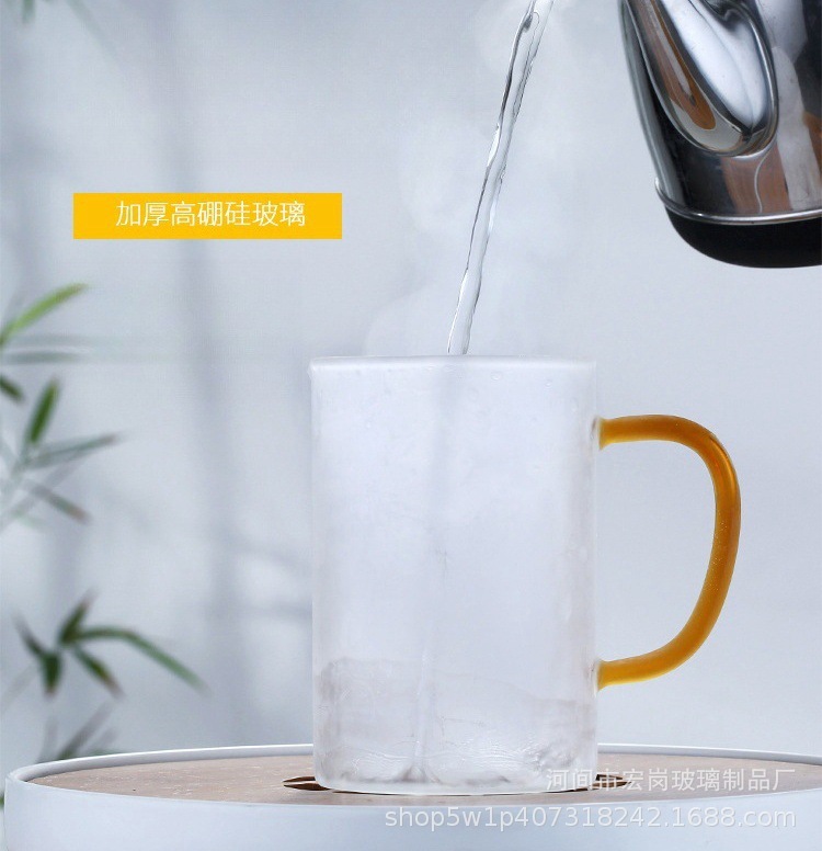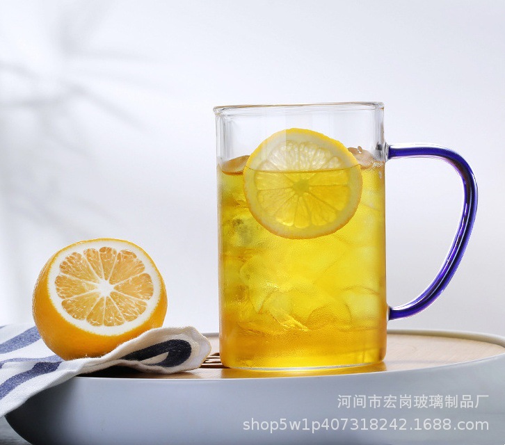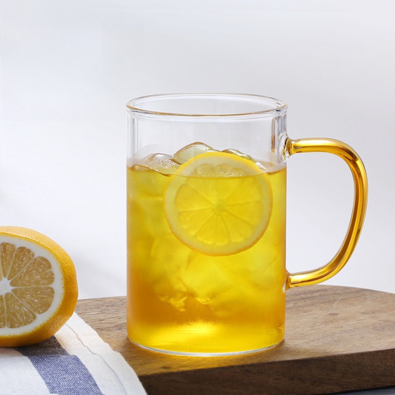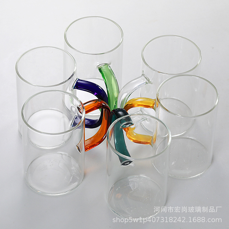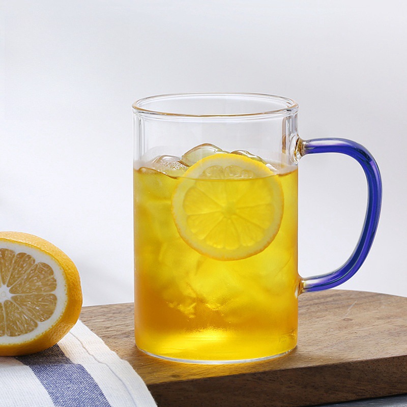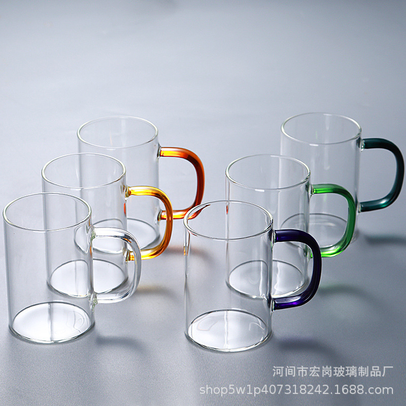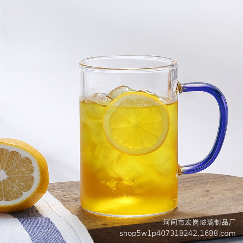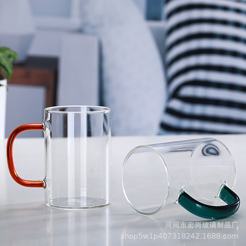 고붕규산염 내열 유리컵, 컬러 손잡이가 있는 물컵, 아침식사용 우유 주스 머그컵, 가정용 대용량 투명컵스토어 가기