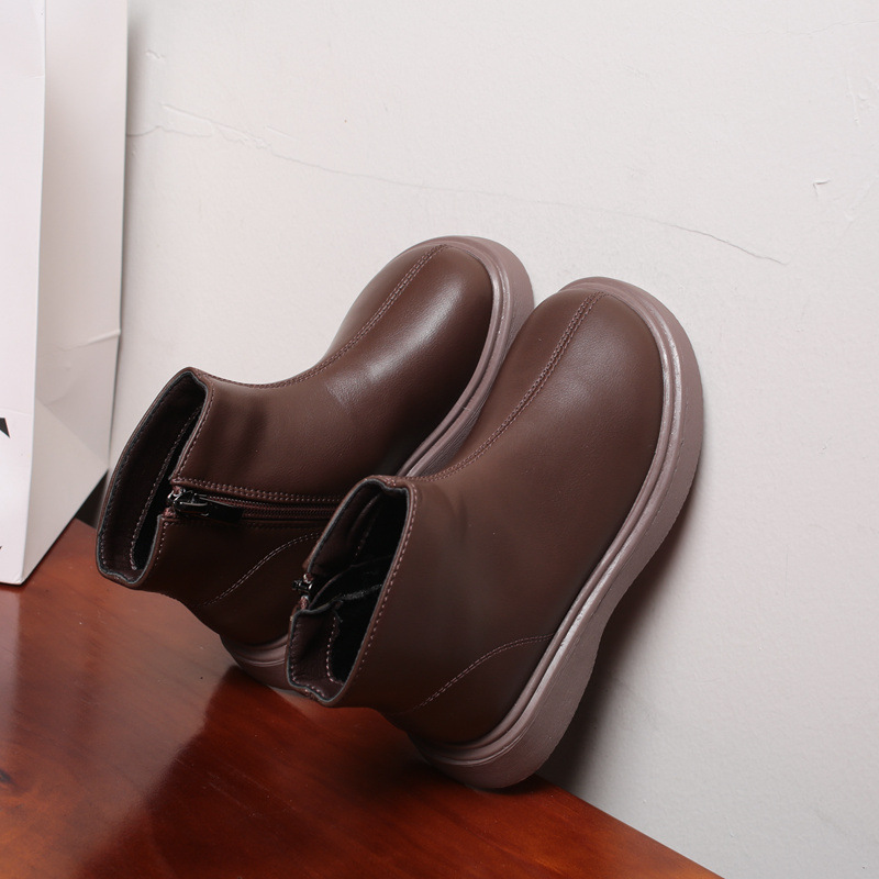 간단한 올 매치 어린이 마틴 부츠 솔리드 컬러 소녀 베이비 부츠 가을과 겨울 24 새로운 싱글 부츠 보이즈 코튼 가죽 부츠
