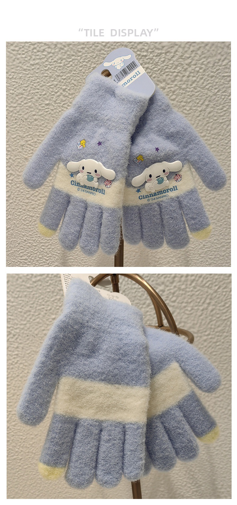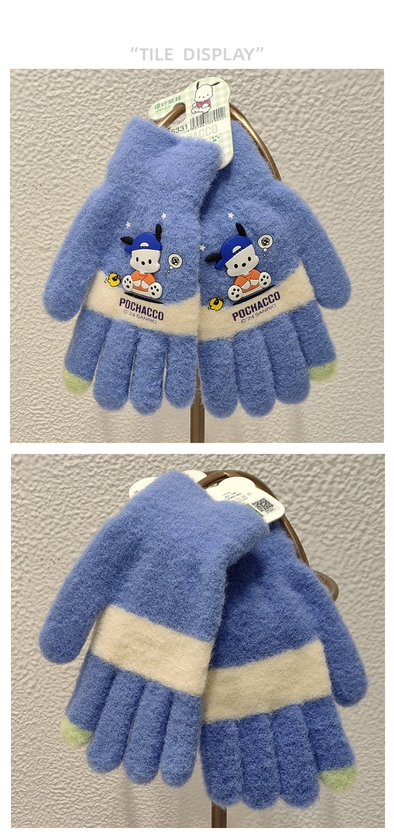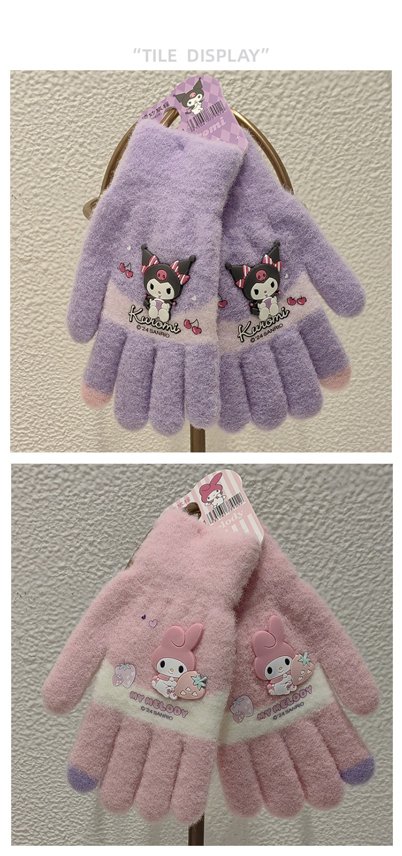 산리오 정품 공인 만화 다섯 손가락 니트 장갑 겨울 감기 방지 따뜻한 유지 학생 손가락 장갑 쓰기 손가락 장갑스토어 가기