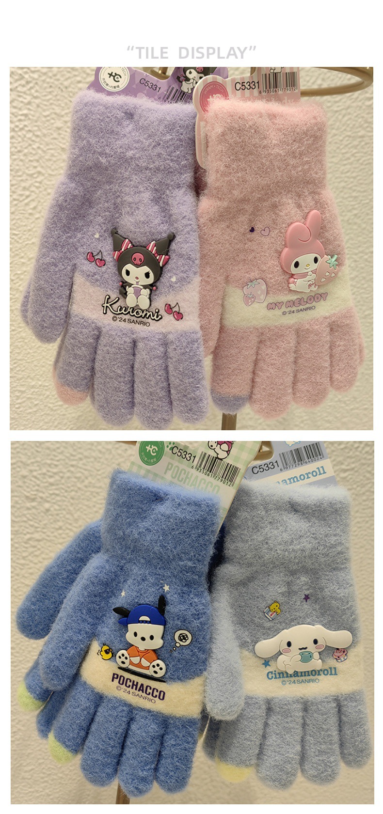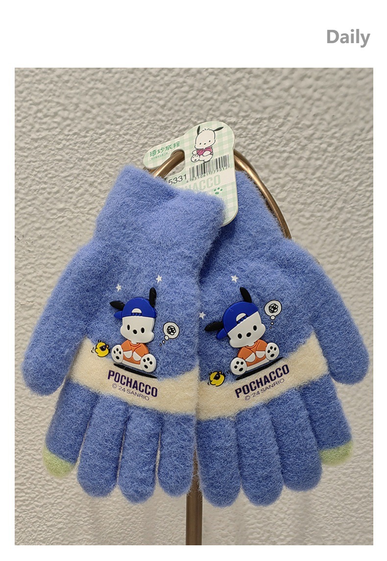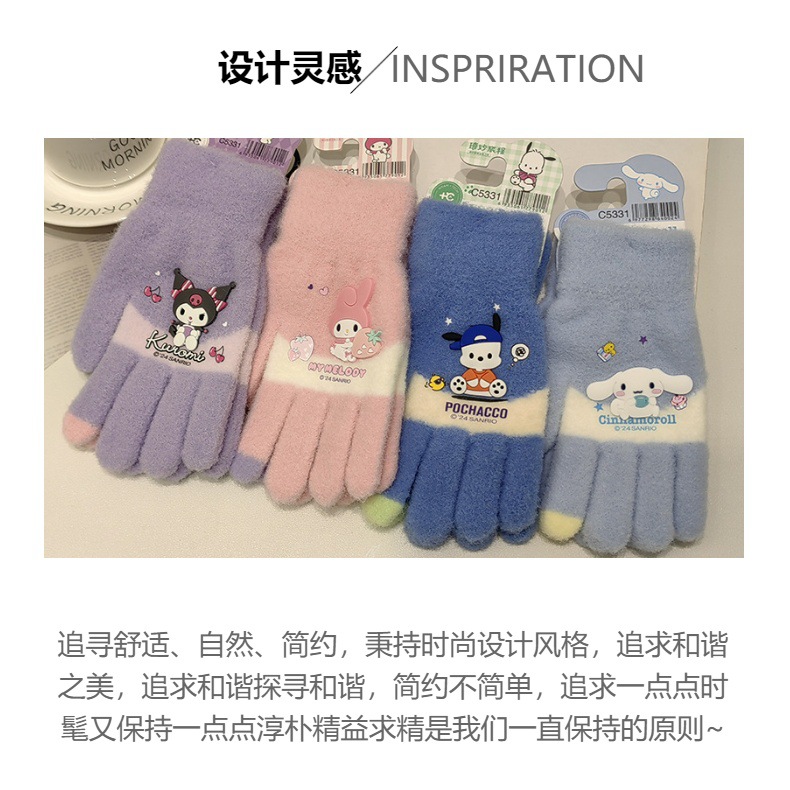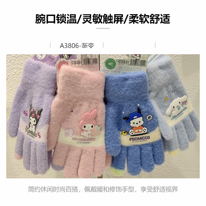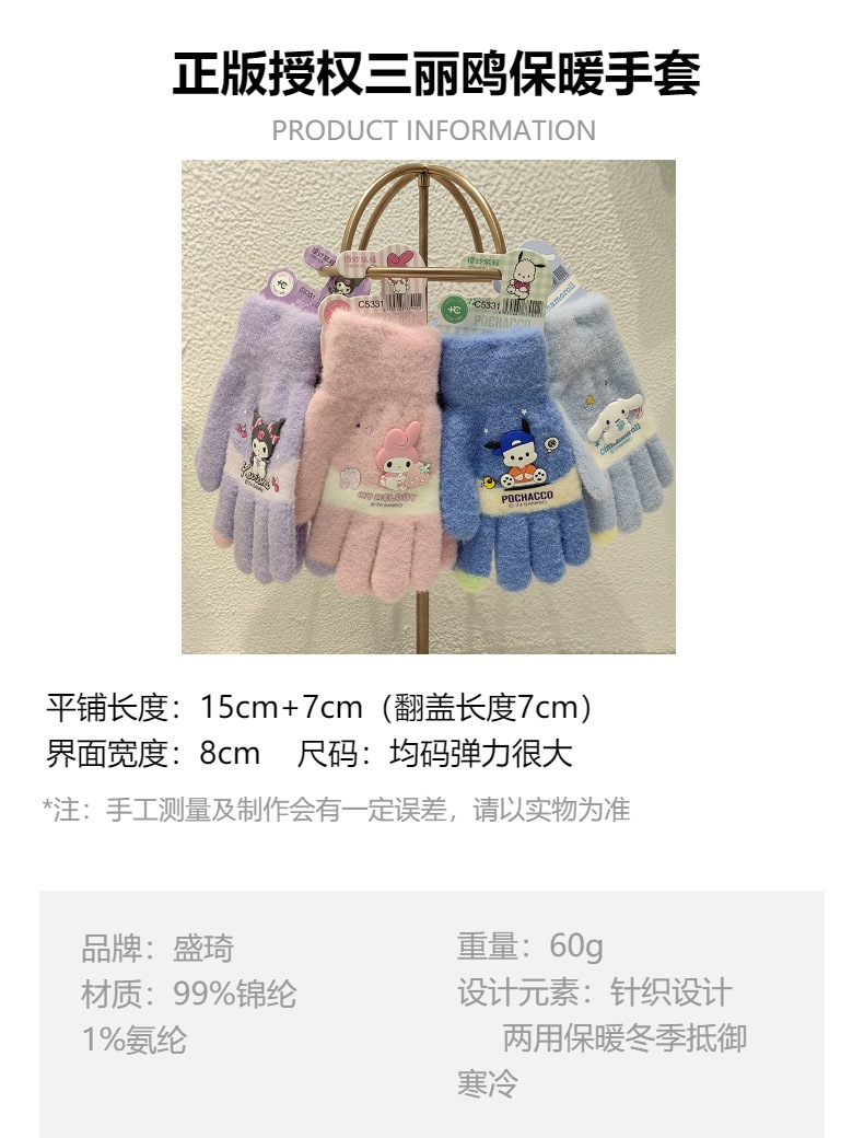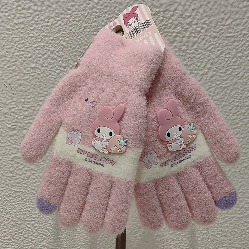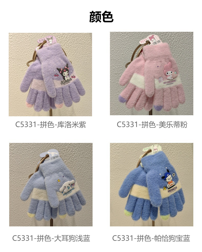 산리오 정품 공인 만화 다섯 손가락 니트 장갑 겨울 감기 방지 따뜻한 유지 학생 손가락 장갑 쓰기 손가락 장갑
