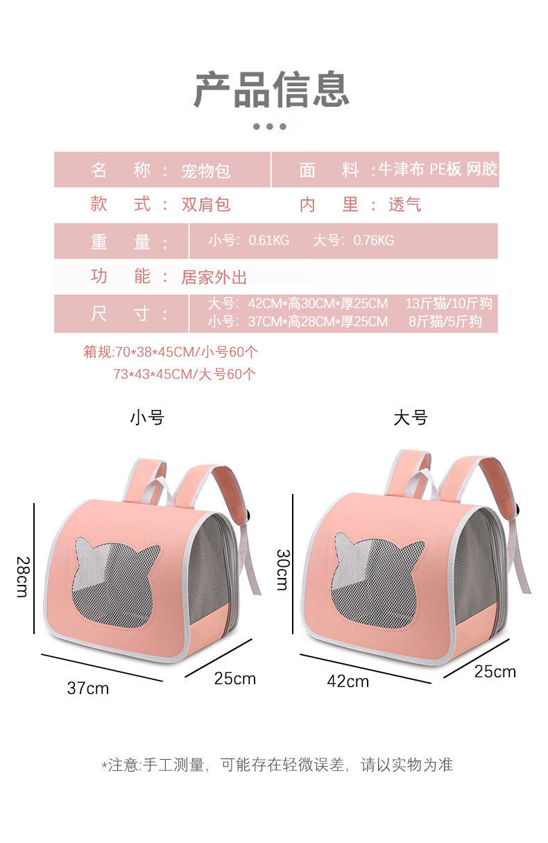 애완동물 가방, 휴대용 고양이 가방, 대용량, 가볍고 통기성 좋은 야외 여행용 애완동물 백팩, 애완용품스토어 가기