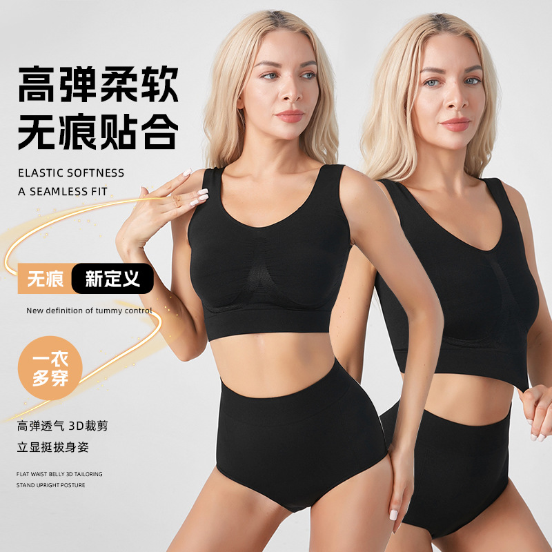 솔리드 컬러 트랙리스 브라 높은 탄성 푸시 업 안티 처지 풀 컵 스포츠 속옷 요가 피트니스 여성용 조끼 착용스토어 가기