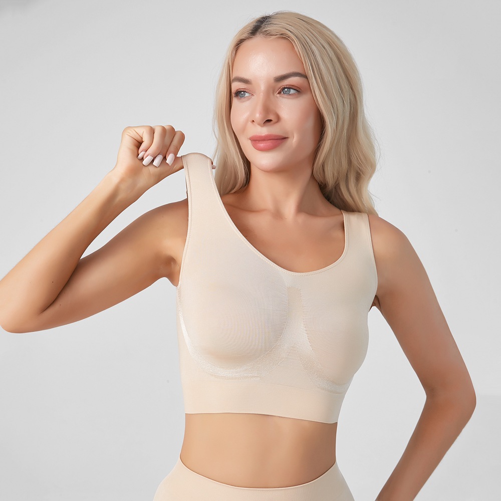 솔리드 컬러 트랙리스 브라 높은 탄성 푸시 업 안티 처지 풀 컵 스포츠 속옷 요가 피트니스 여성용 조끼 착용