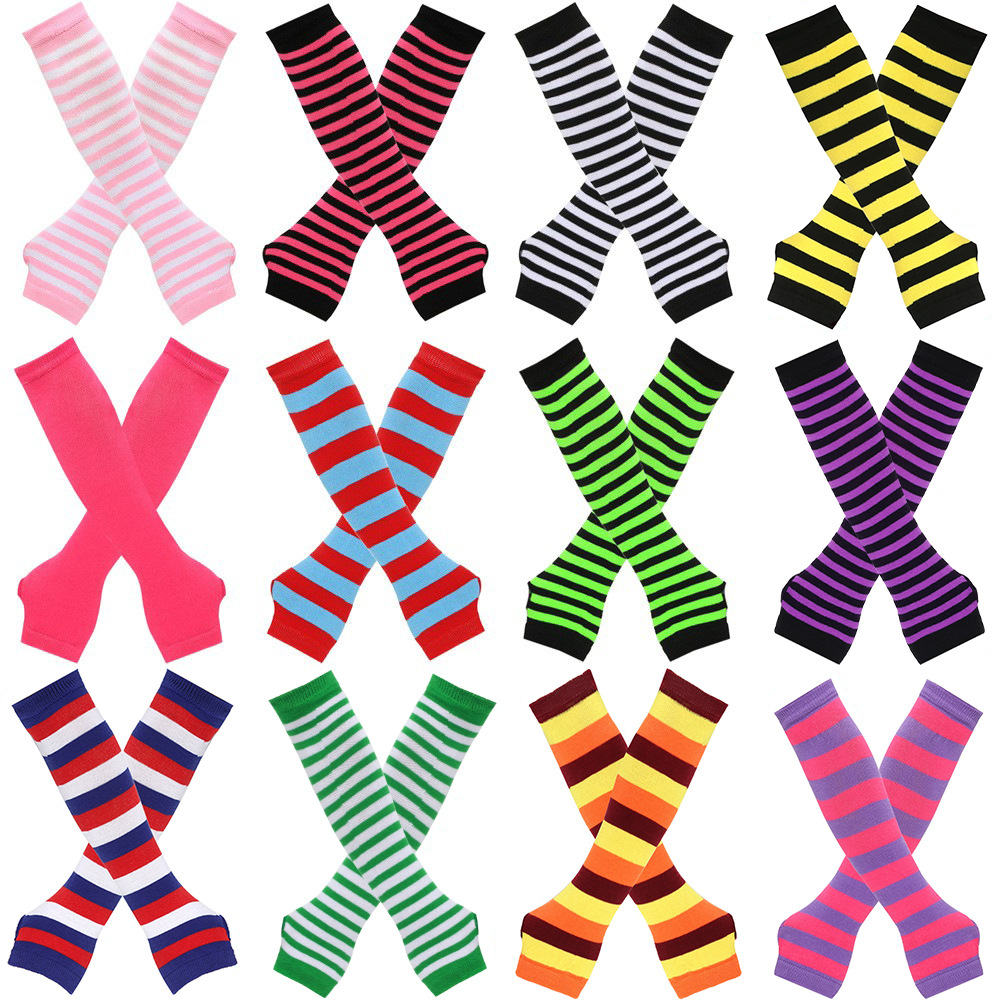 일본 Harajuku cospla 애니메이션 줄무늬 Exclare 긴 손목 장갑 Y2k 밀레니엄 스파이스 소녀 Exclare Striped Exclare Sleeve