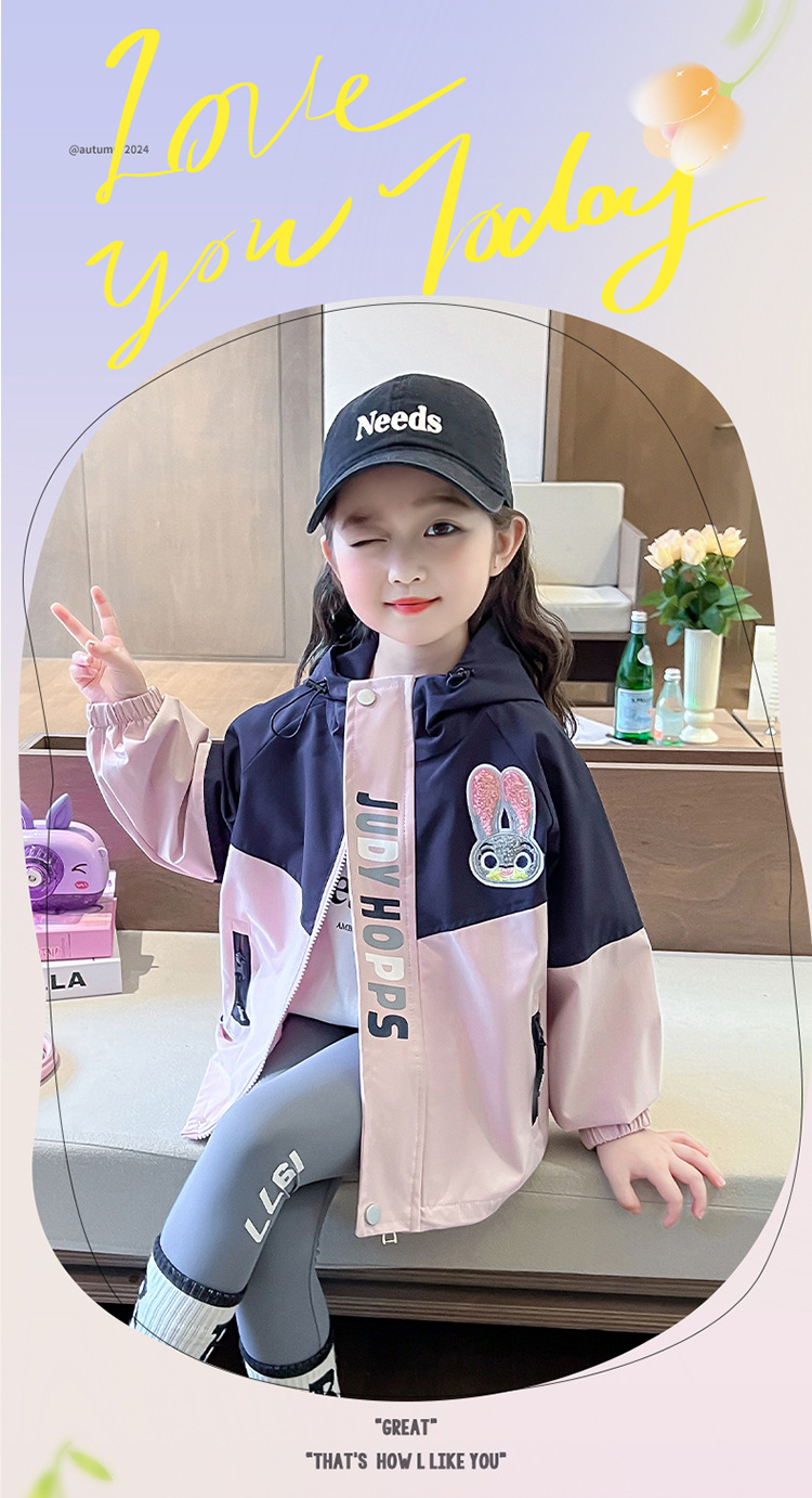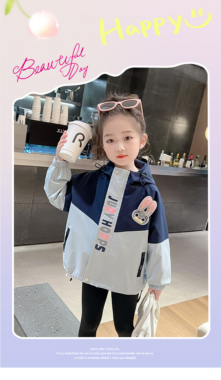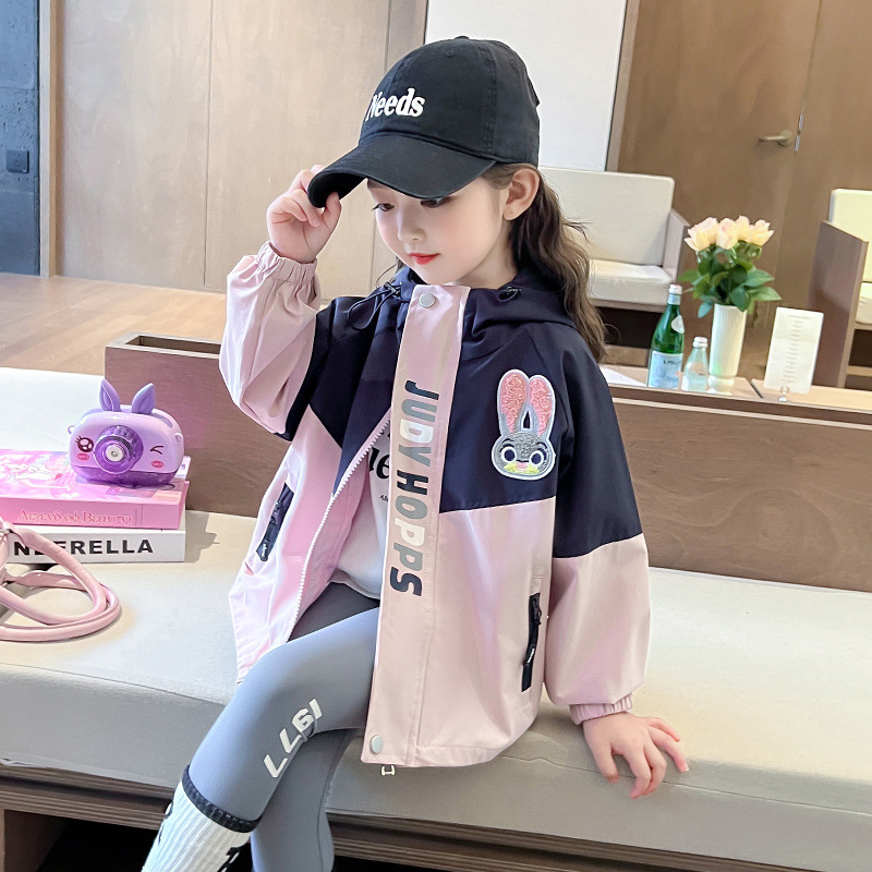 여아 만화 컬러블록 후드 재킷 2025 봄 신상 한국 스타일 재킷 인기 아동복 코트스토어 가기