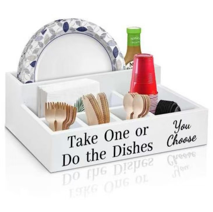 목재 일회용 종이컵 보관함 시골 야외 바베큐 양념 보관함 가정용 원목 식기 보관함