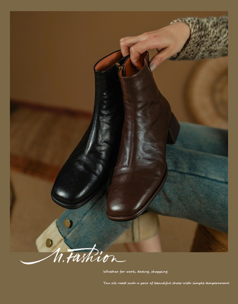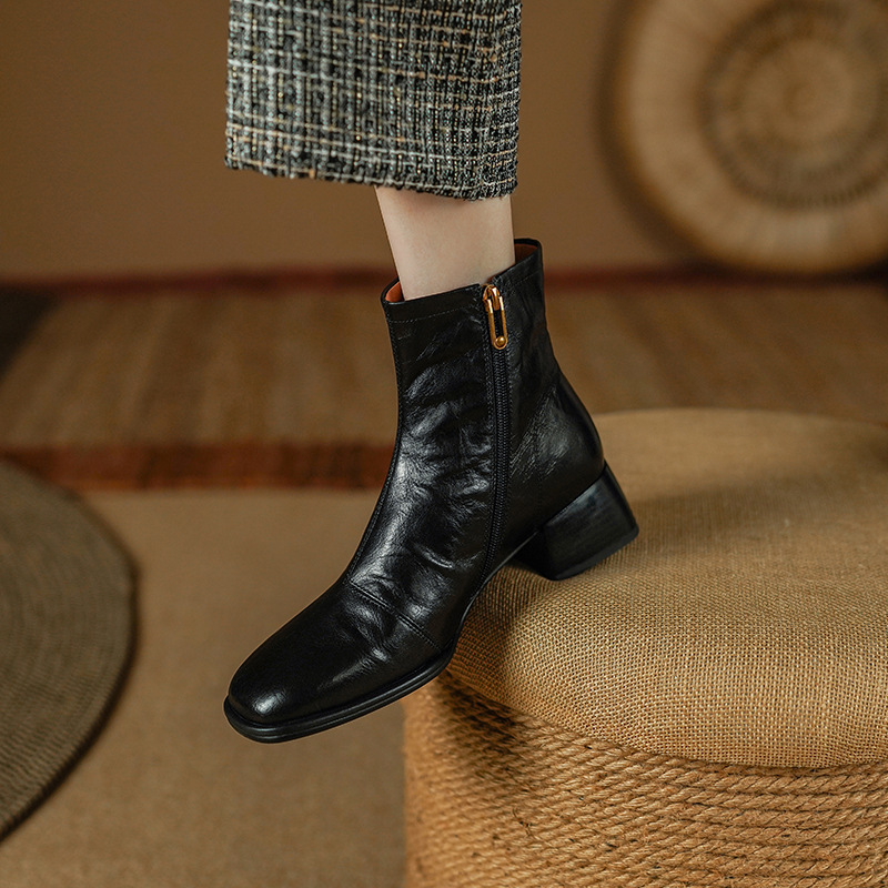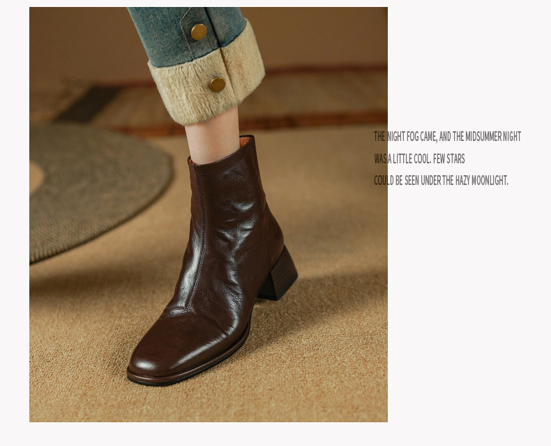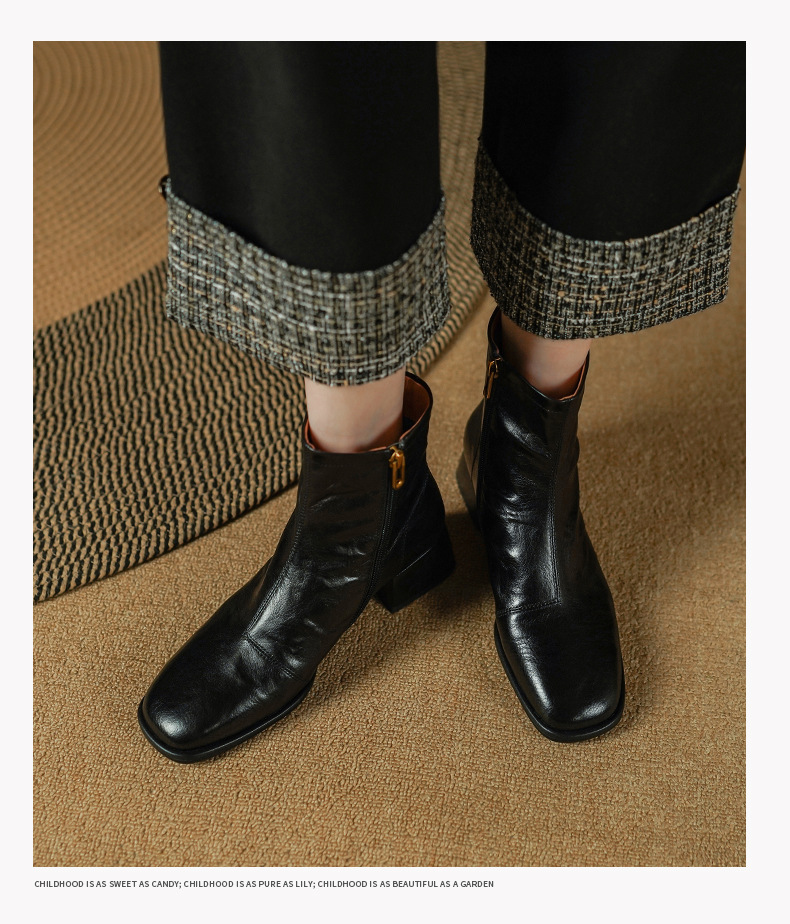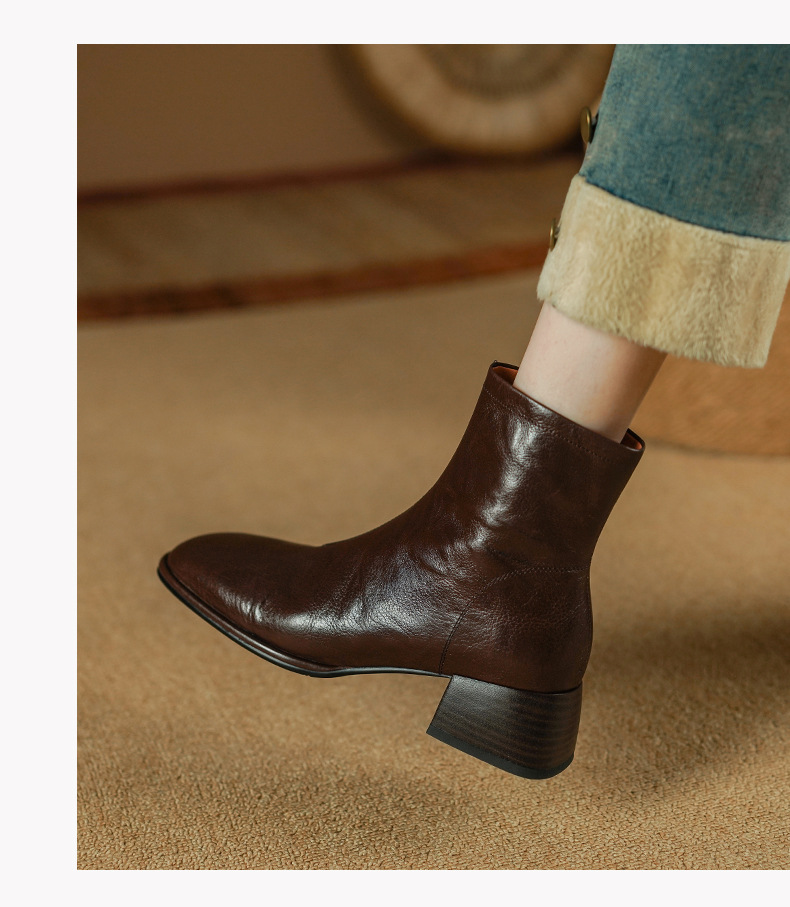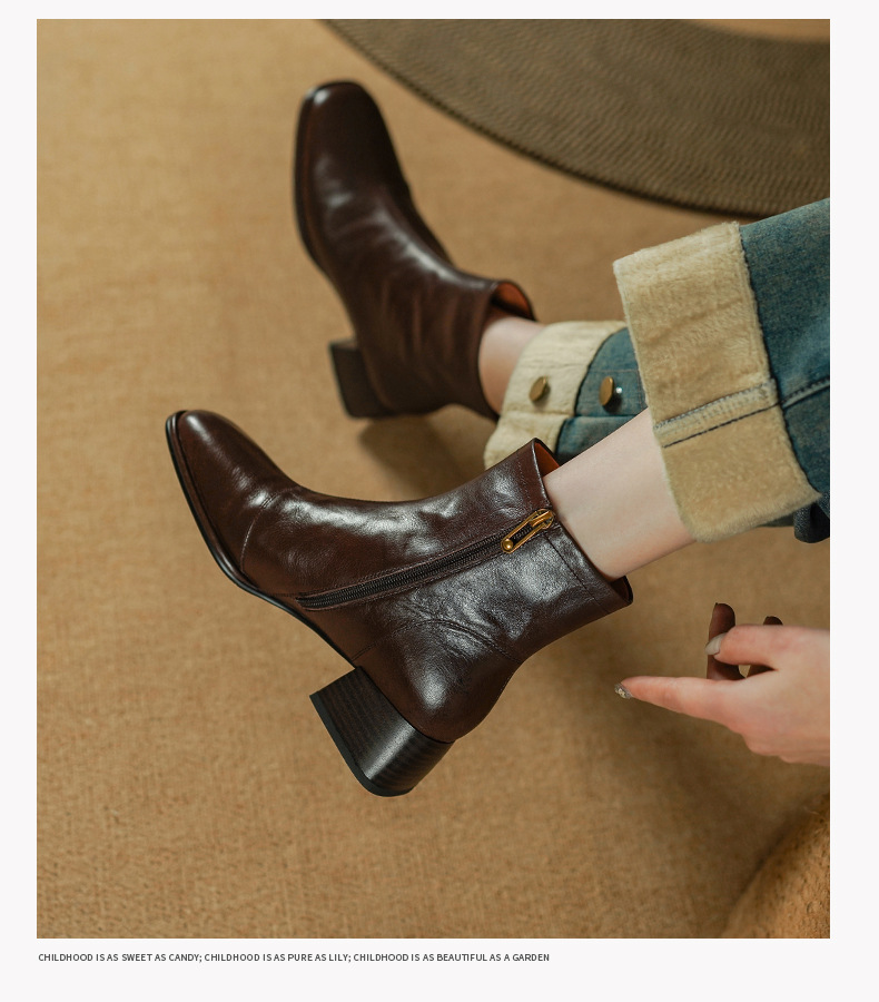 탑 레이어 태아 소가죽 내부 및 외부 풀 가죽 짧은 부츠 2024 봄과 가을 정품 가죽 마틴 부츠 두꺼운 발 뒤꿈치스토어 가기