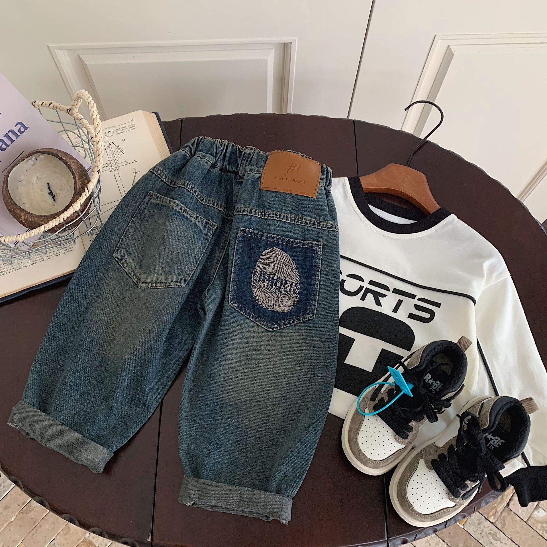 어린이 청바지 Bangcheng 2025 가을 소년의 새로운 지문 자수 캐주얼 바지 다목적 바지 조수 G0395스토어 가기