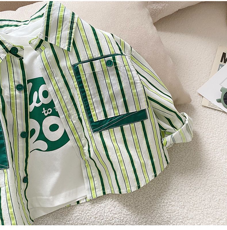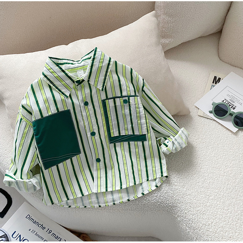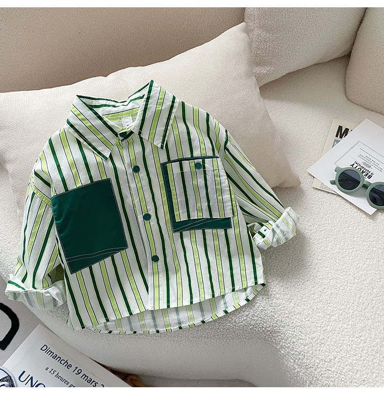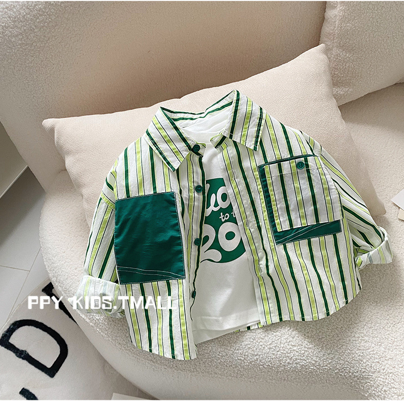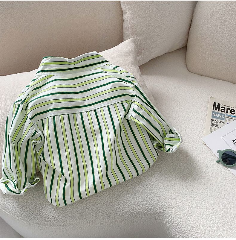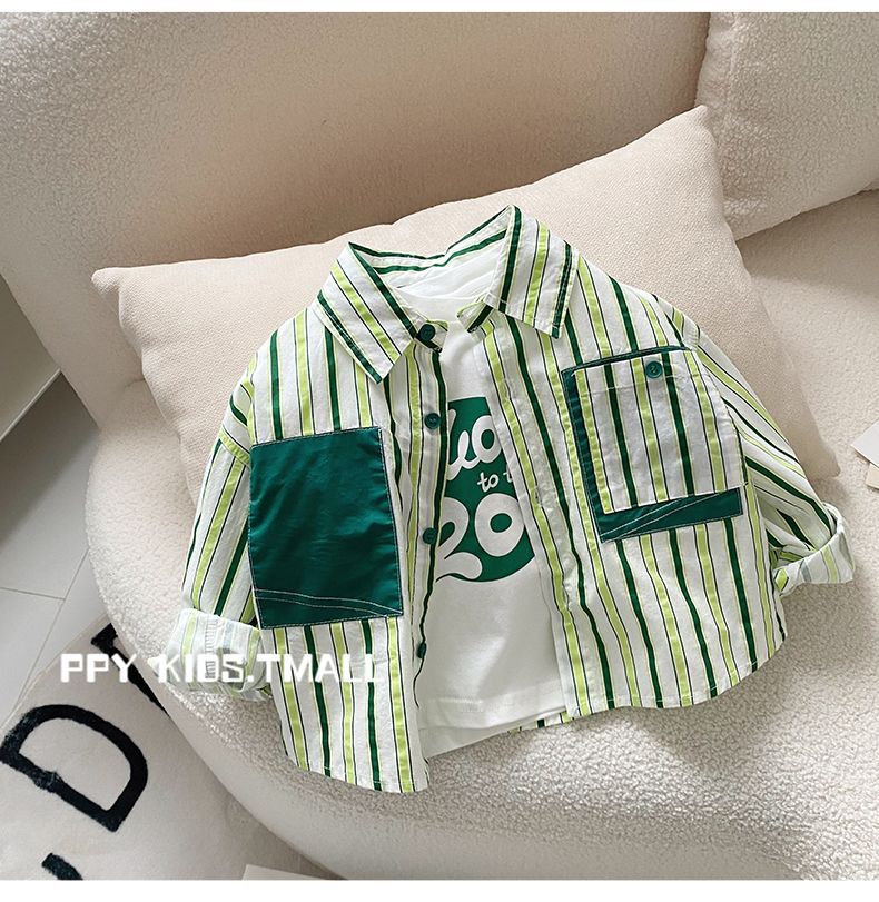 소년 셔츠 2025 봄 새로운 스타일 아동 코트 아기 긴팔 탑 아동 셔츠 봄, 가을 줄무늬 한국어 버전