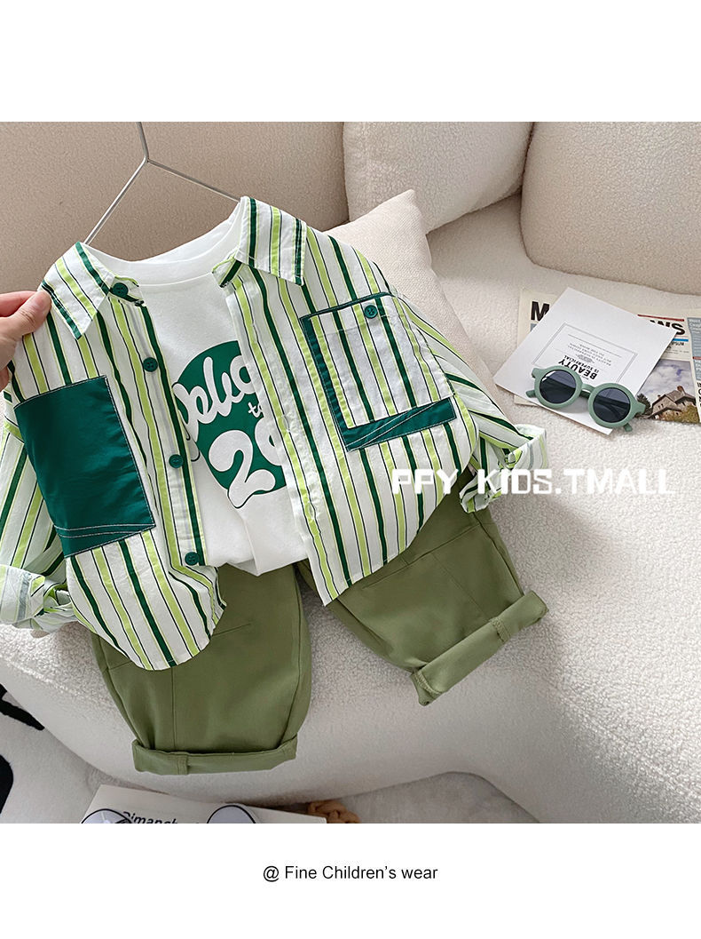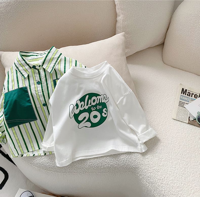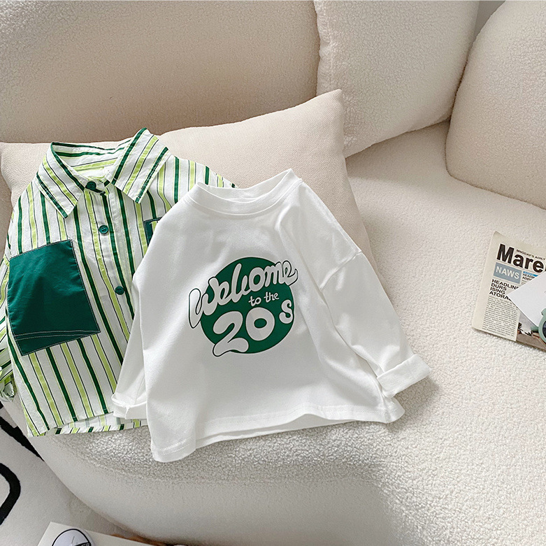 소년 셔츠 2025 봄 새로운 스타일 아동 코트 아기 긴팔 탑 아동 셔츠 봄, 가을 줄무늬 한국어 버전스토어 가기