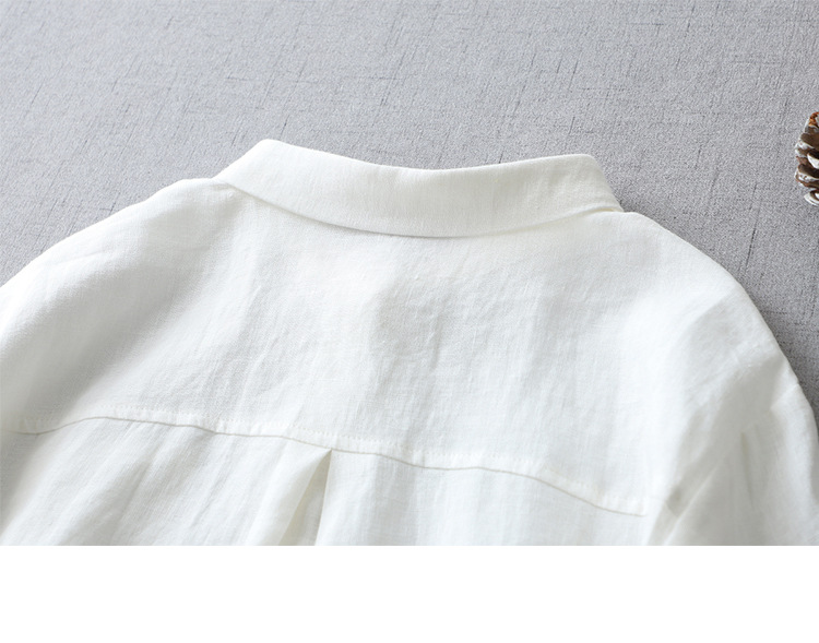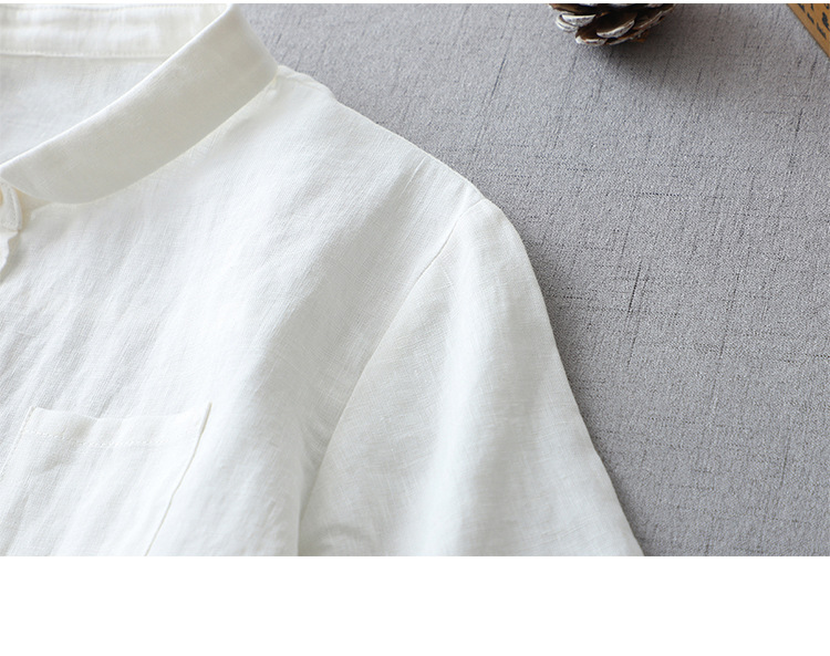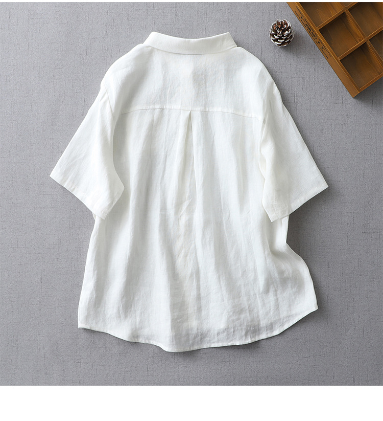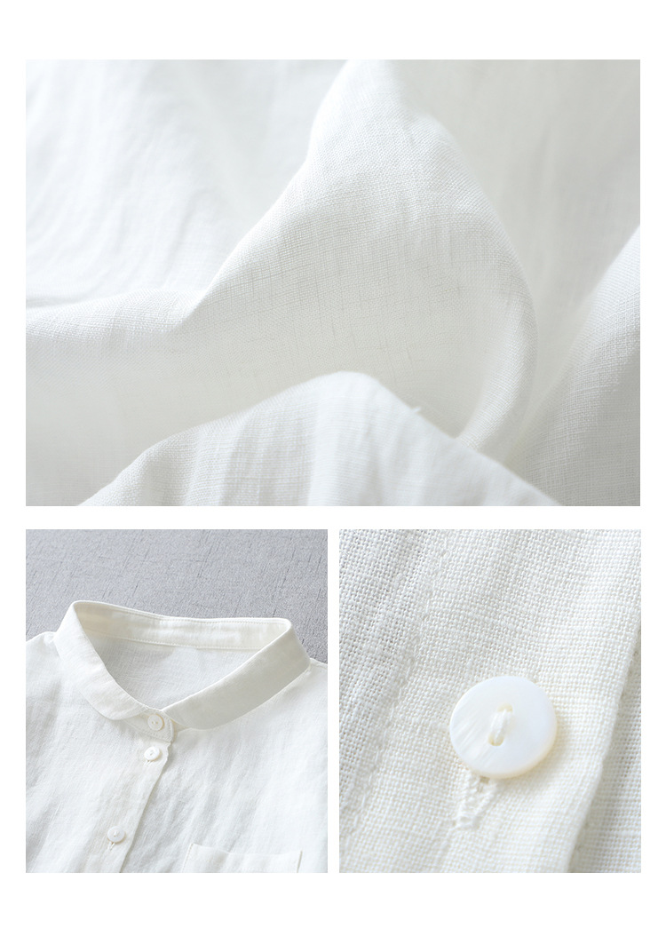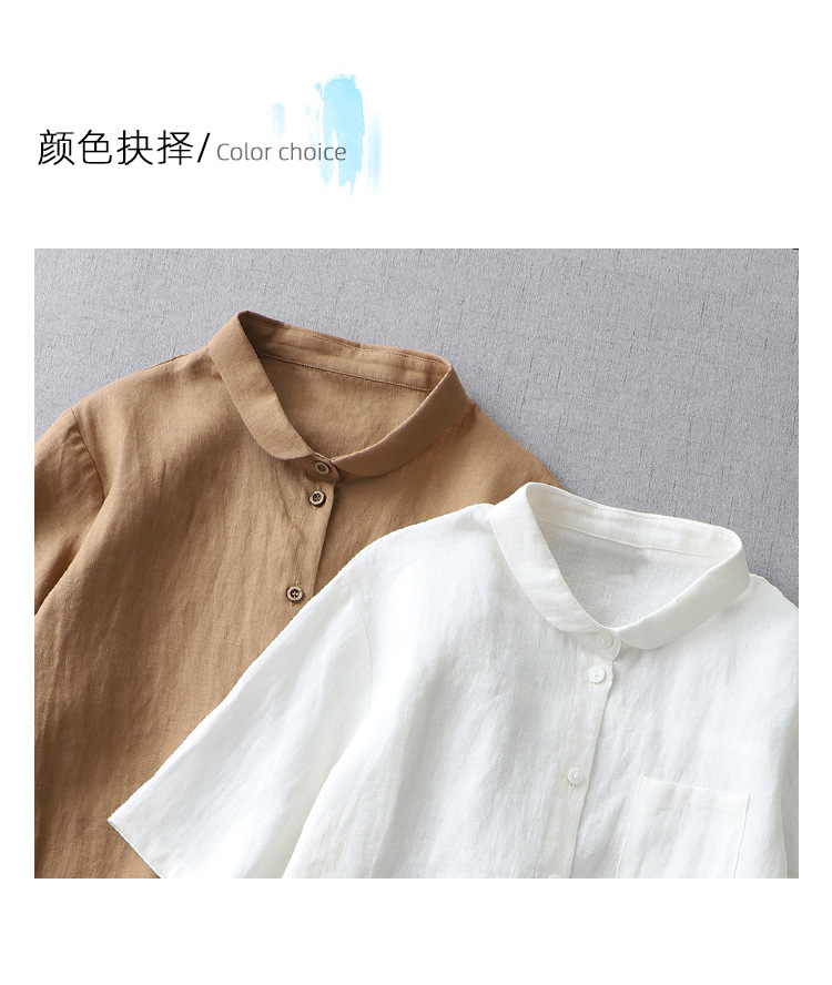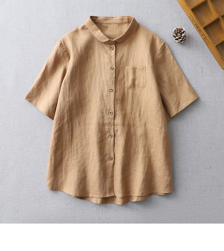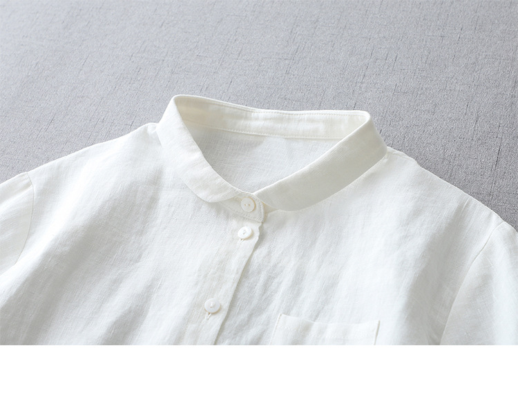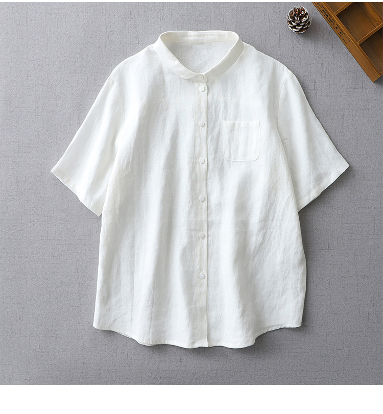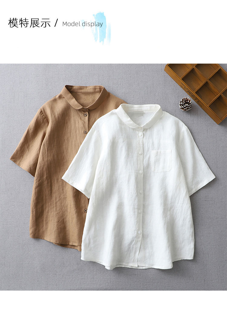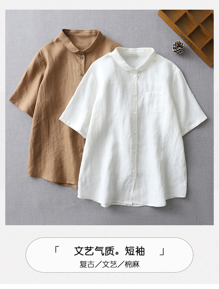 국경 간 봄과 여름 새로운면과 린넨 팬 옷깃 느슨한 플러스 사이즈 셔츠 복고풍 예술적 셔츠 여성용 슬림 모양 작은 셔츠 탑스토어 가기