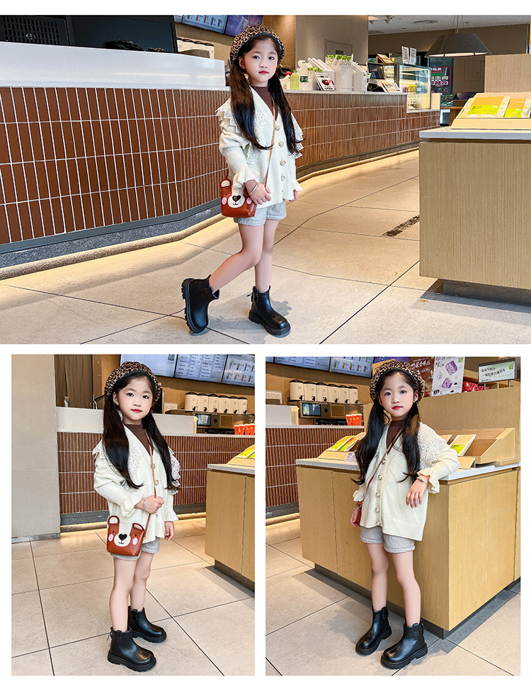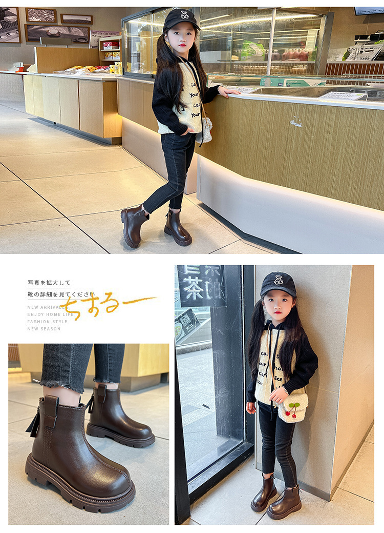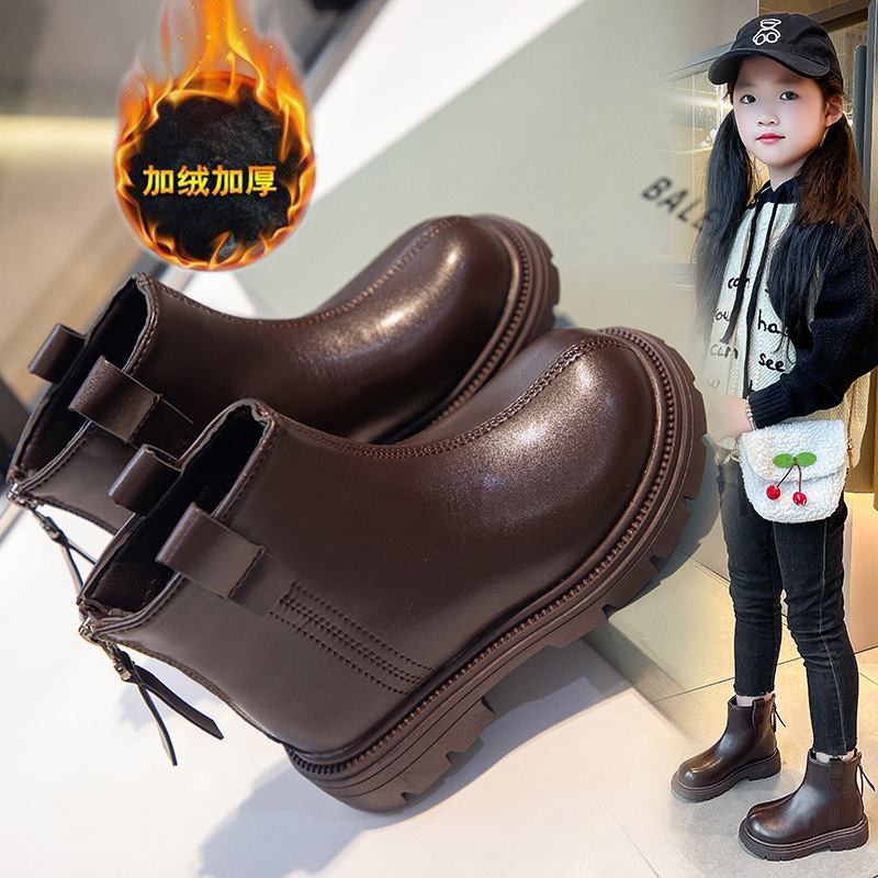 여자 신발 어린이 마틴 가죽 부츠 2025 가을, 겨울 새로운 스타일 공주 짧은 부츠 유행 어린 소녀 신발 dropshipping