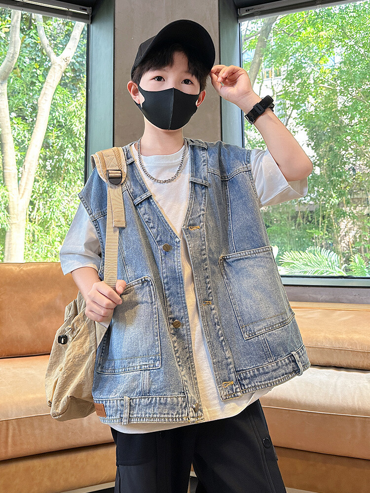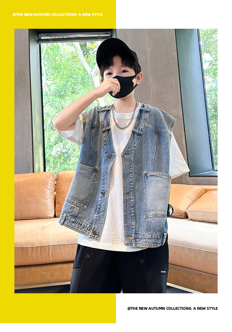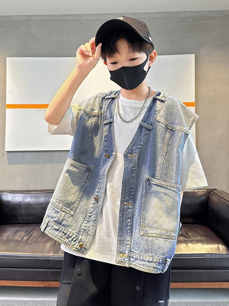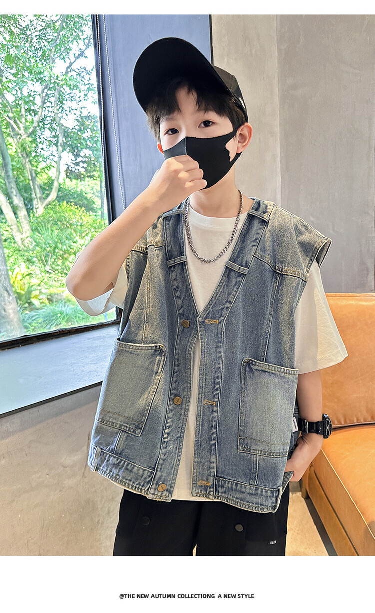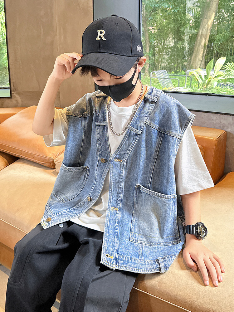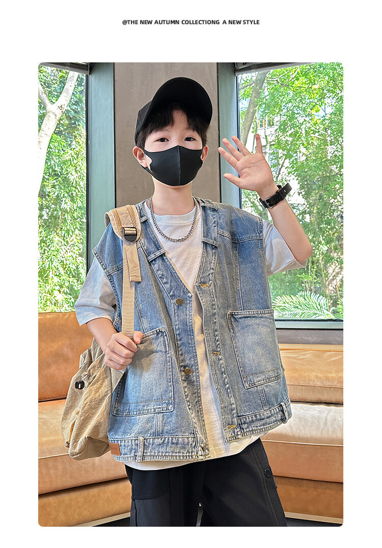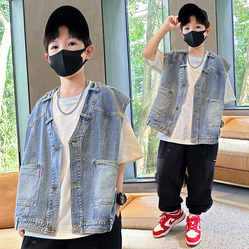 대외 무역 소년들의 트렌디 한 쿨소 조끼 빅 키즈 웨스턴 스타일 봄과 가을 올 매치 탑을위한 세련된 민소매 작업복 조끼스토어 가기