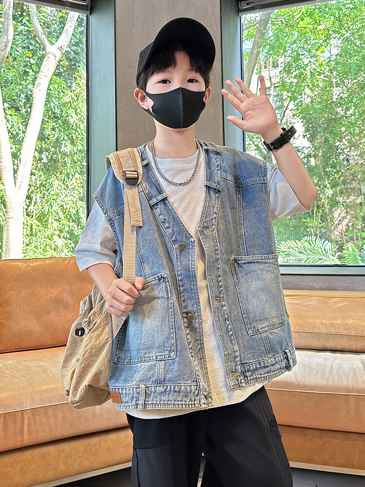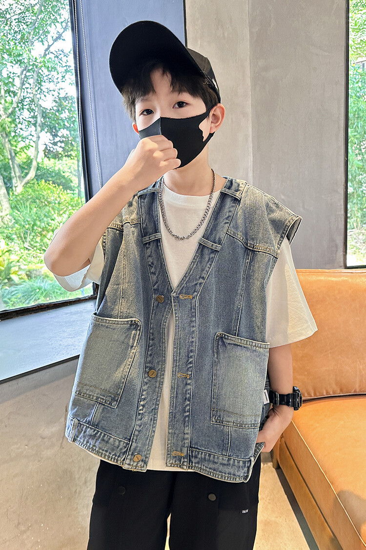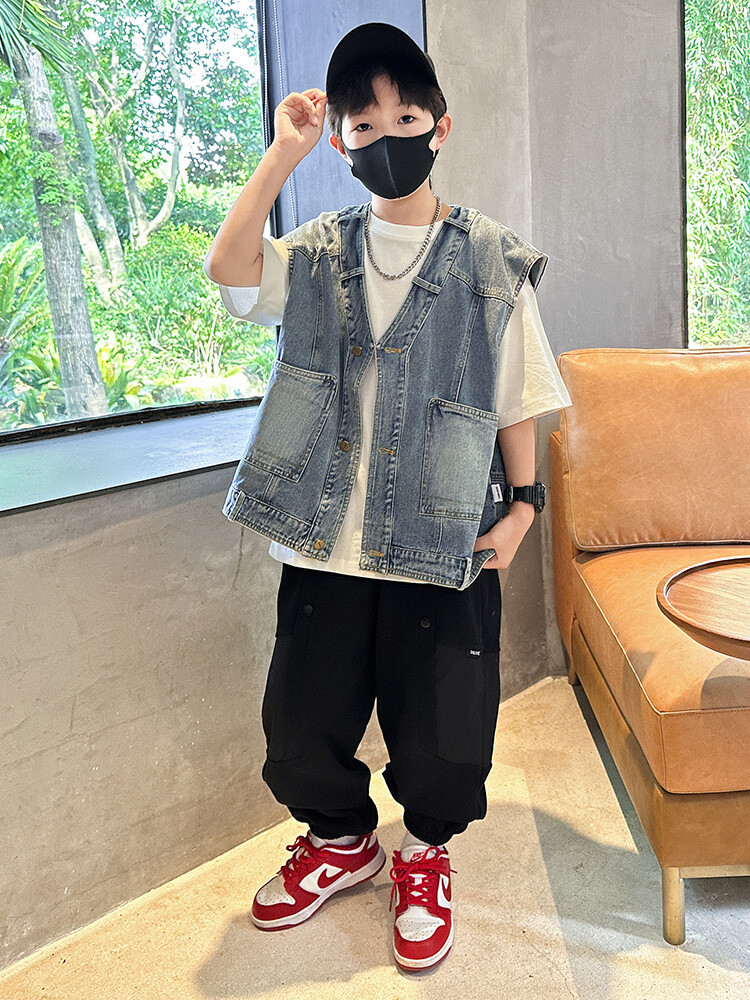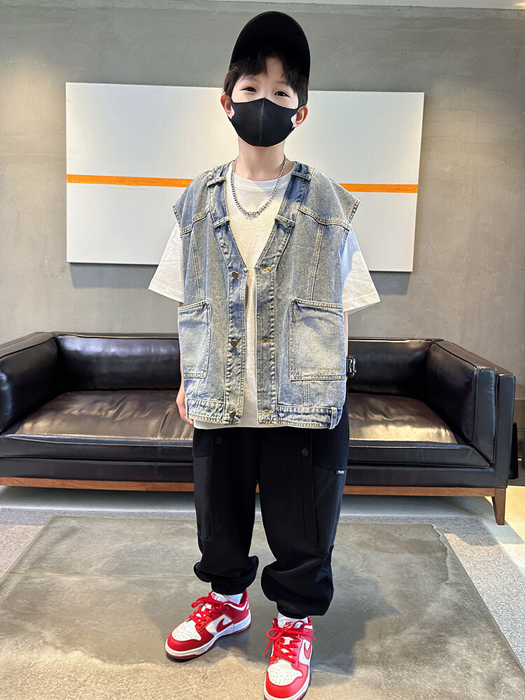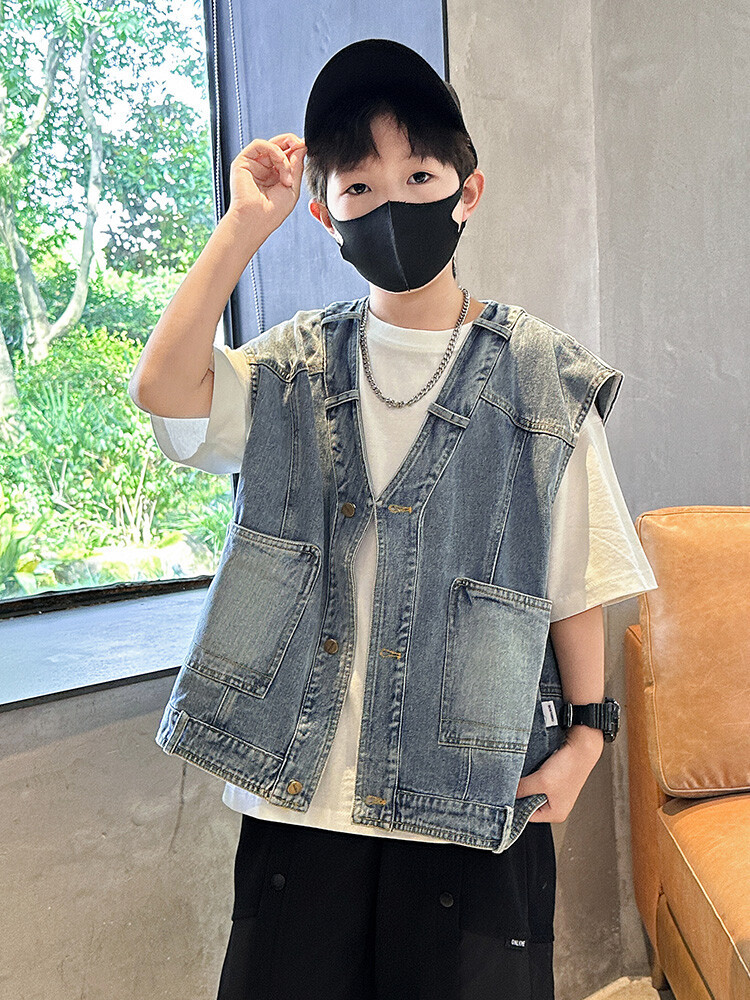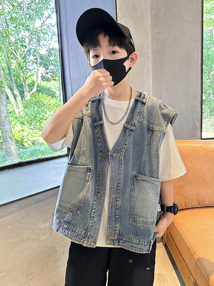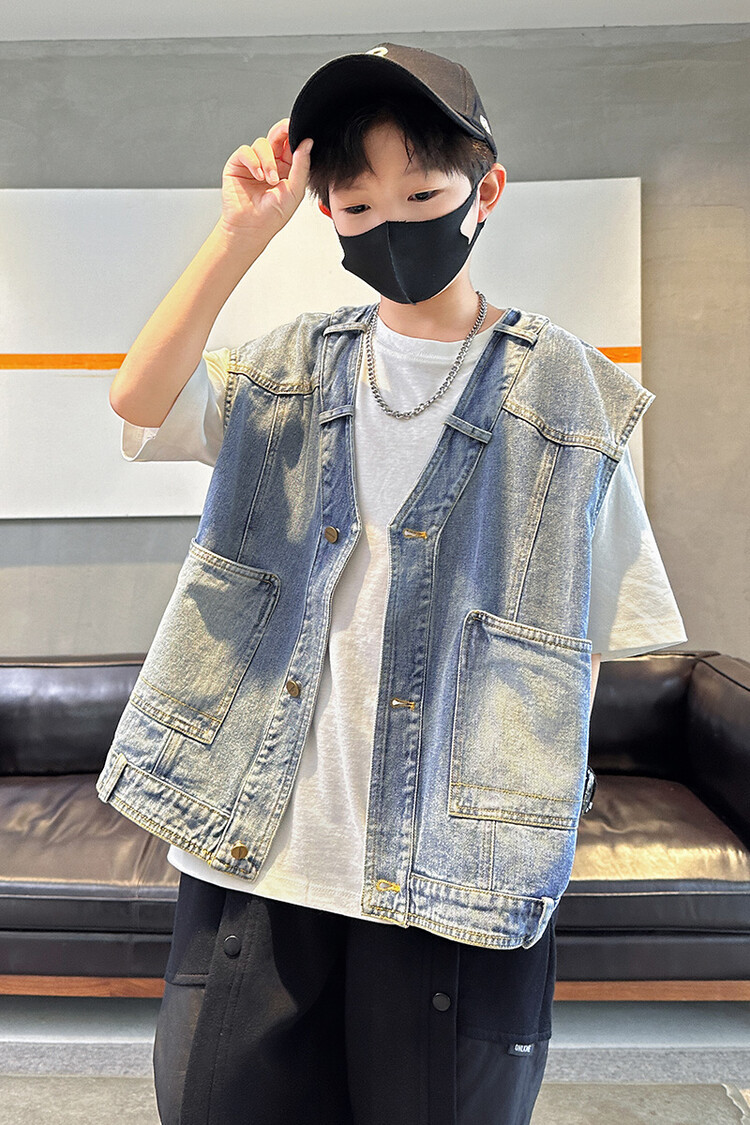 대외 무역 소년들의 트렌디 한 쿨소 조끼 빅 키즈 웨스턴 스타일 봄과 가을 올 매치 탑을위한 세련된 민소매 작업복 조끼스토어 가기