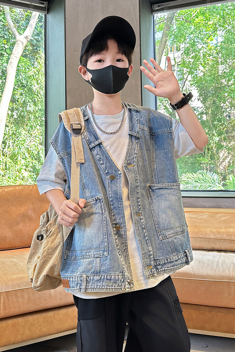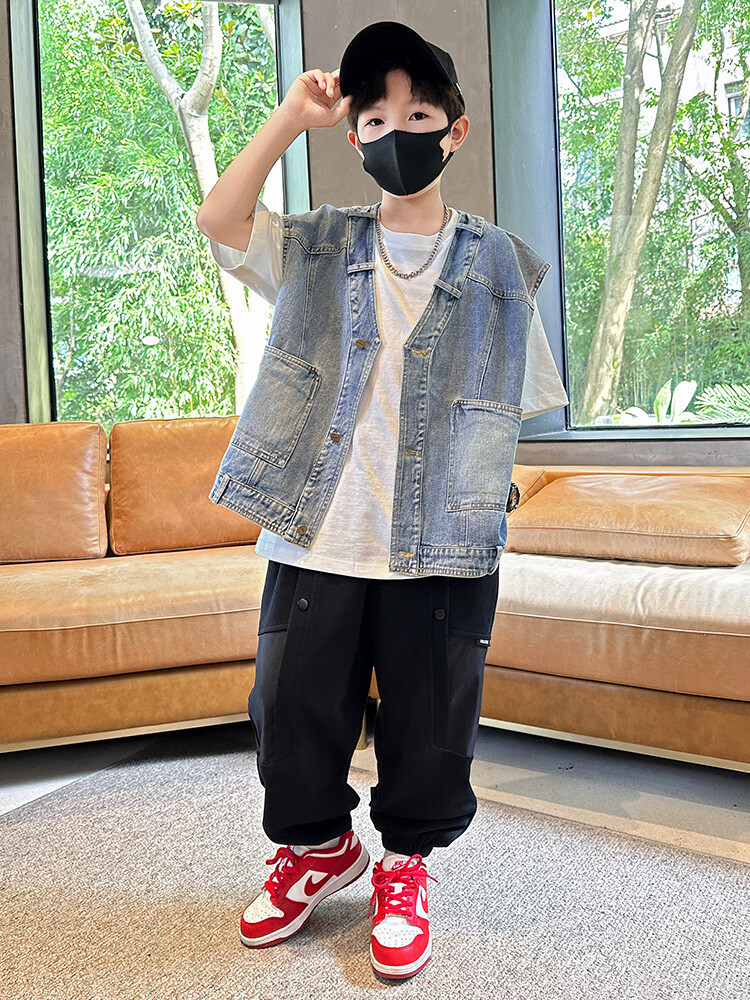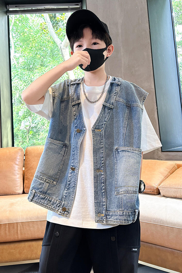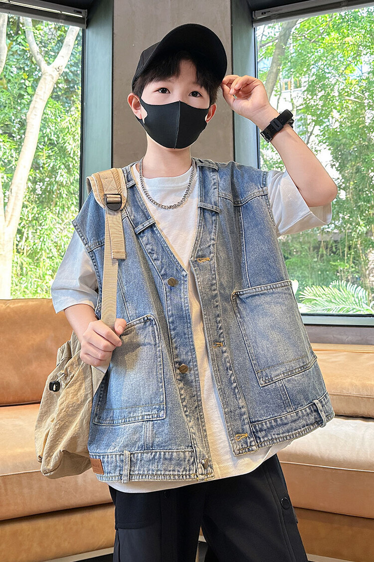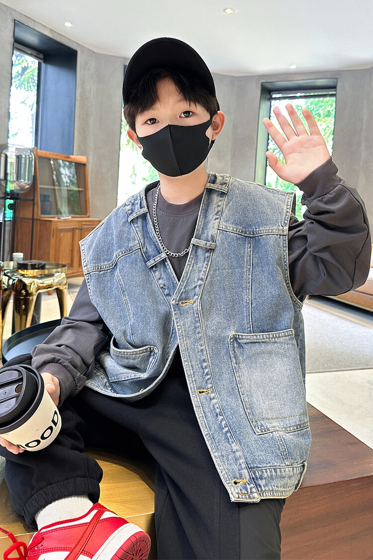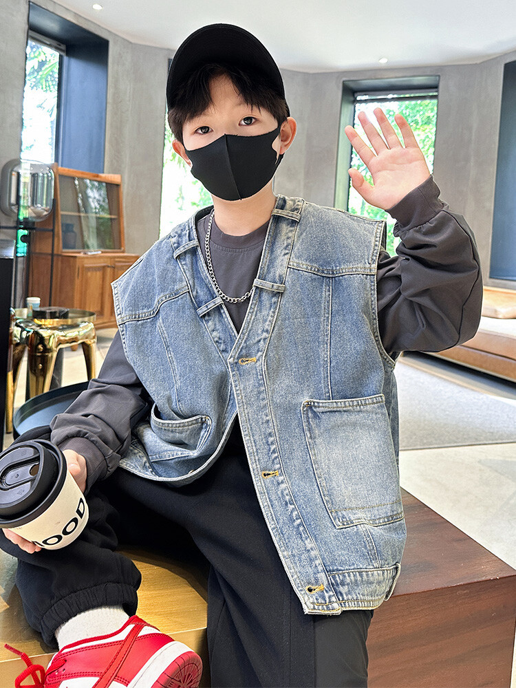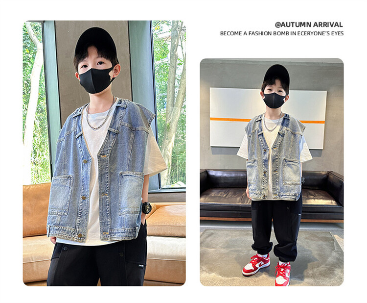 대외 무역 소년들의 트렌디 한 쿨소 조끼 빅 키즈 웨스턴 스타일 봄과 가을 올 매치 탑을위한 세련된 민소매 작업복 조끼스토어 가기