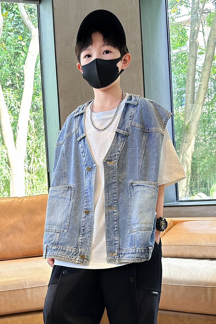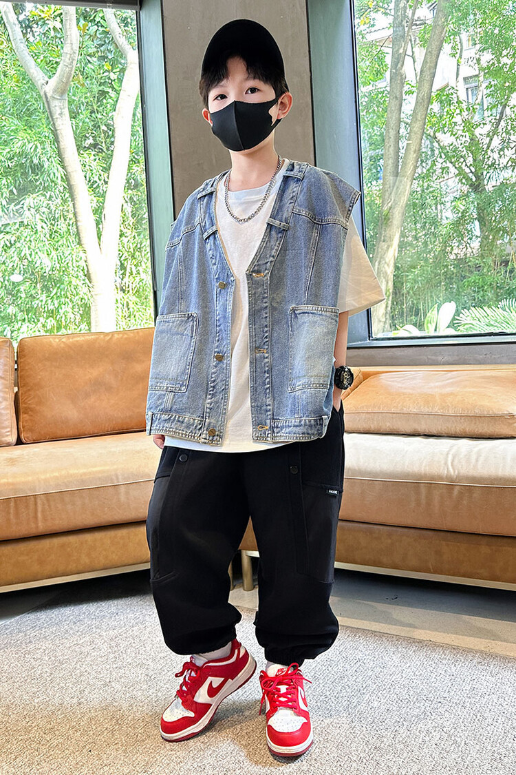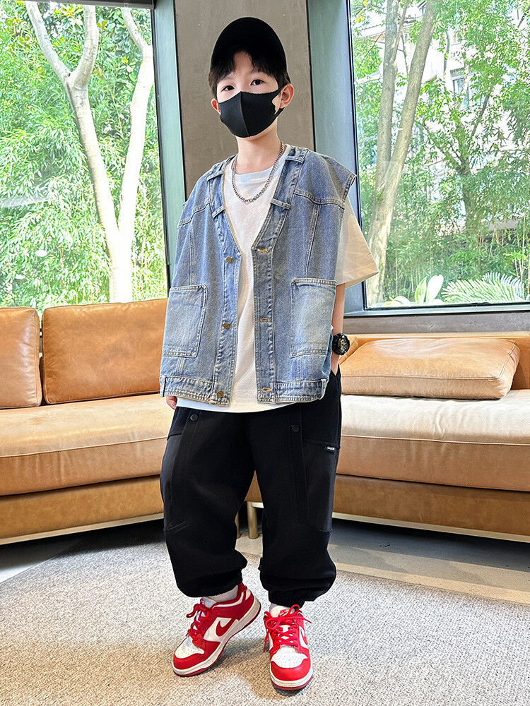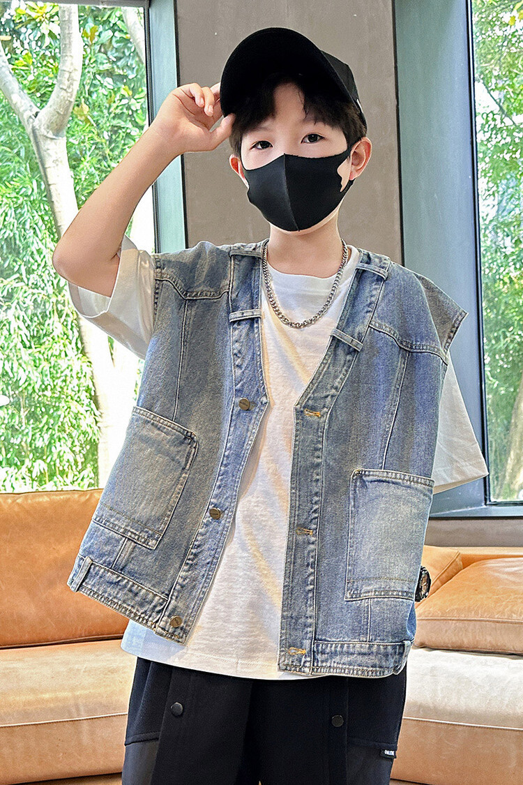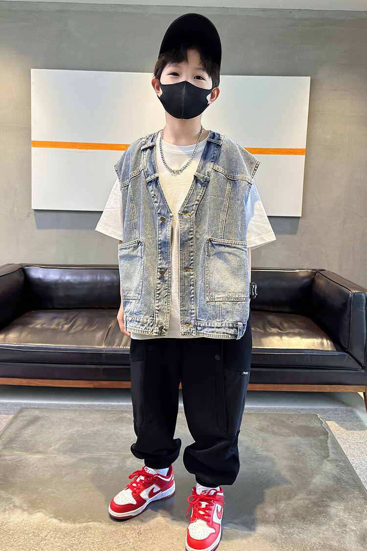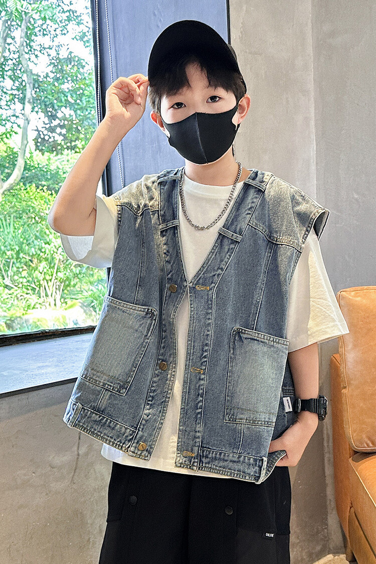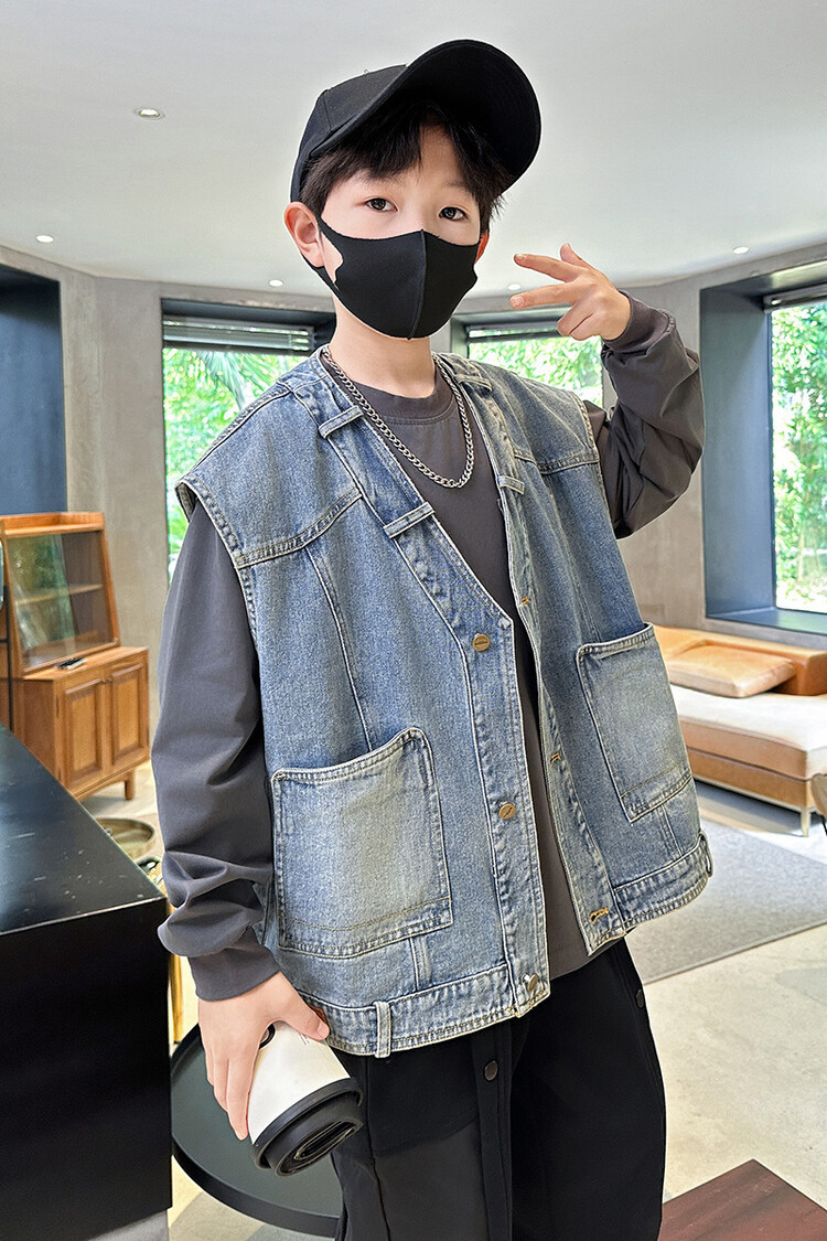 대외 무역 소년들의 트렌디 한 쿨소 조끼 빅 키즈 웨스턴 스타일 봄과 가을 올 매치 탑을위한 세련된 민소매 작업복 조끼스토어 가기