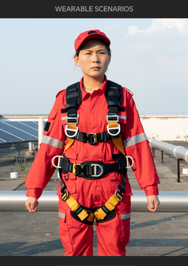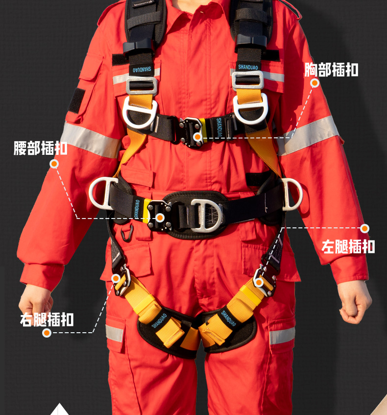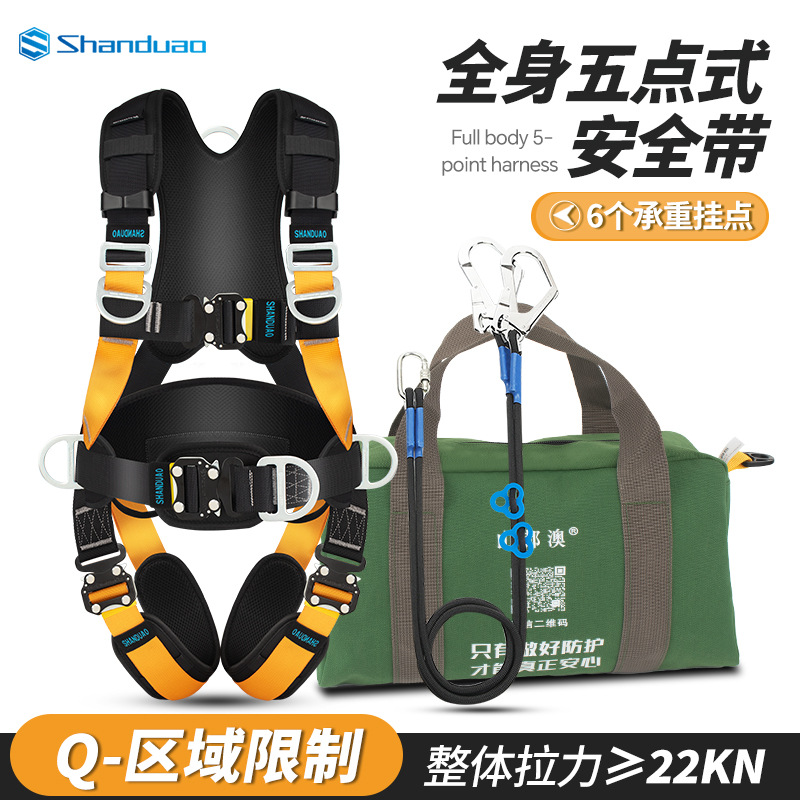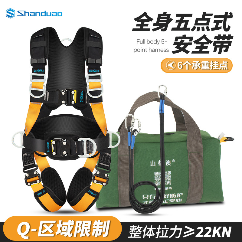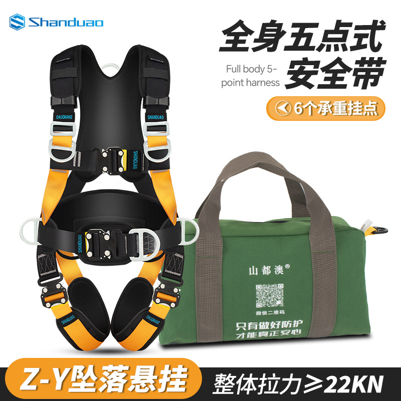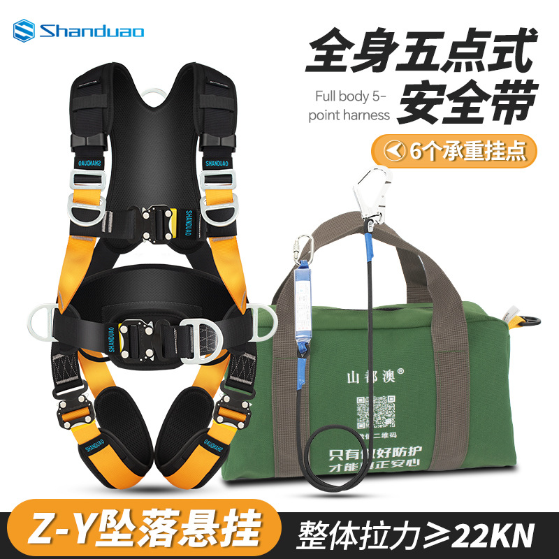 5 점 전신 안전 벨트 공중 작업 ZY 떨어지는 서스펜션 암벽 등반 보호 안전 로프 세트 GB스토어 가기