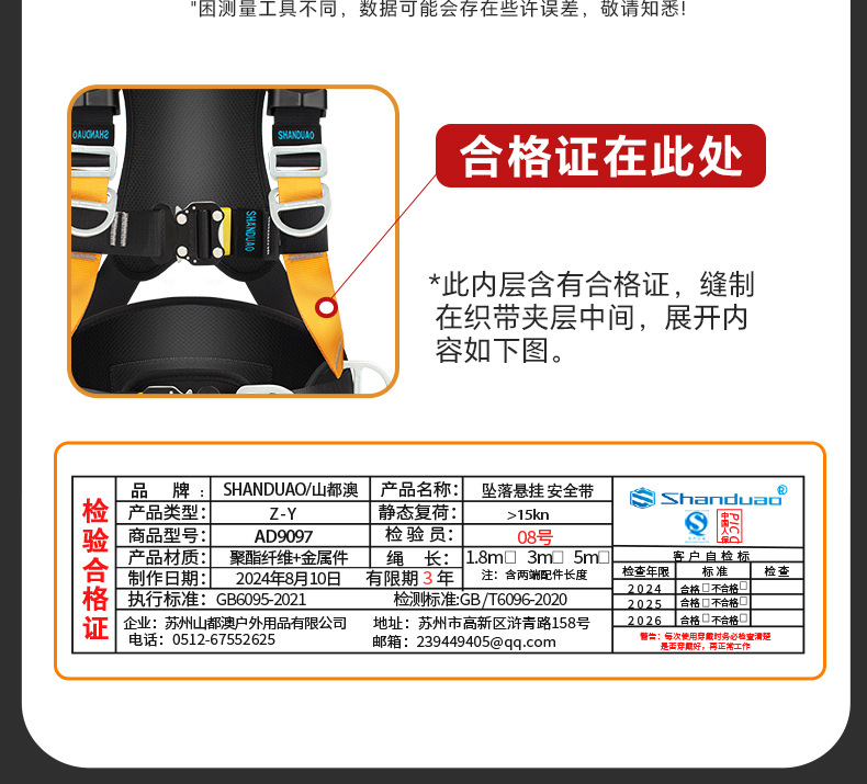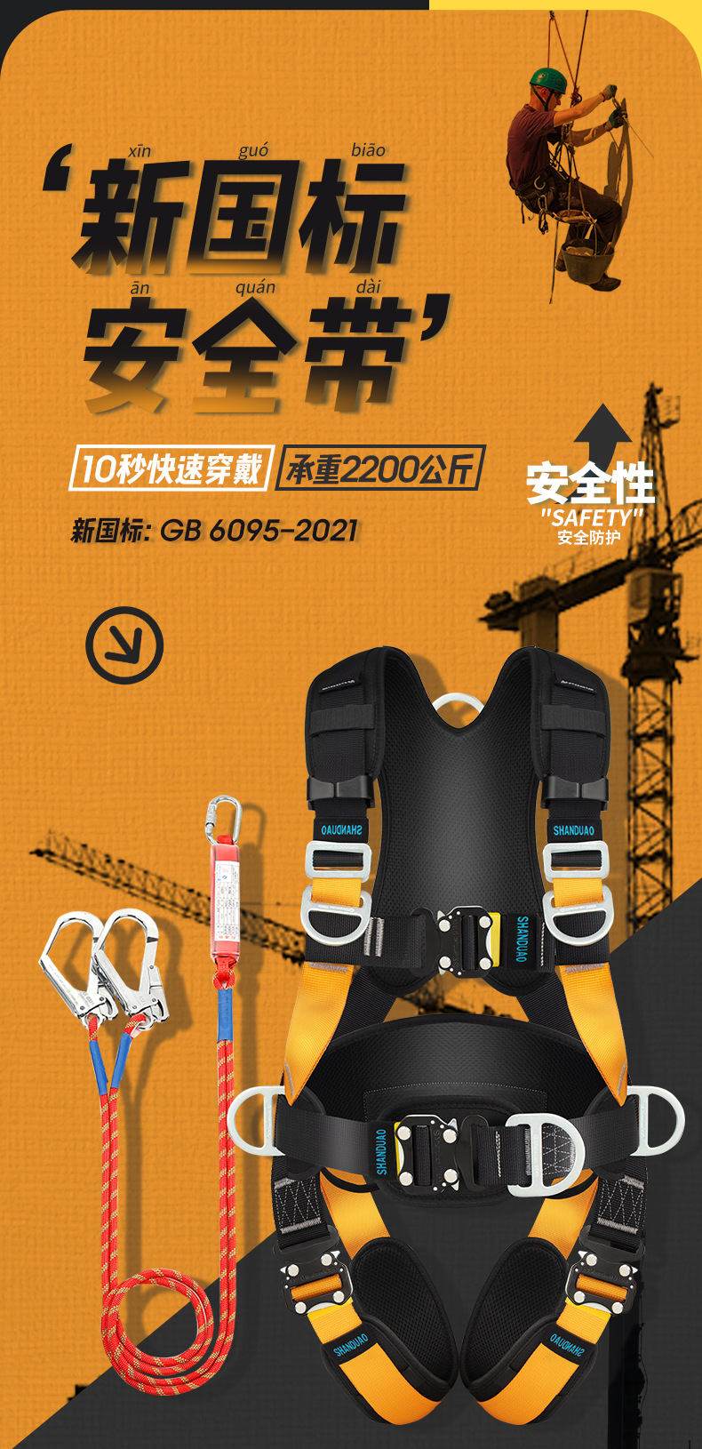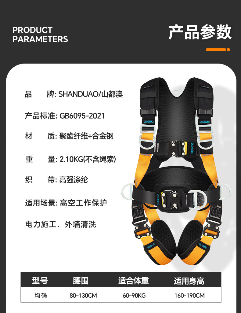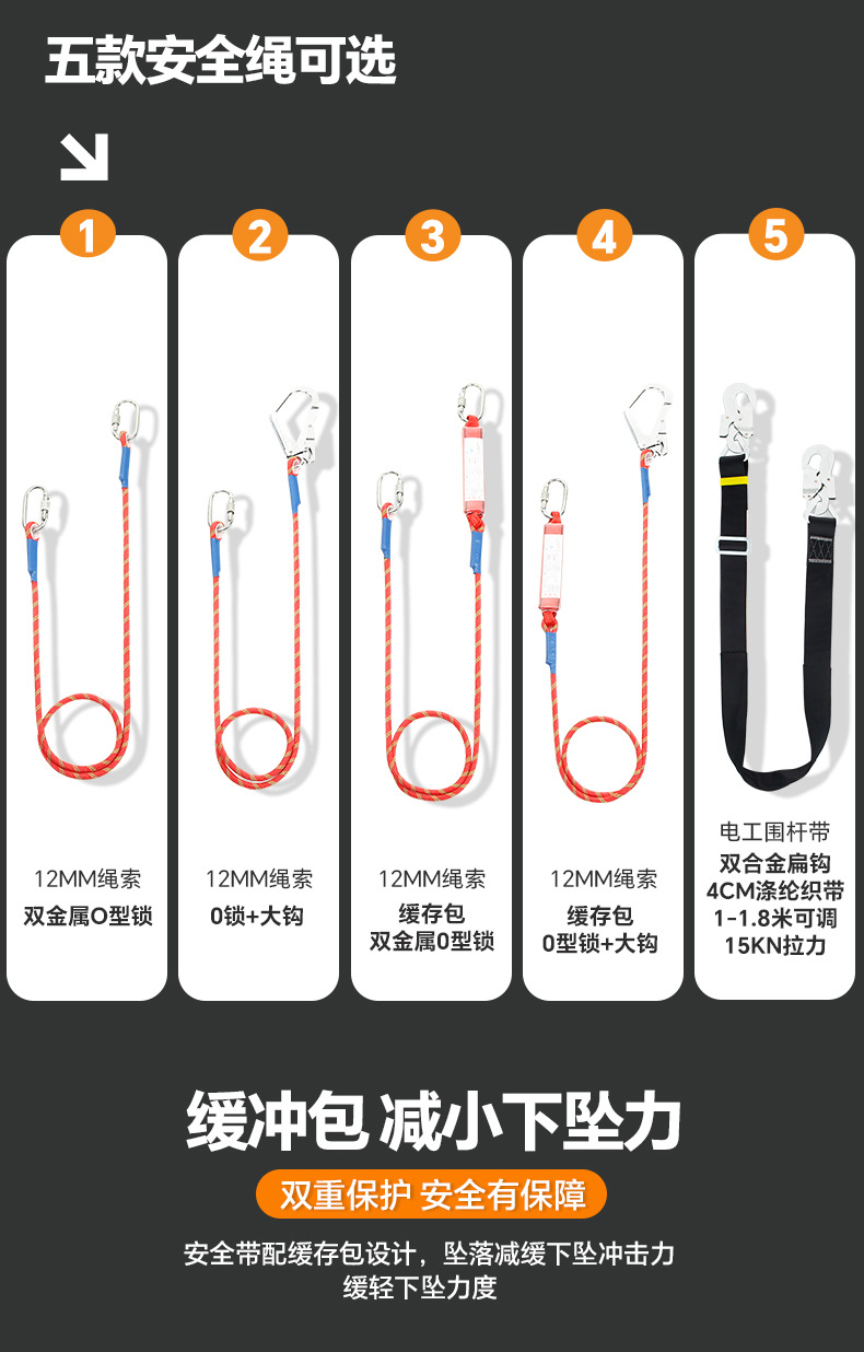 5 점 전신 안전 벨트 공중 작업 ZY 떨어지는 서스펜션 암벽 등반 보호 안전 로프 세트 GB스토어 가기
