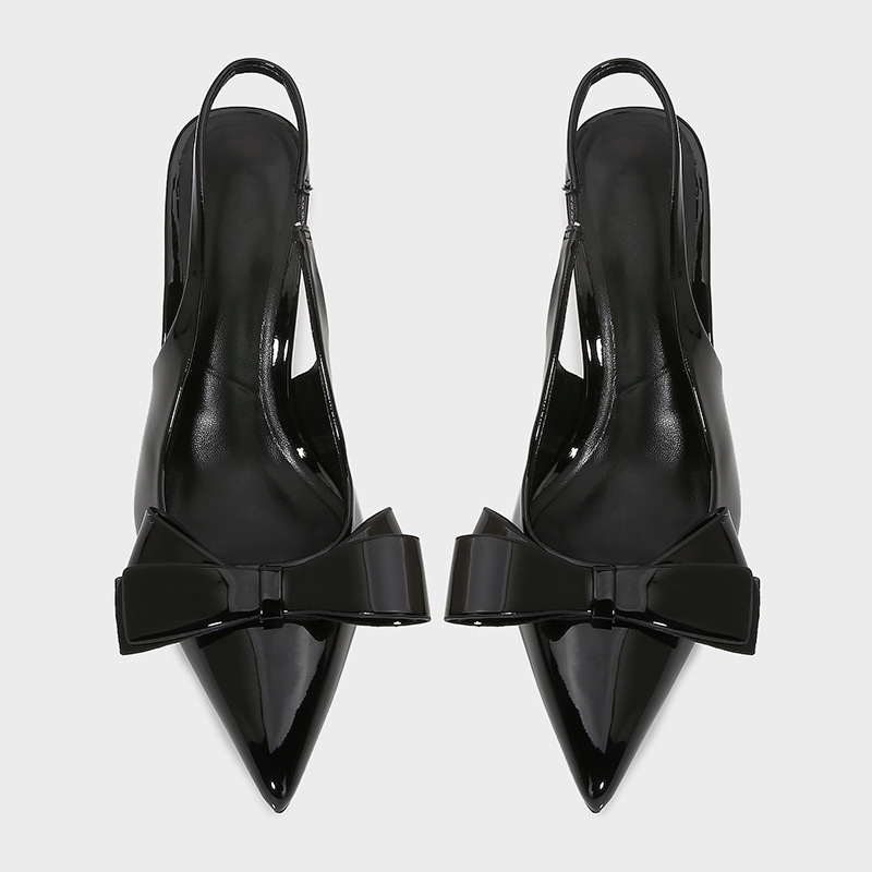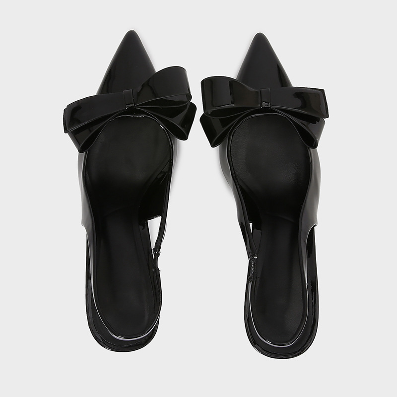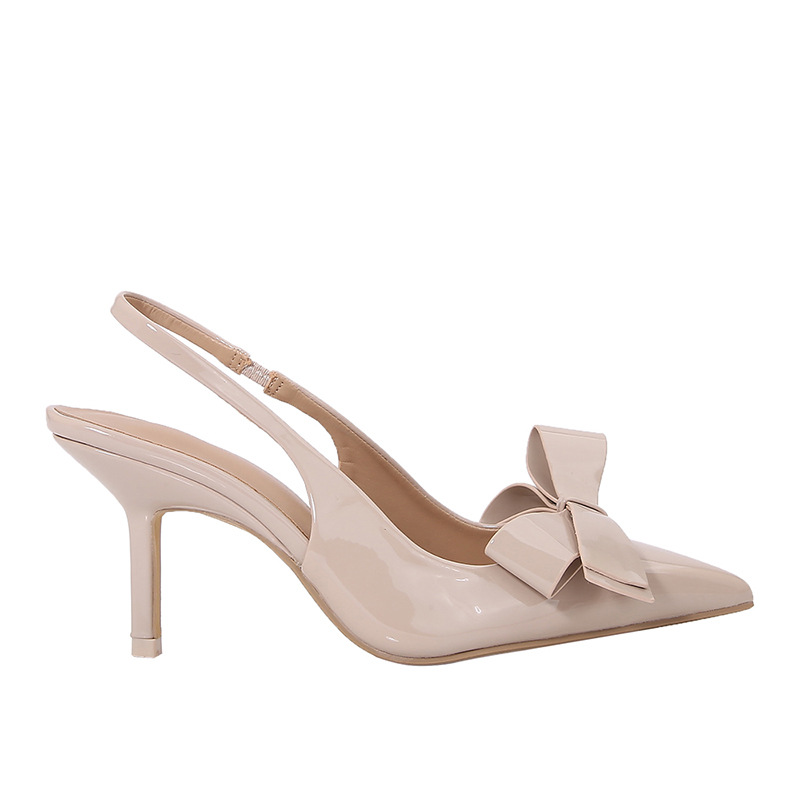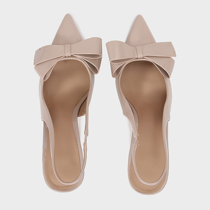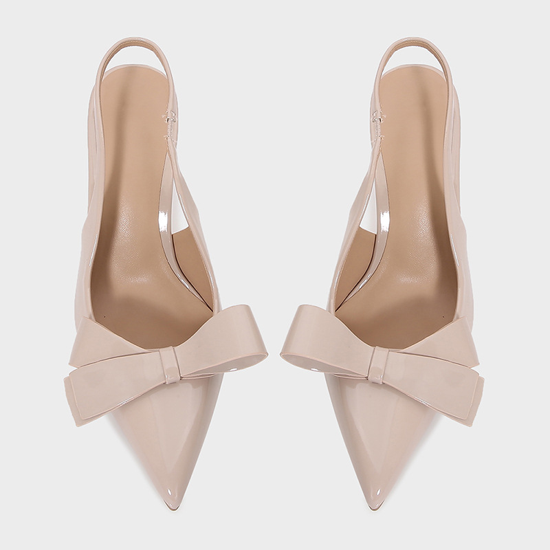 ZA2025 봄 새로운 여성 신발 베이지 나비 듀 힐 뮬러 신발 뾰족한 얕은 특허 가죽 싱글 신발스토어 가기