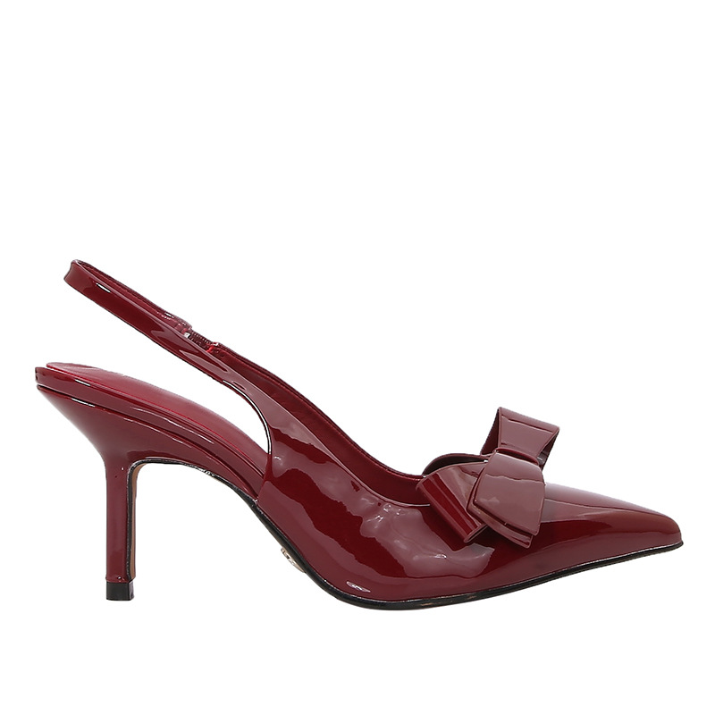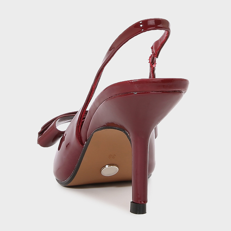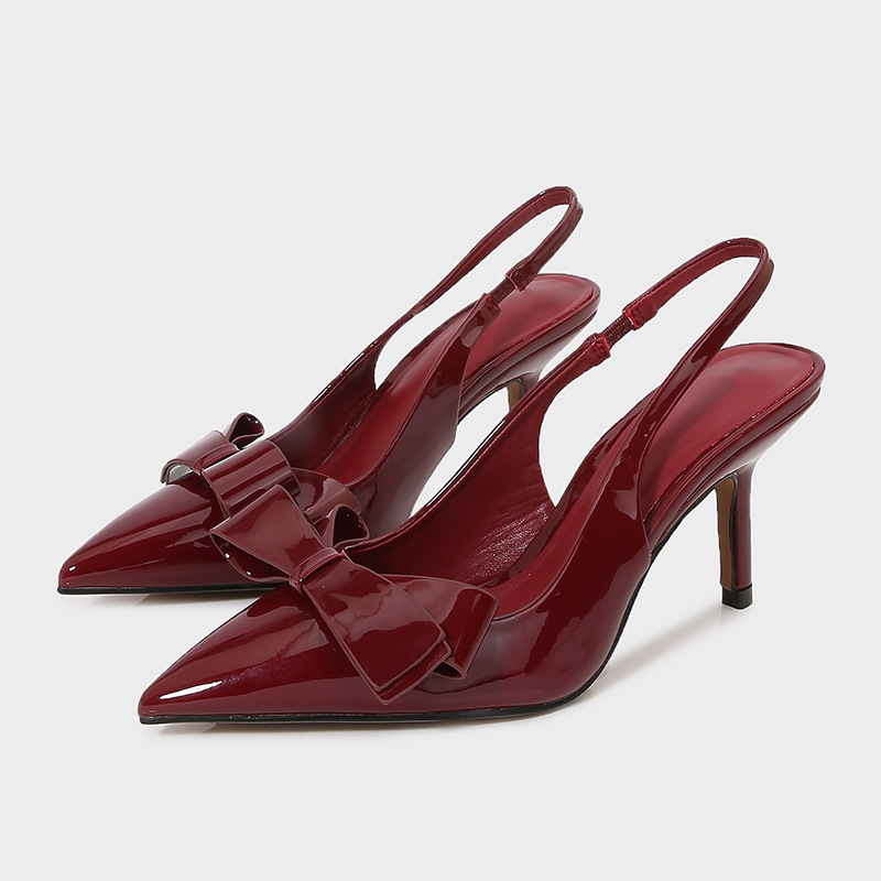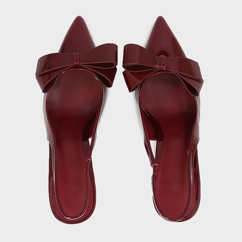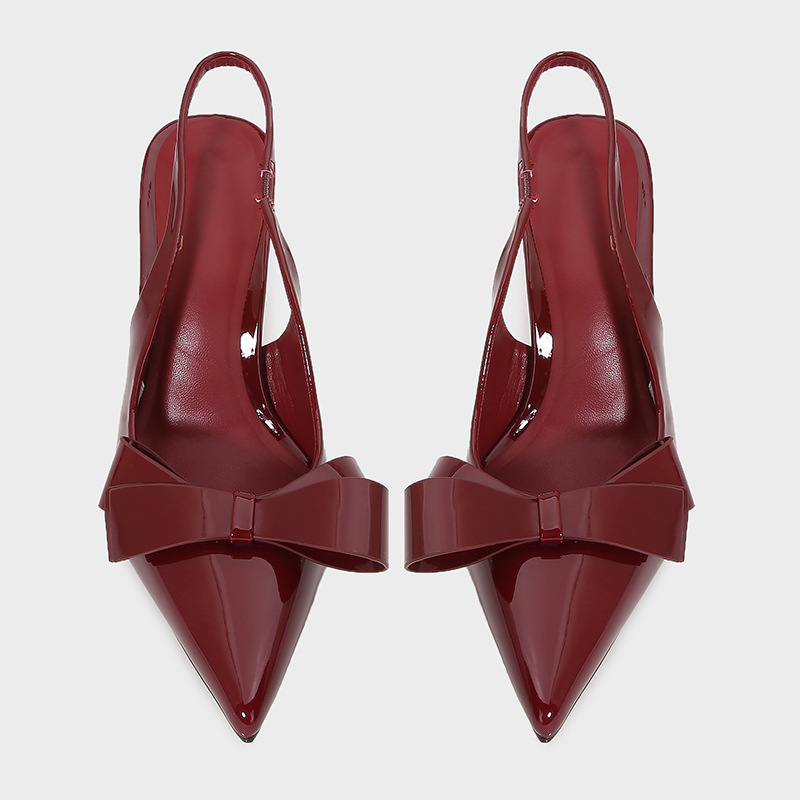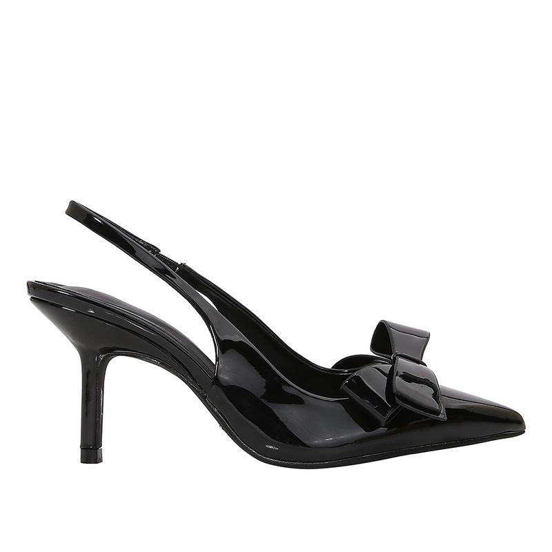 ZA2025 봄 새로운 여성 신발 베이지 나비 듀 힐 뮬러 신발 뾰족한 얕은 특허 가죽 싱글 신발스토어 가기