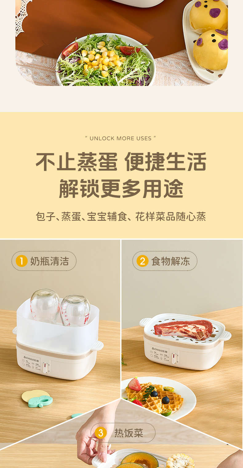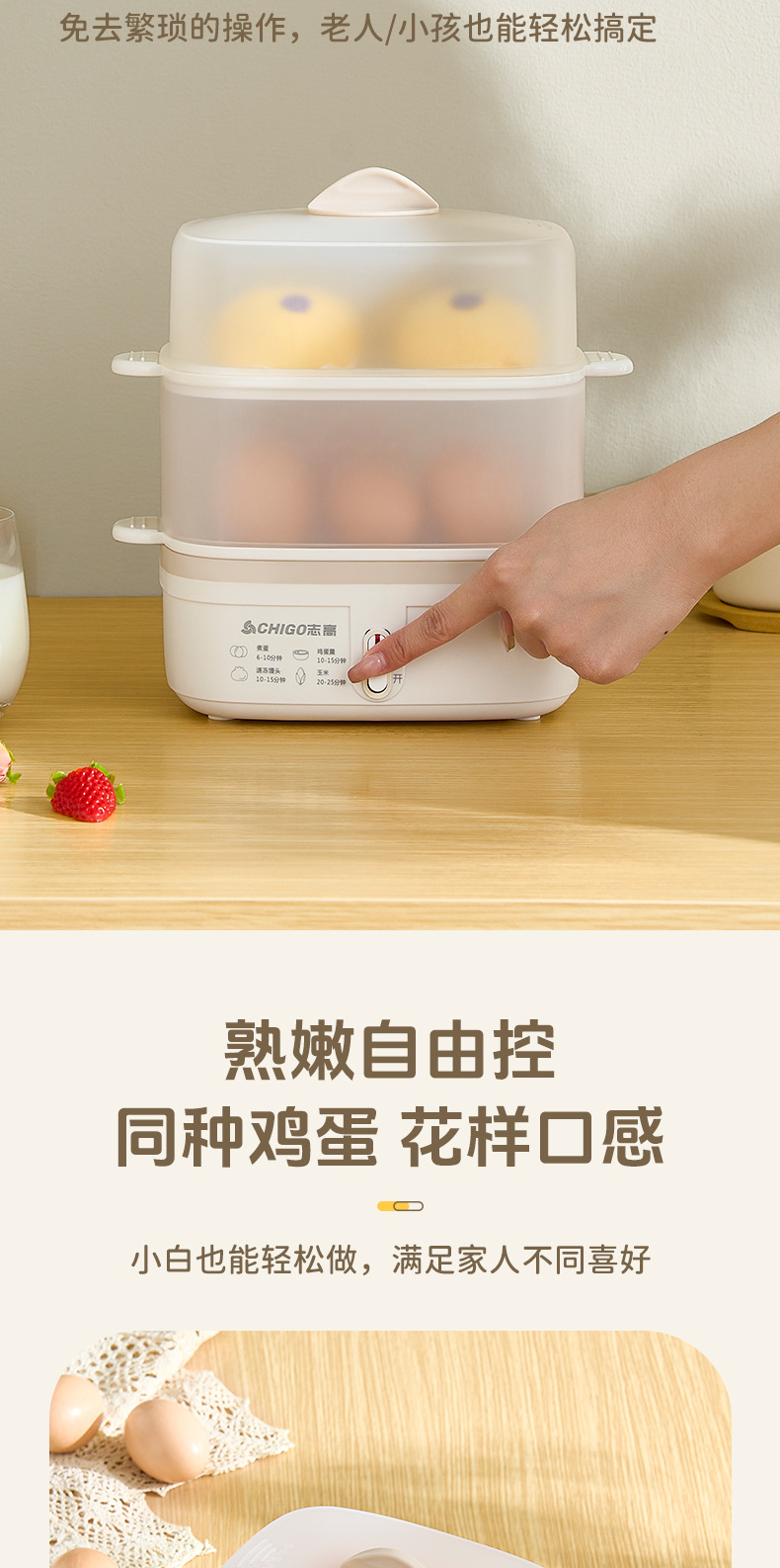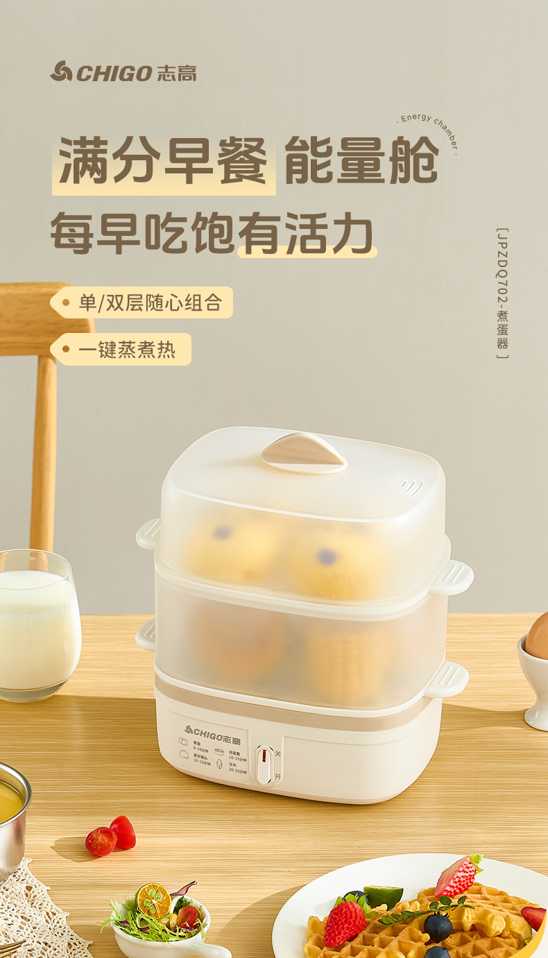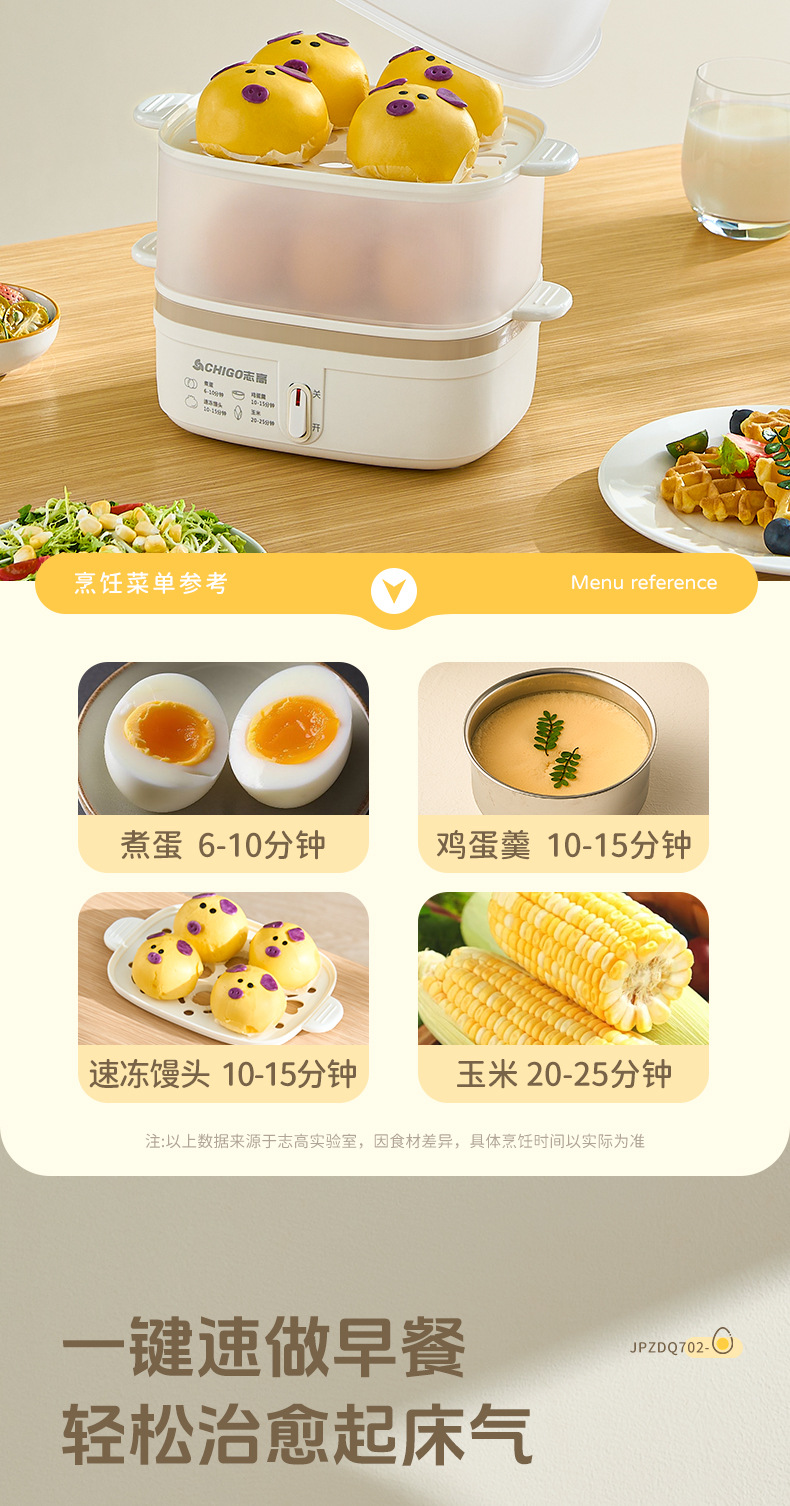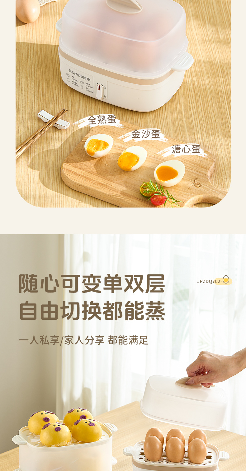지아오 에그쿠커 자동 전원 차단 가정용 기숙사 아침식사 기계 계란찜 이중 스팀 에그쿠커 저전력 아침식사 기기스토어 가기