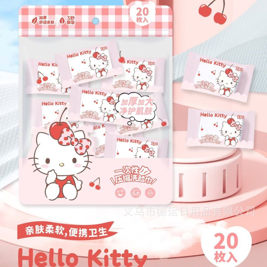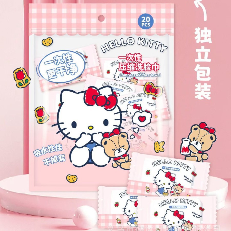 산리오 정품 일회용 압축 타월 여행용 휴대용 만화 세안 타월 개별 포장 순면 부드러운 타월 도매