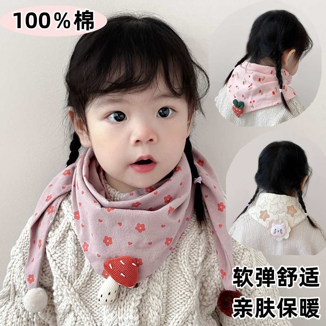아기의 스카프 가을과 겨울 한국 스타일 만화 순면 아기의 삼각형 스카프 영유아를위한 겨울 방풍 스카프스토어 가기