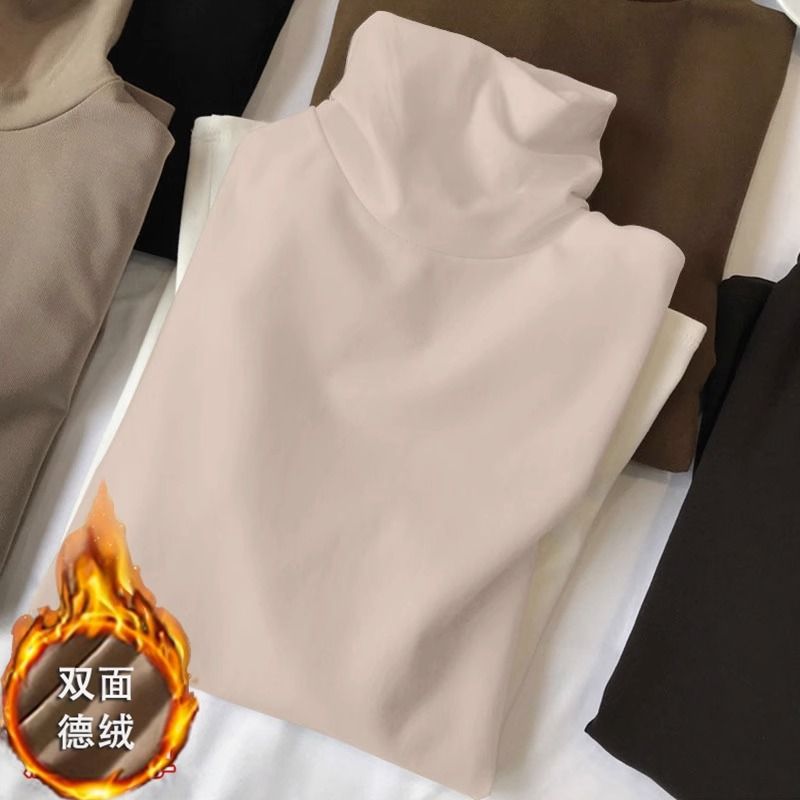 데롱 하이넥 이너웨어 여성용 단색 가을 겨울 슬림 핏 학생용 긴팔 티셔츠 여성용 트렌디 겨울 신상품스토어 가기