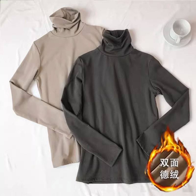 데롱 하이넥 이너웨어 여성용 단색 가을 겨울 슬림 핏 학생용 긴팔 티셔츠 여성용 트렌디 겨울 신상품
