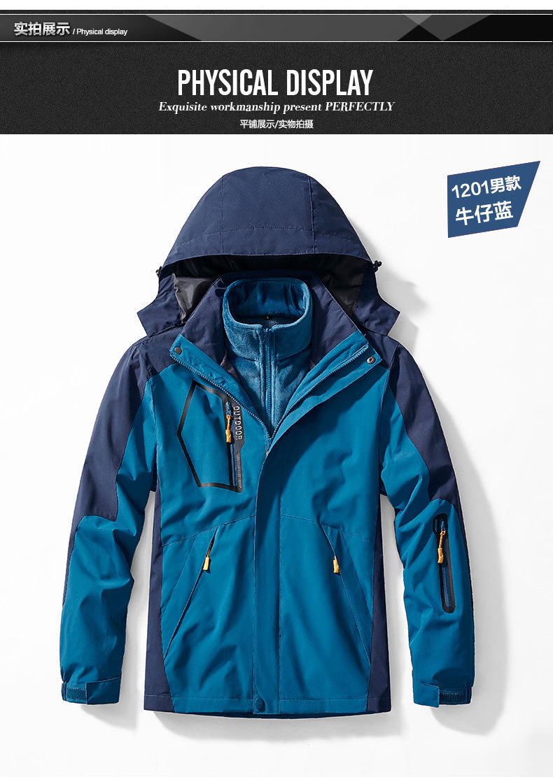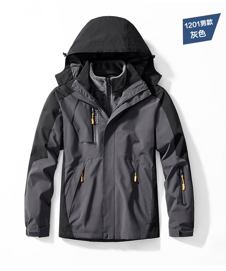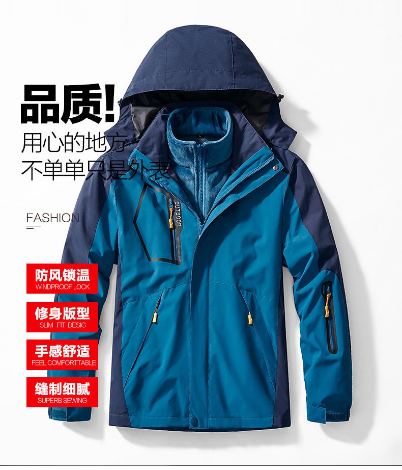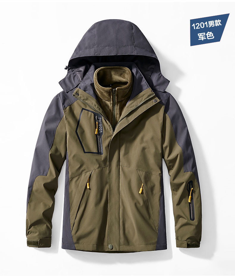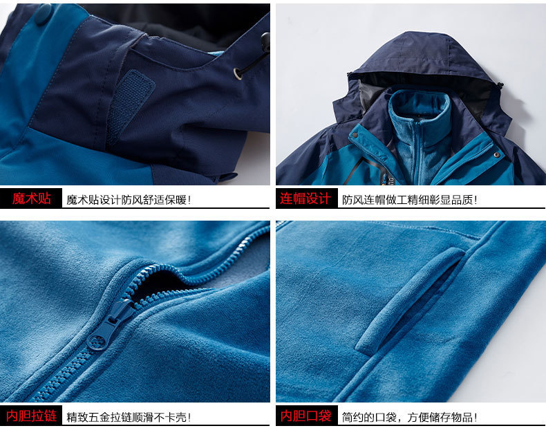 2024 년 야외 재킷 남성의 새로운 3 대 1 분리 가능한 여성 기모 가을과 겨울 등산 작업복을 두껍게 만들었습니다.
