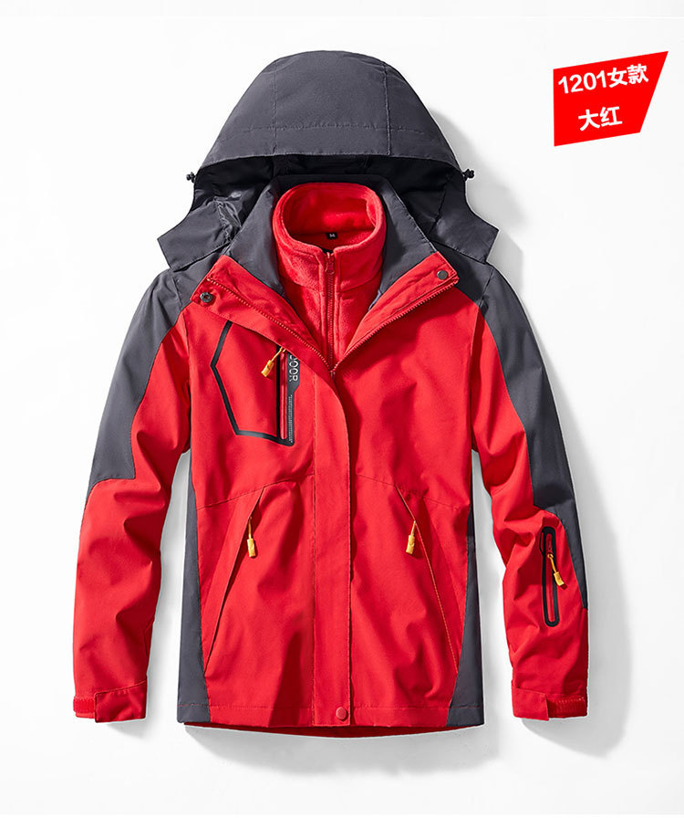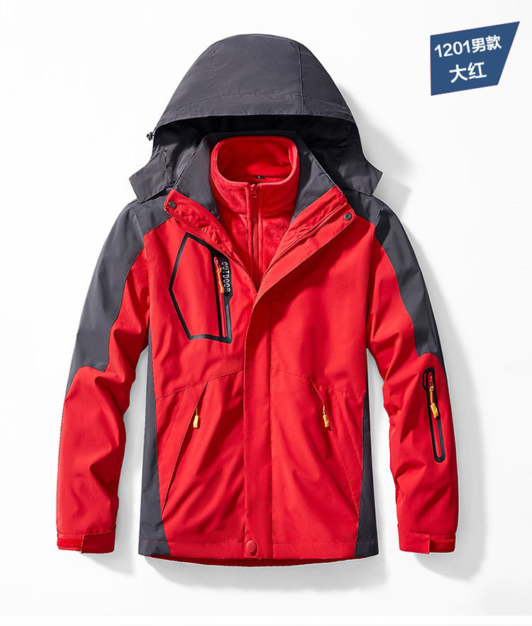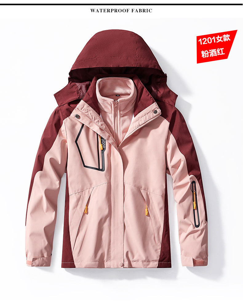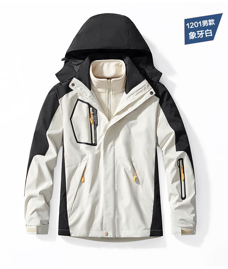 2024 년 야외 재킷 남성의 새로운 3 대 1 분리 가능한 여성 기모 가을과 겨울 등산 작업복을 두껍게 만들었습니다.