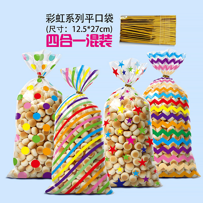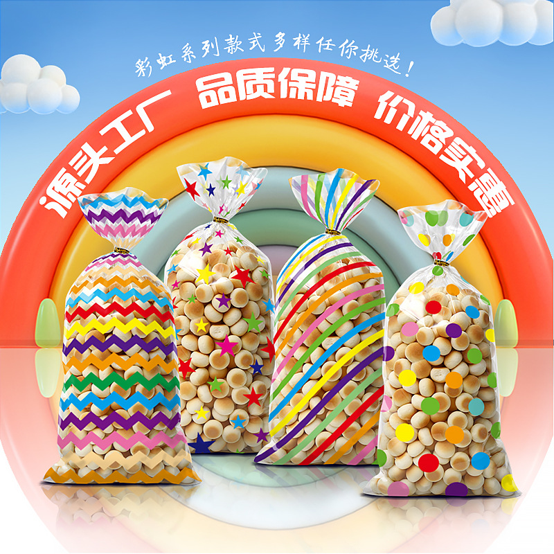레인보우 웨이브 도트 OPP 플랫 입 사탕 가방 할로윈 설탕 가방 번들 패션 팝콘 번들 포장 가방