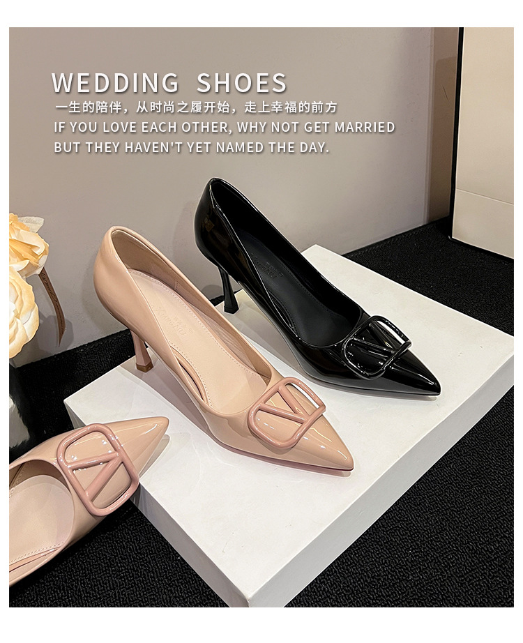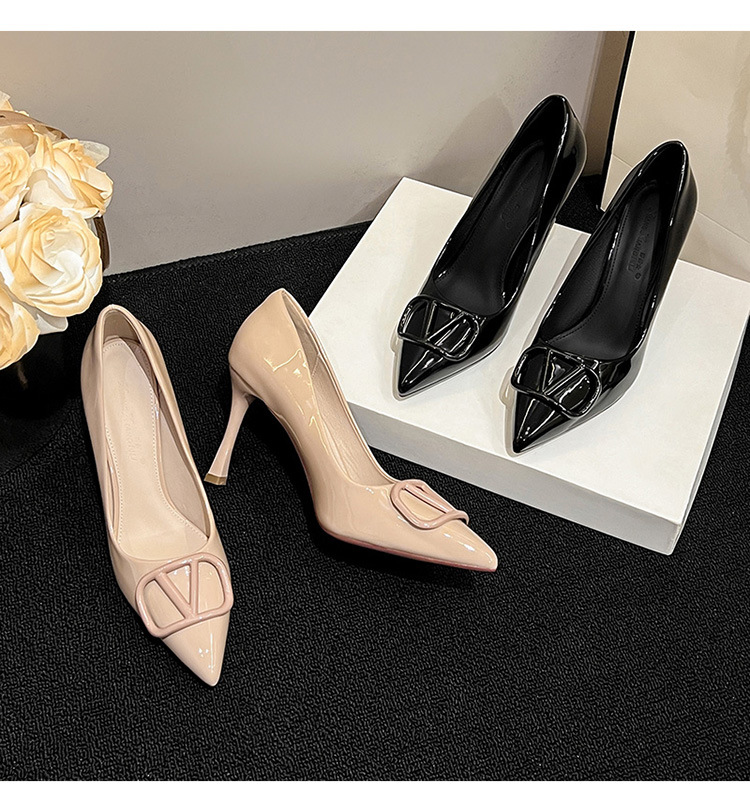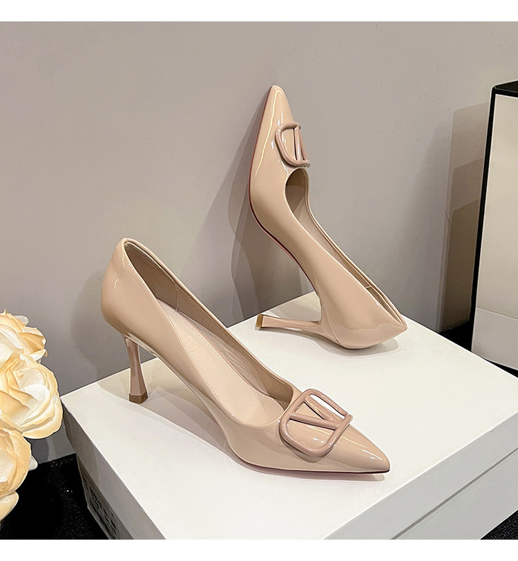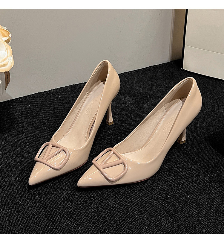 누드색 하이힐 여성용 2025 신상 V자형 버클 뾰족코 얇은 굽 편한 직장용 구두 다양한 사이즈
